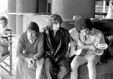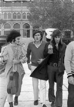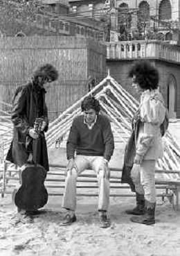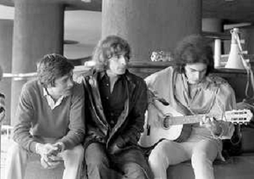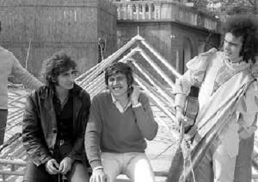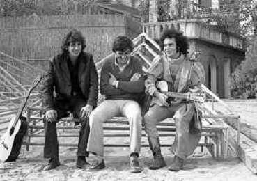 GIANNI MORANDI, cantante e attore italiano - RETROSPETTIVA nella foto sul set durante le riprese del film Tv 'Scappo per Cantare' nel 1970 con Mauro Lusini e il gruppo musicale Le Voci Blu ©ARCHIVIO / AGENZIA ALDO LIVERANI SAS