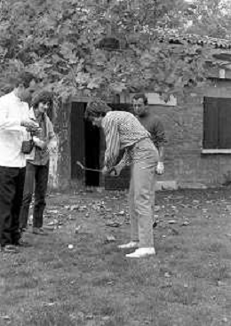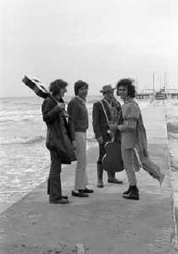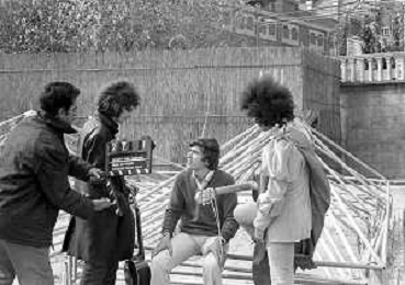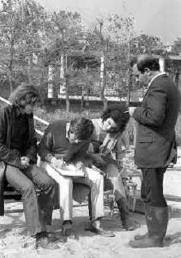 GIANNI MORANDI, cantante e attore italiano - RETROSPETTIVA nella foto sul set durante le riprese del film Tv 'Scappo per Cantare' nel 1970 con il gruppo musicale Le Voci Blu ©ARCHIVIO / AGENZIA ALDO LIVERANI SAS