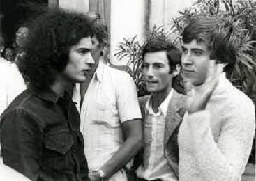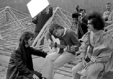 GIANNI MORANDI, cantante e attore italiano - RETROSPETTIVA nella foto sul set durante le riprese del film Tv 'Scappo per Cantare' nel 1970 con Mauro Lusini e Laura Efrikian ©ARCHIVIO / AGENZIA ALDO LIVERANI SAS
