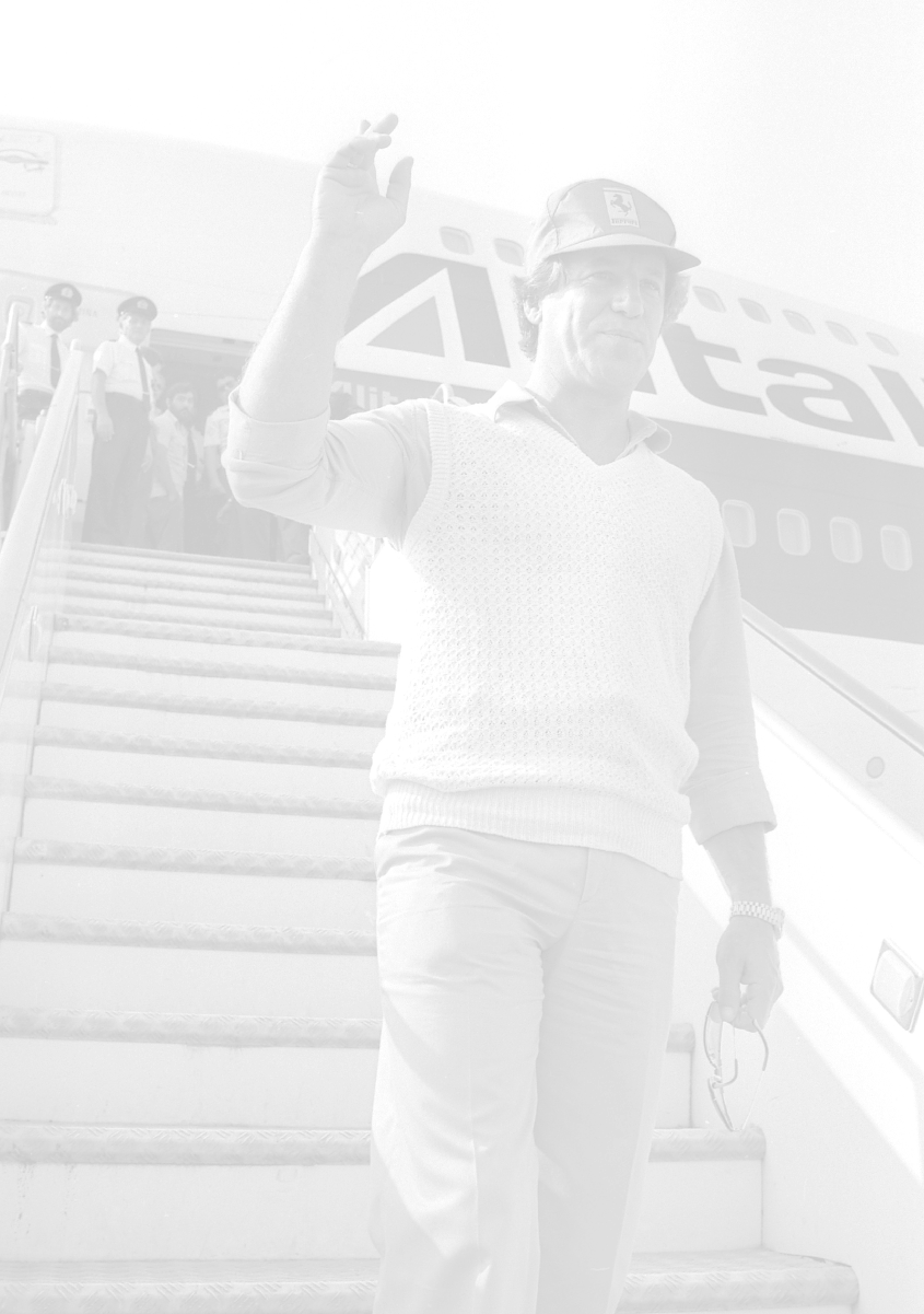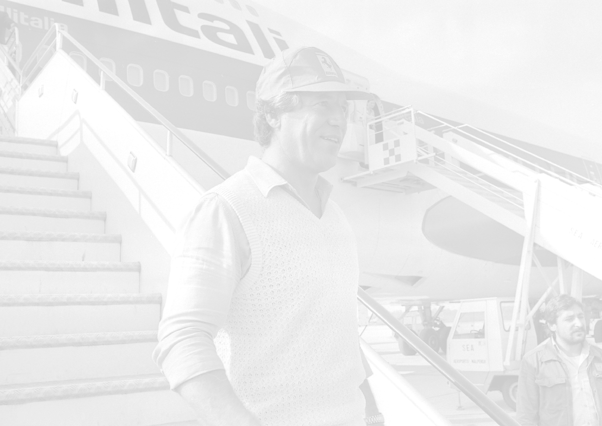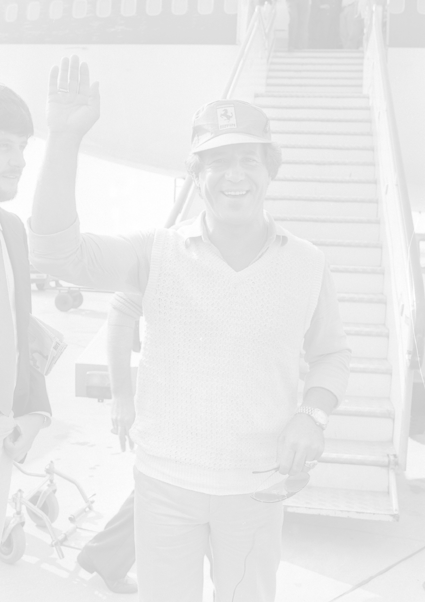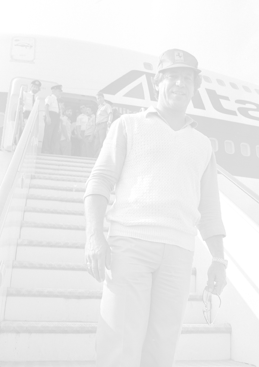 RETROSPETTIVA MARIO ANDRETTI PILOTA F1 NELLA FOTO MARIO ANDRETTI ARRIVA AL'AEROPORTO DELLA MALPENSA NELL'ANNO 1982 AG ALDO LIVERANI SAS