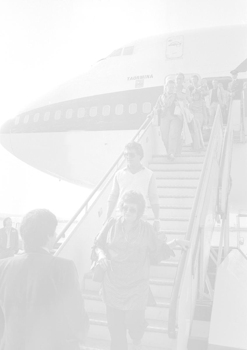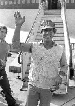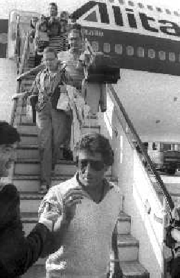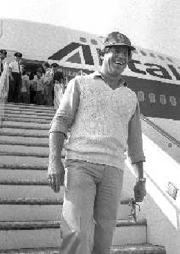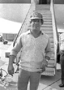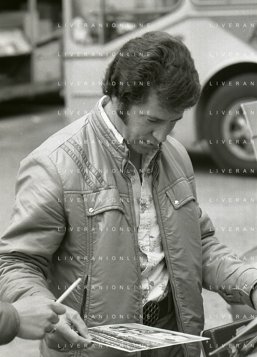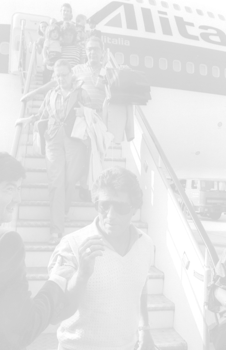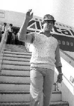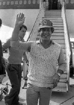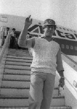 RETROSPETTIVA MARIO ANDRETTI PILOTA F1 NELLA FOTO MARIO ANDRETTI ARRIVA AL'AEROPORTO DELLA MALPENSA NELL'ANNO 1982 AG ALDO LIVERANI SAS