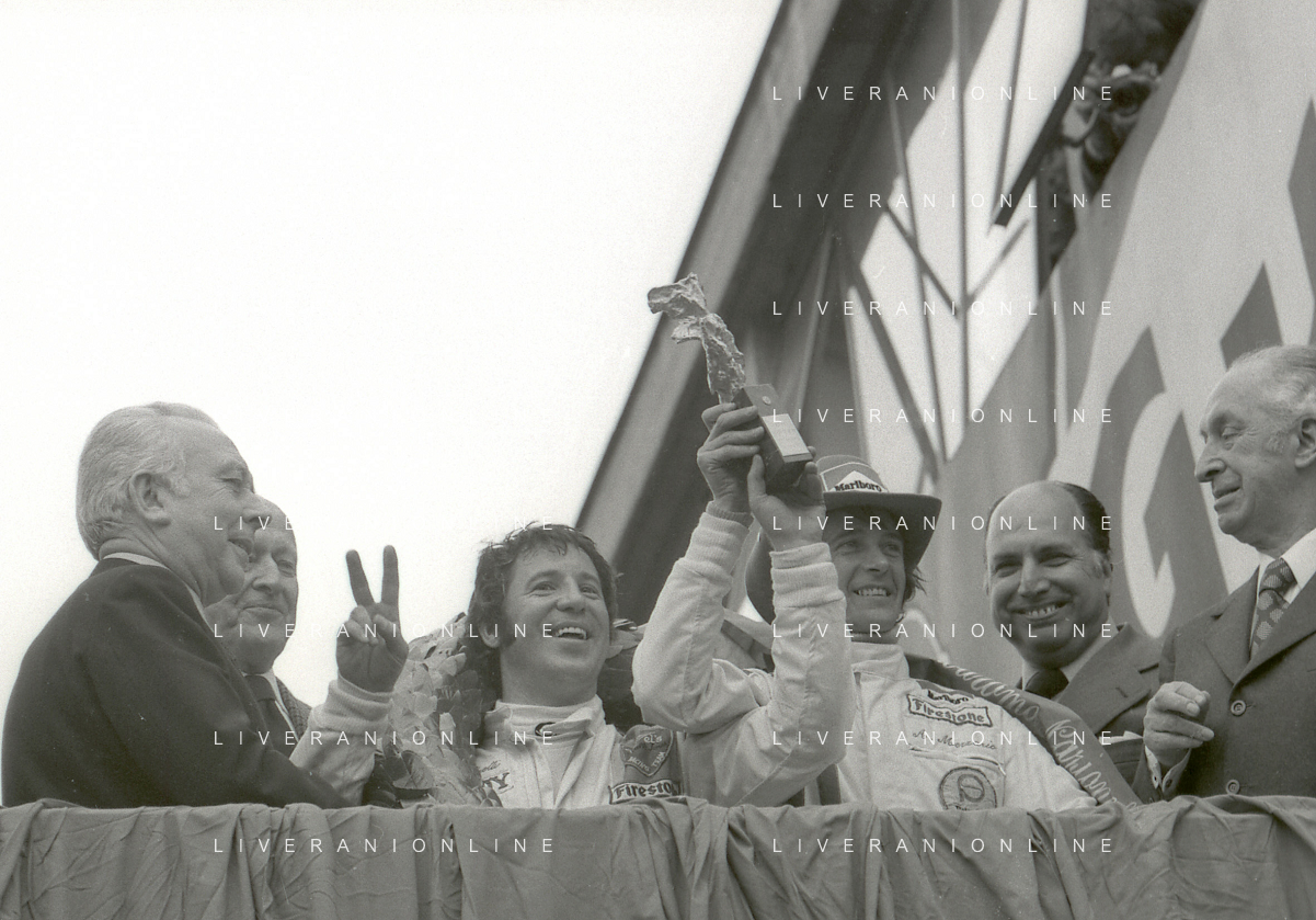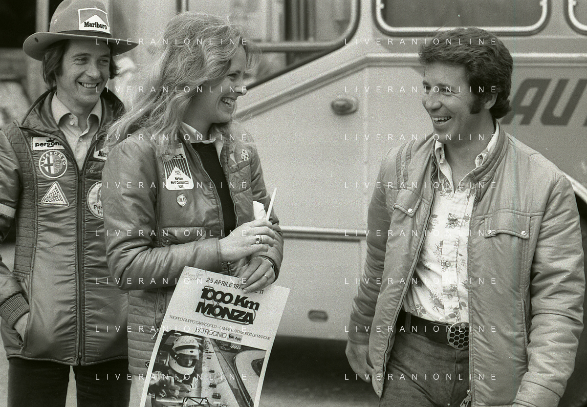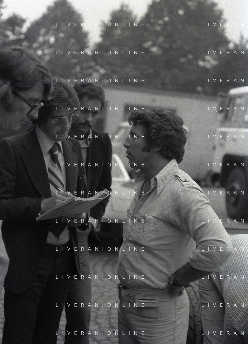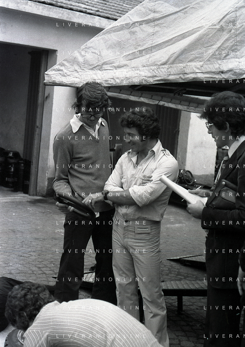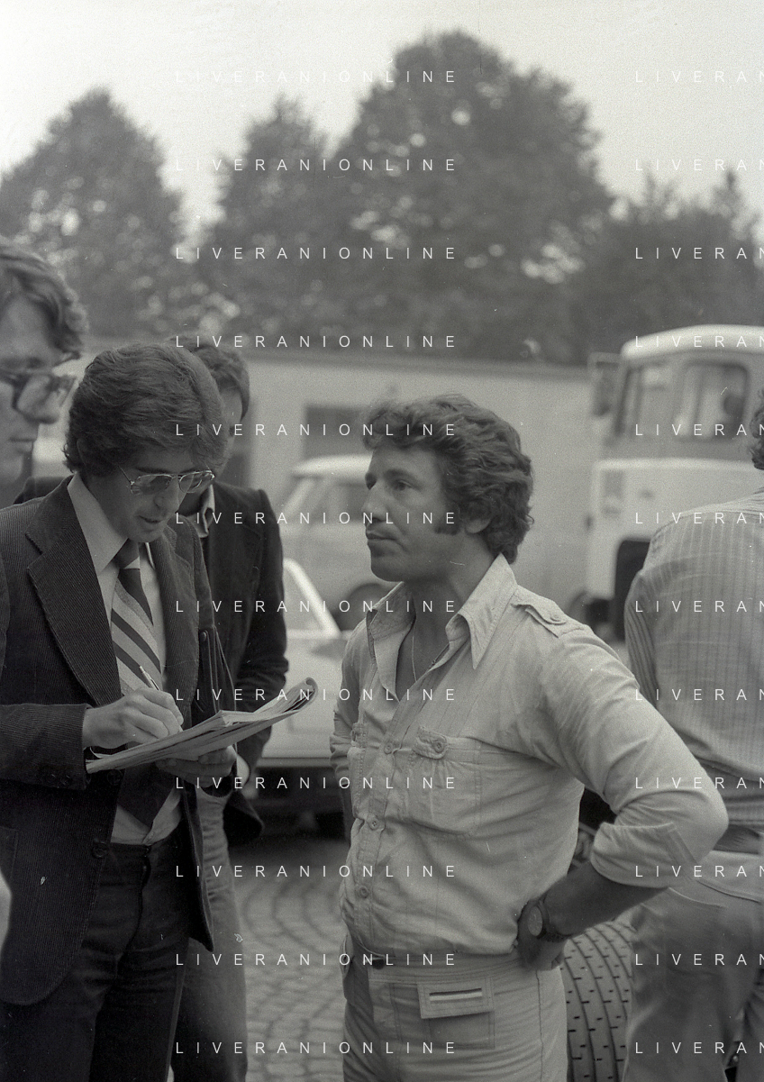 RETROSPETTIVA MARIO ANDRETTI PILOTA F1 NELLA FOTO MARIO ANDRETTI CON ARTURO MERZARIO A MONZA NELL'ANNO 1974 AG ALDO LIVERANI SAS