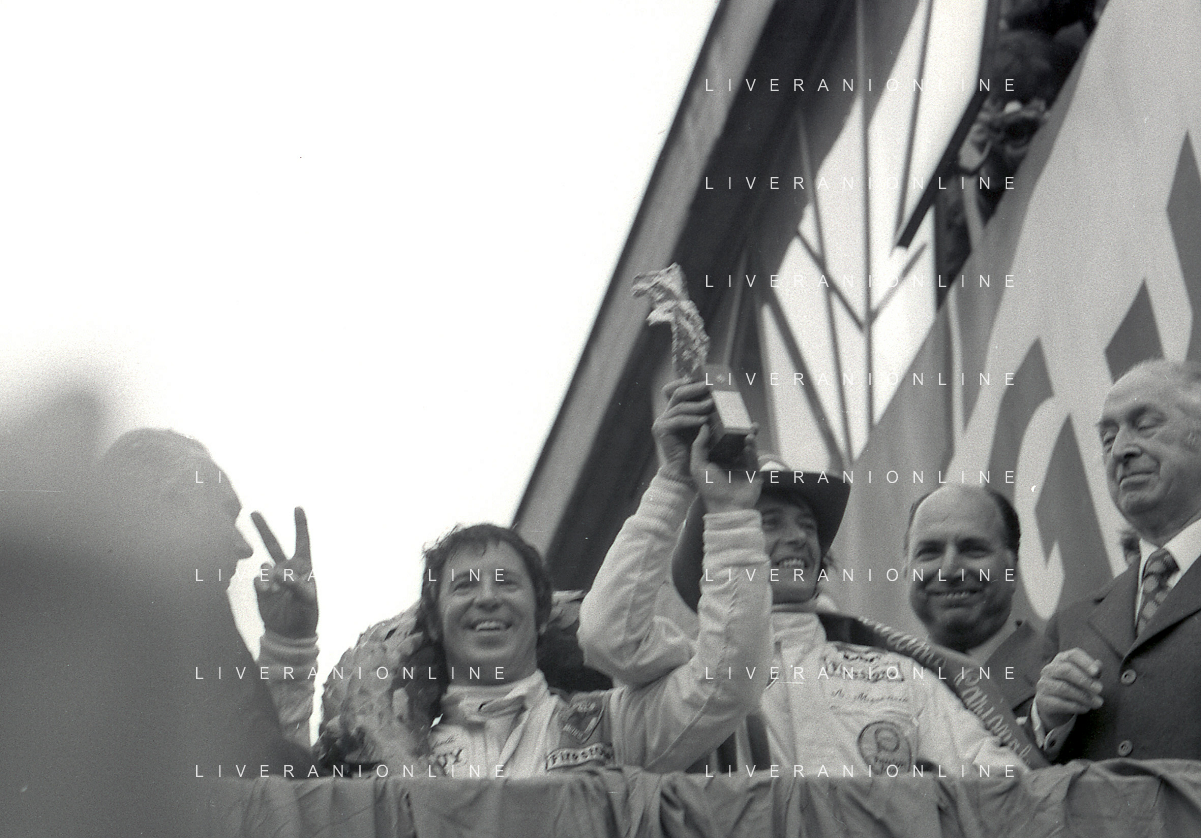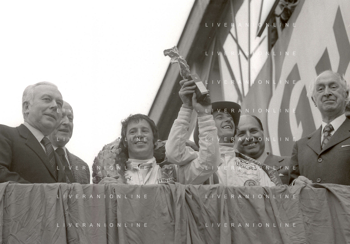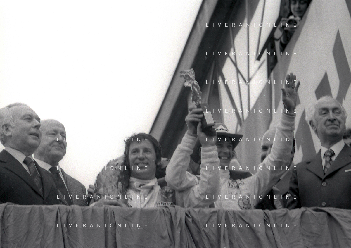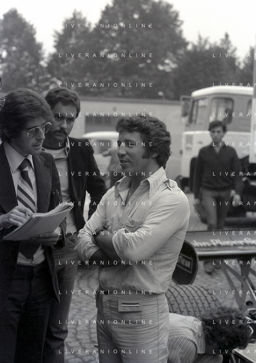 RETROSPETTIVA MARIO ANDRETTI PILOTA F1 NELLA FOTO MARIO ANDRETTI CON ARTURO MERZARIO A MONZA NELL'ANNO 1974 AG ALDO LIVERANI SAS