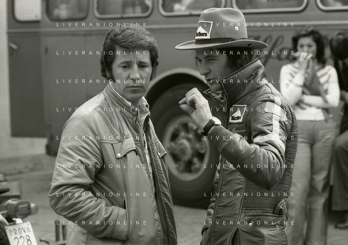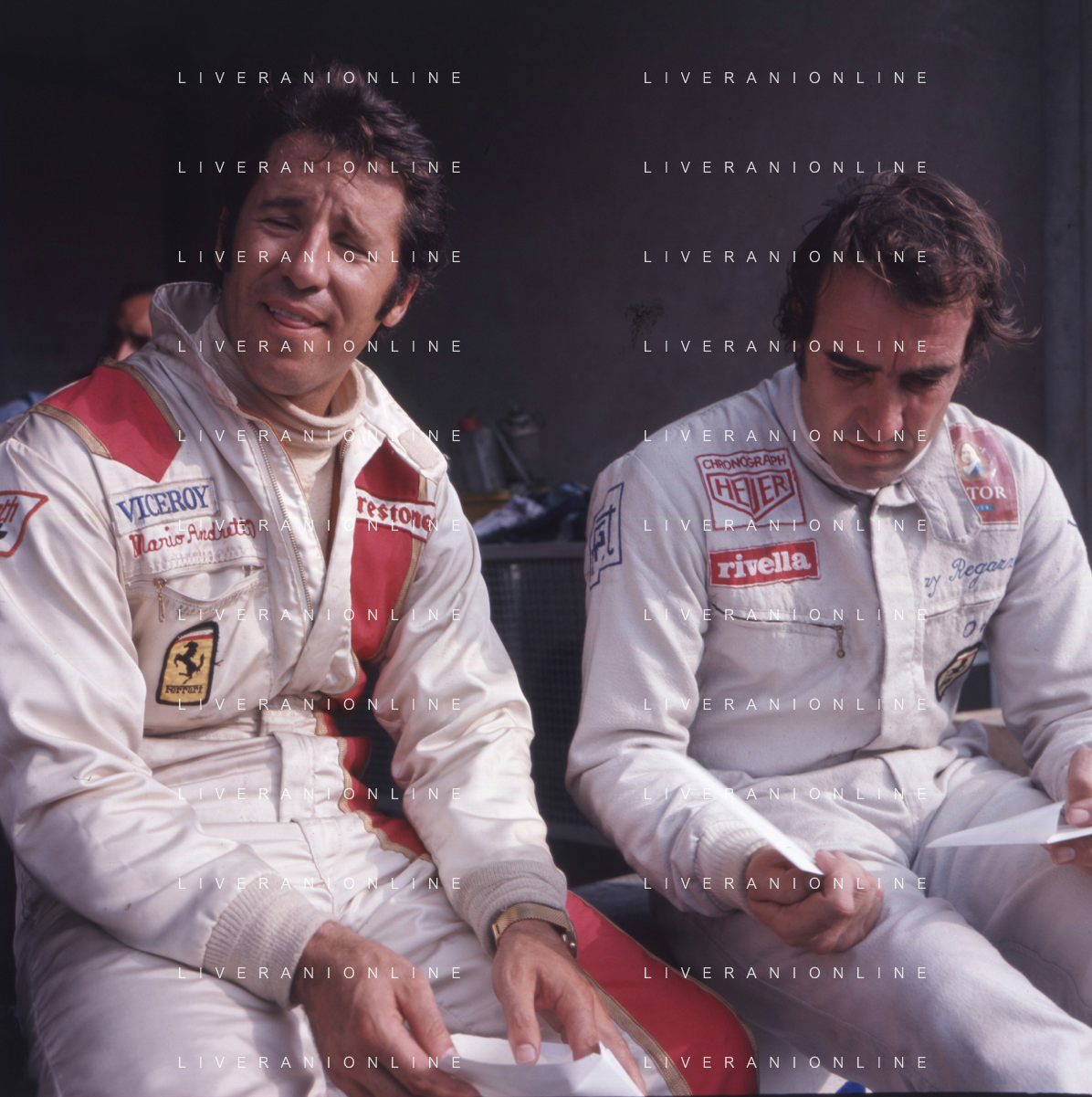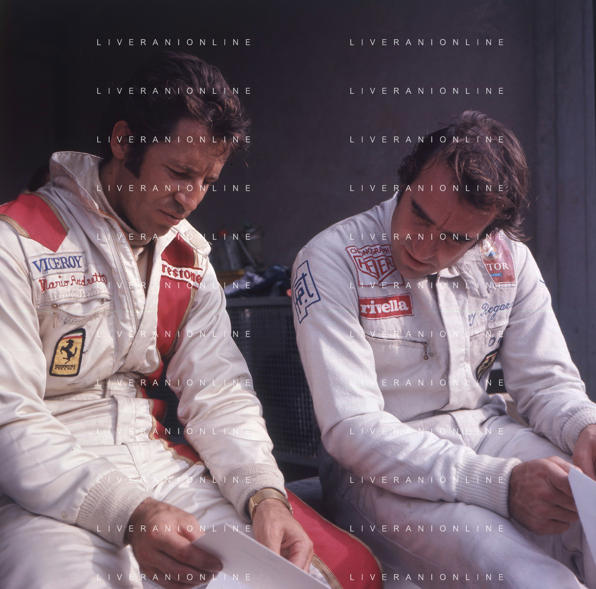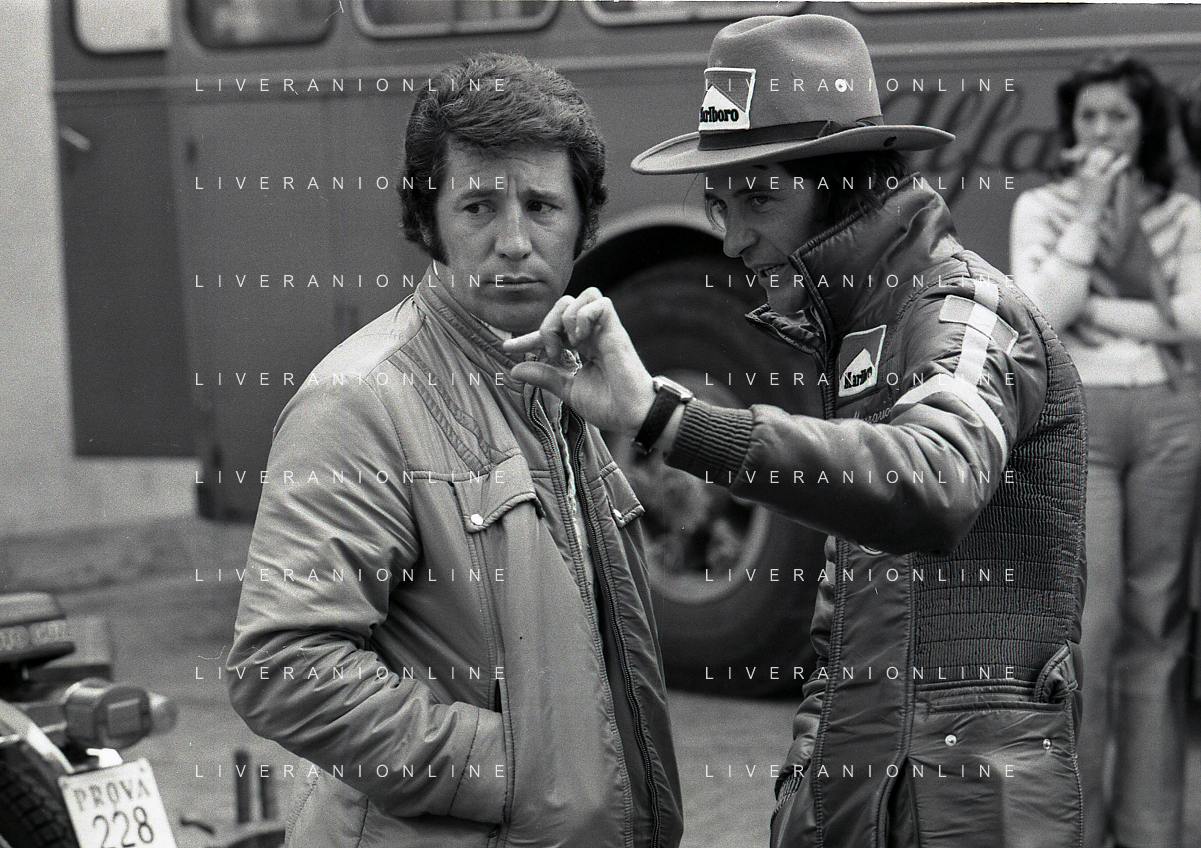 DIAP-RETROSPETTIVA MARIO ANDRETTI PILOTA F1 NELLA FOTO MARIO ANDRETTI CON CLAY REGAZONI AG ALDO LIVERANI SAS