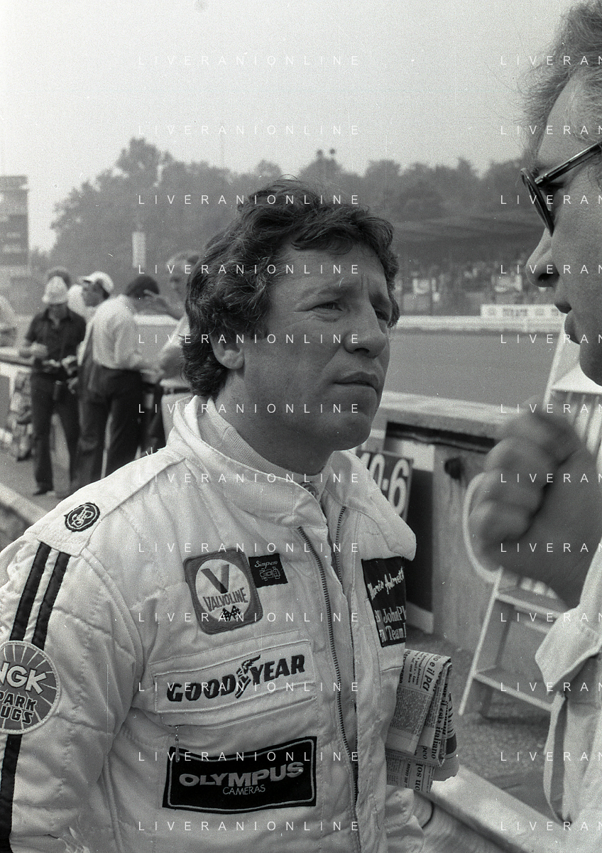 RETROSPETTIVA MARIO ANDRETTI PILOTA F1 NELLA FOTO MARIO ANDRETTI A MONZA NELL'ANNO 1974 AG ALDO LIVERANI SAS