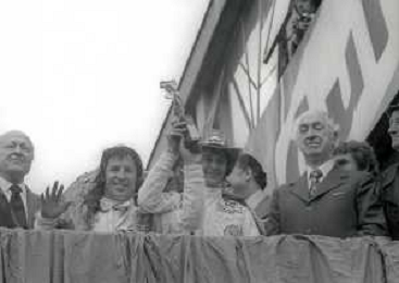 RETROSPETTIVA MARIO ANDRETTI PILOTA F1 NELLA FOTO MARIO ANDRETTI CON ARTURO MERZARIO A MONZA NELL'ANNO 1974 AG ALDO LIVERANI SAS
