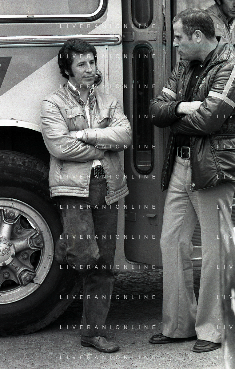 RETROSPETTIVA MARIO ANDRETTI PILOTA F1 NELLA FOTO MARIO ANDRETTI CON L'INGEGNERE CARLO CHITI A MONZA NELL'ANNO 1974 AG ALDO LIVERANI SAS
