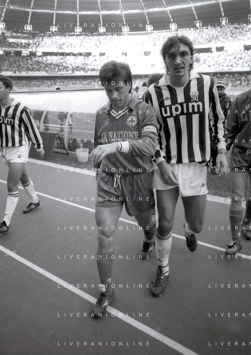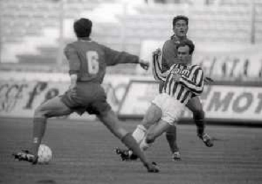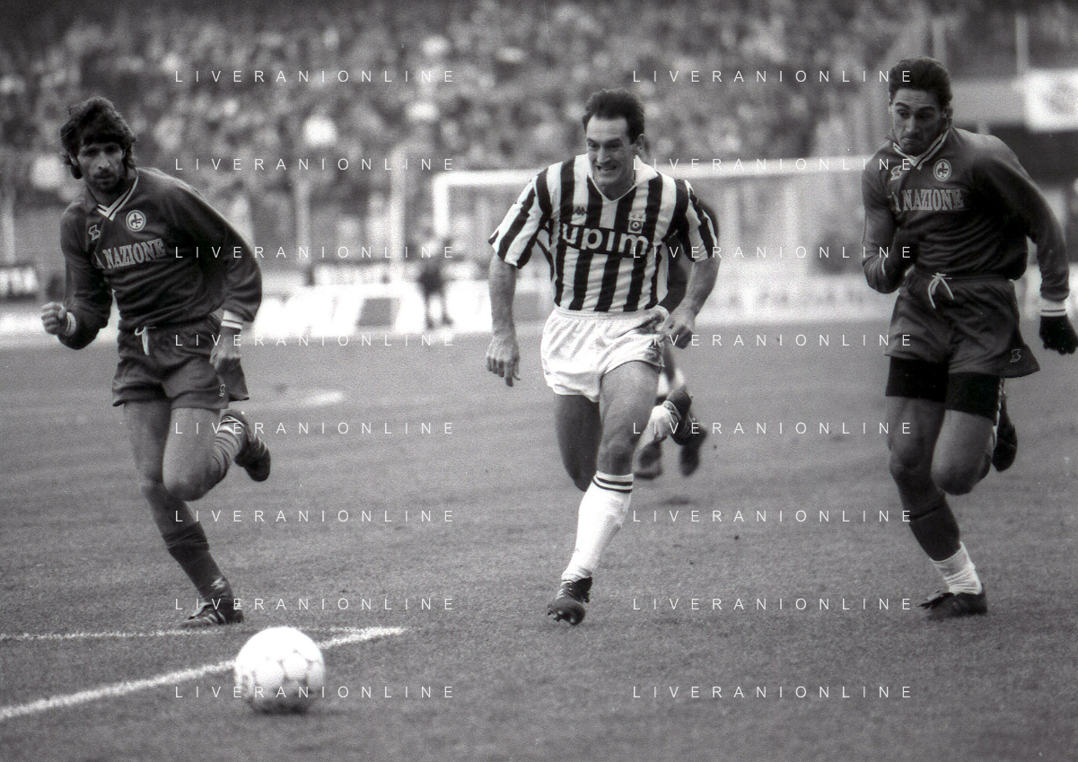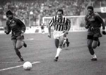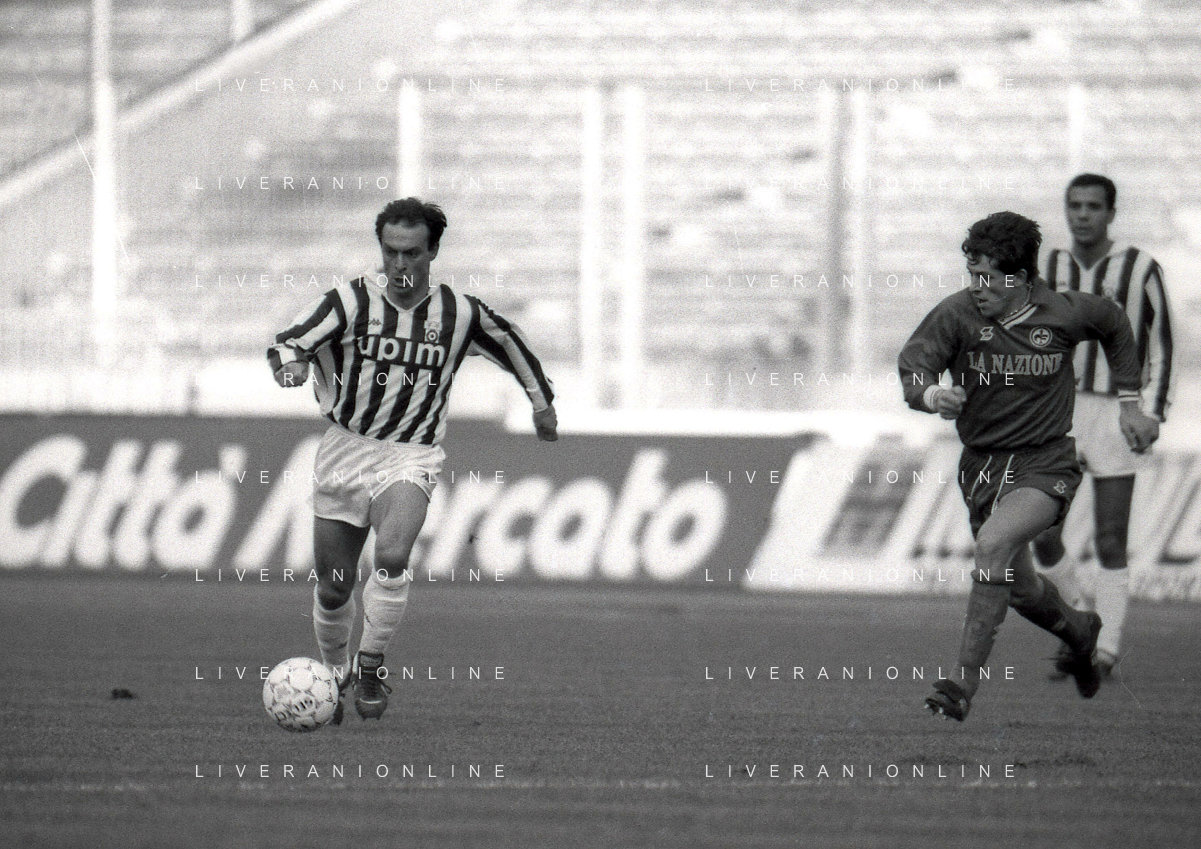 02-12-1990 TORINO-CAMPIONATO DI CALCIO SERIE A JUVENTUS FIORENTINA 2-1 NELLA FOTO SEBASTIAO LAZARONI CON AMARILDO E GIANCARLO ANTOGNONI AG ALDO LIVERANI SAS