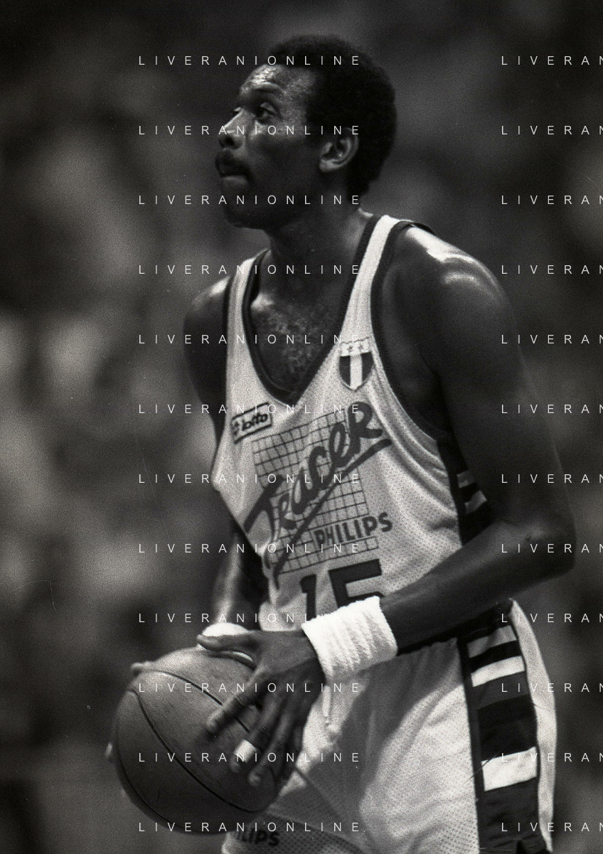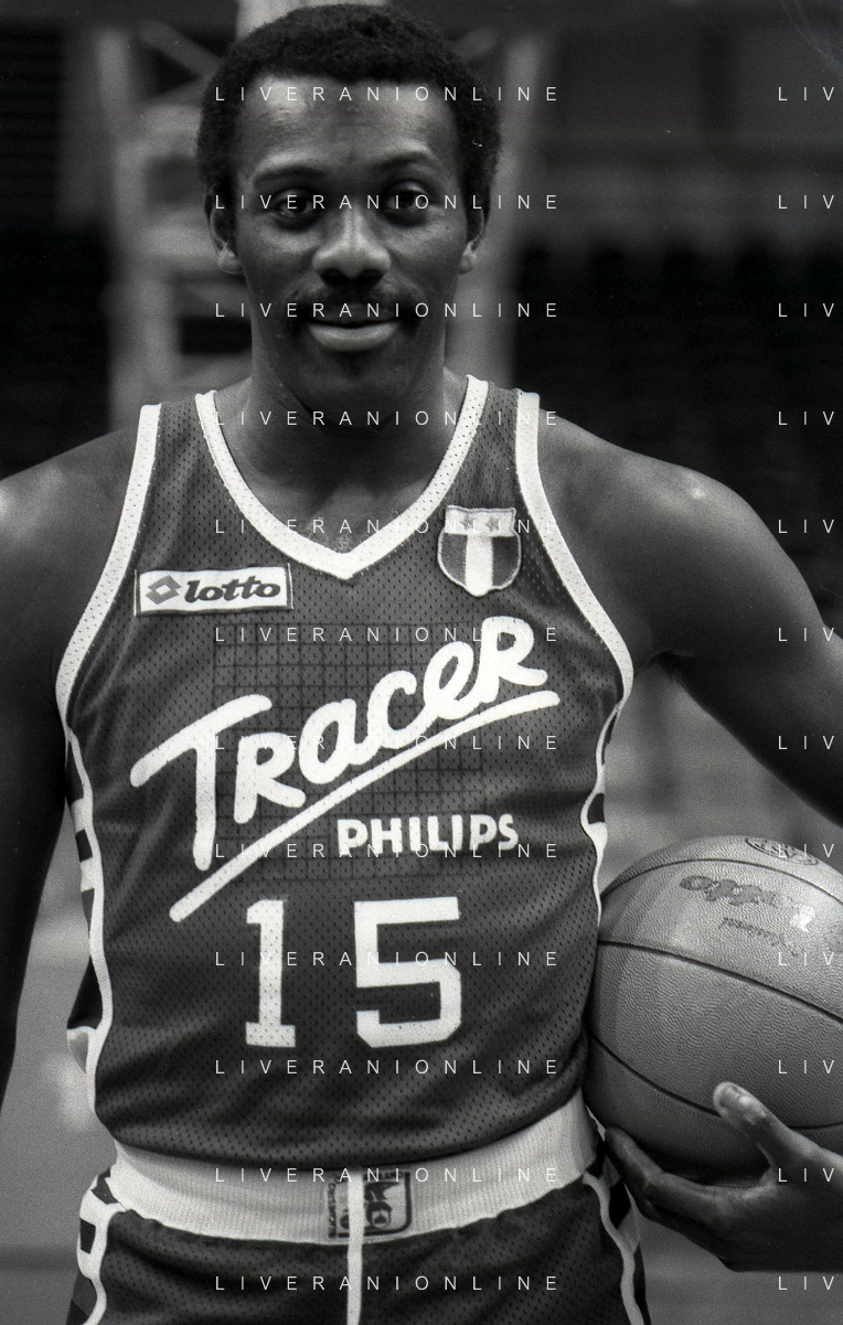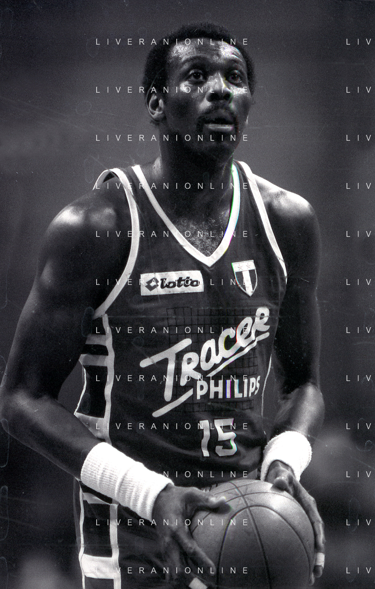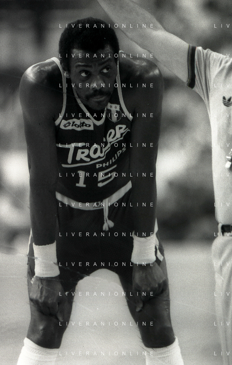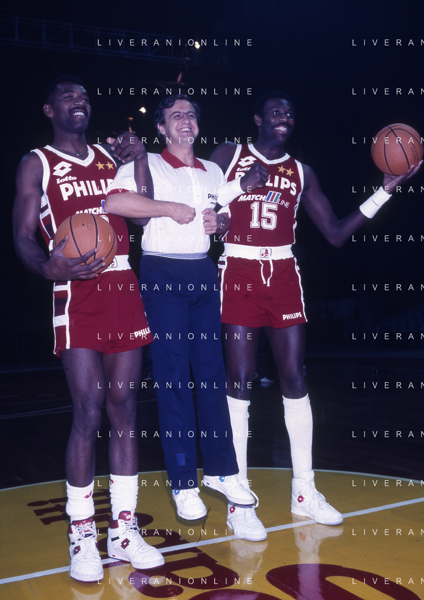 RETROSPETTIVA BOB MC ADOO GIOCATORE BASKET NELLA FOTO BOB MC ADOO CON LA MAGLIA DELLA PHILIPS MILANO CON MARTIN BILL E L'ALLENATORE CASALINI FRANCO AG ALDO LIVERANI SAS