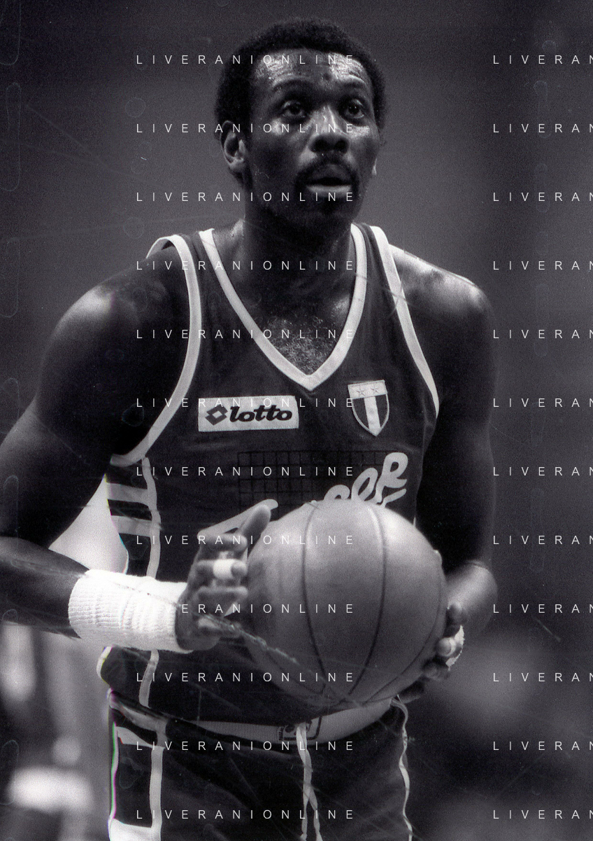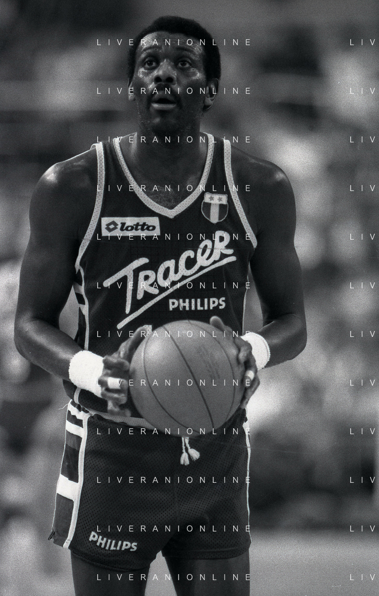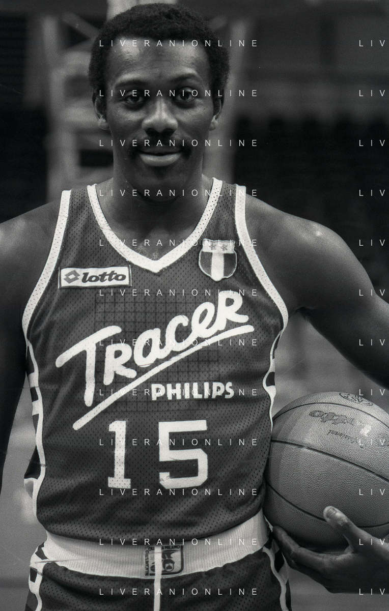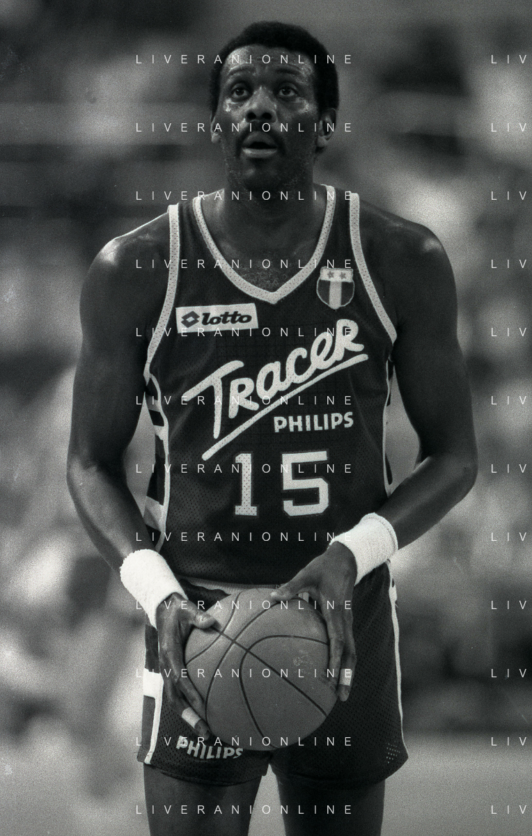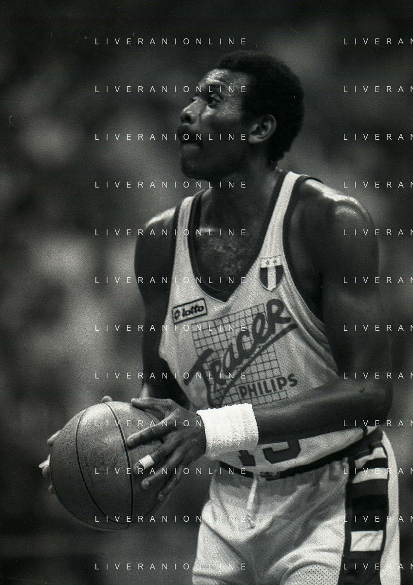 RETROSPETTIVA BOB MC ADOO GIOCATORE BASKET NELLA FOTO BOB MC ADOO CON LA MAGLIA DELLA PHILIPS MILANO CON MARTIN BILL E L'ALLENATORE CASALINI FRANCO AG ALDO LIVERANI SAS