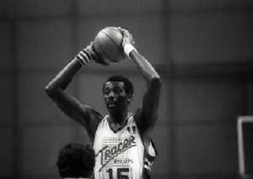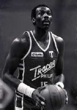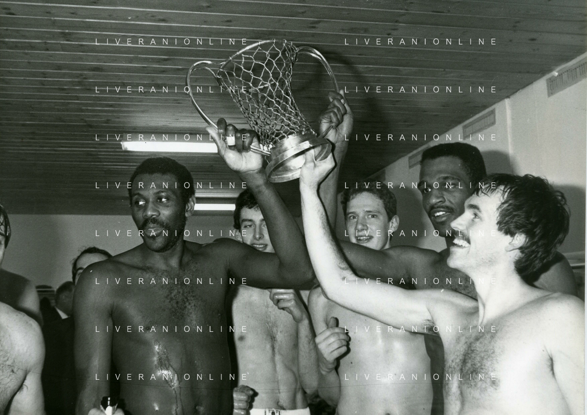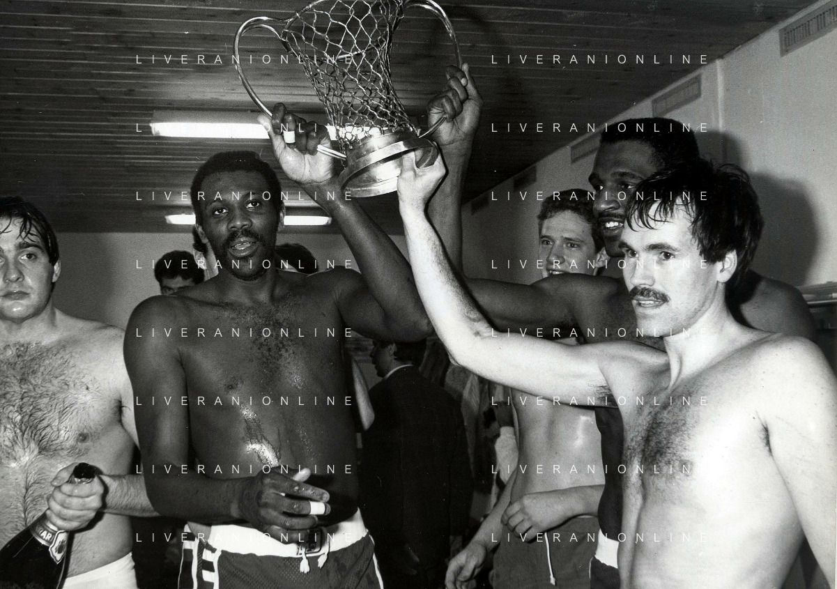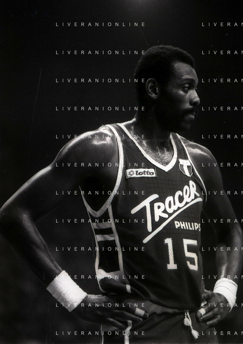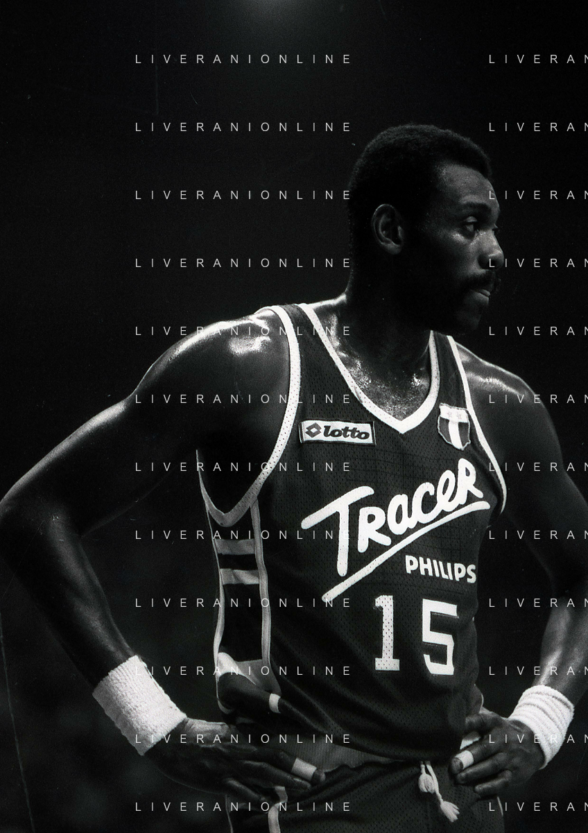 RETROSPETTIVA BOB MC ADOO GIOCATORE BASKET NELLA FOTO BOB MC ADOO CON LA MAGLIA DELLA PHILIPS MILANO CON MARTIN BILL E L'ALLENATORE CASALINI FRANCO AG ALDO LIVERANI SAS
