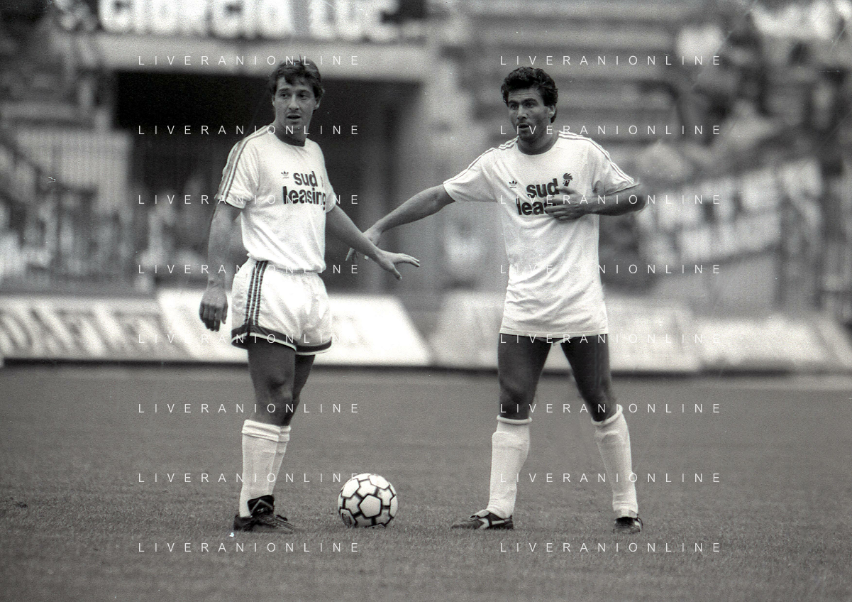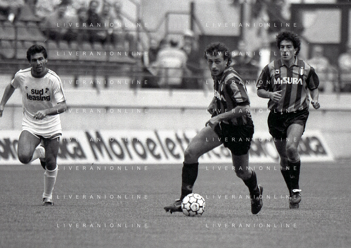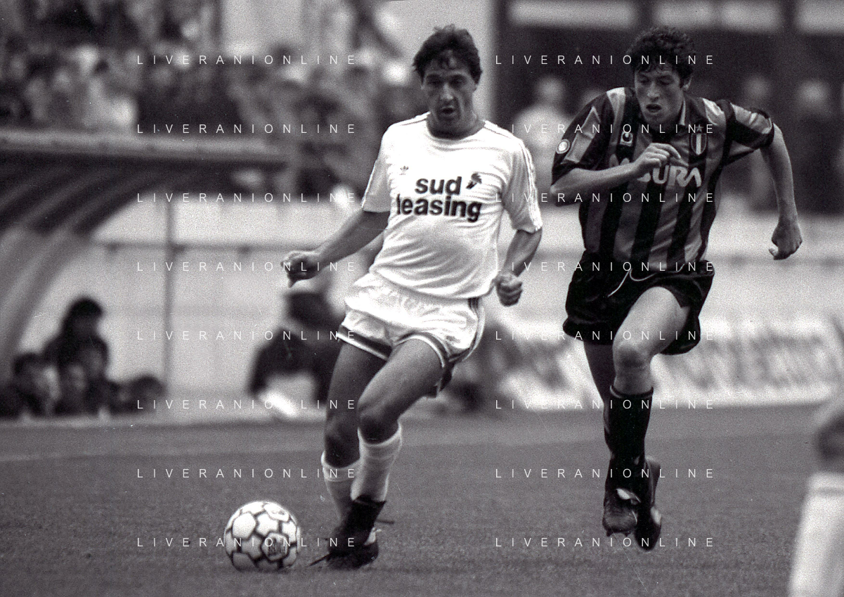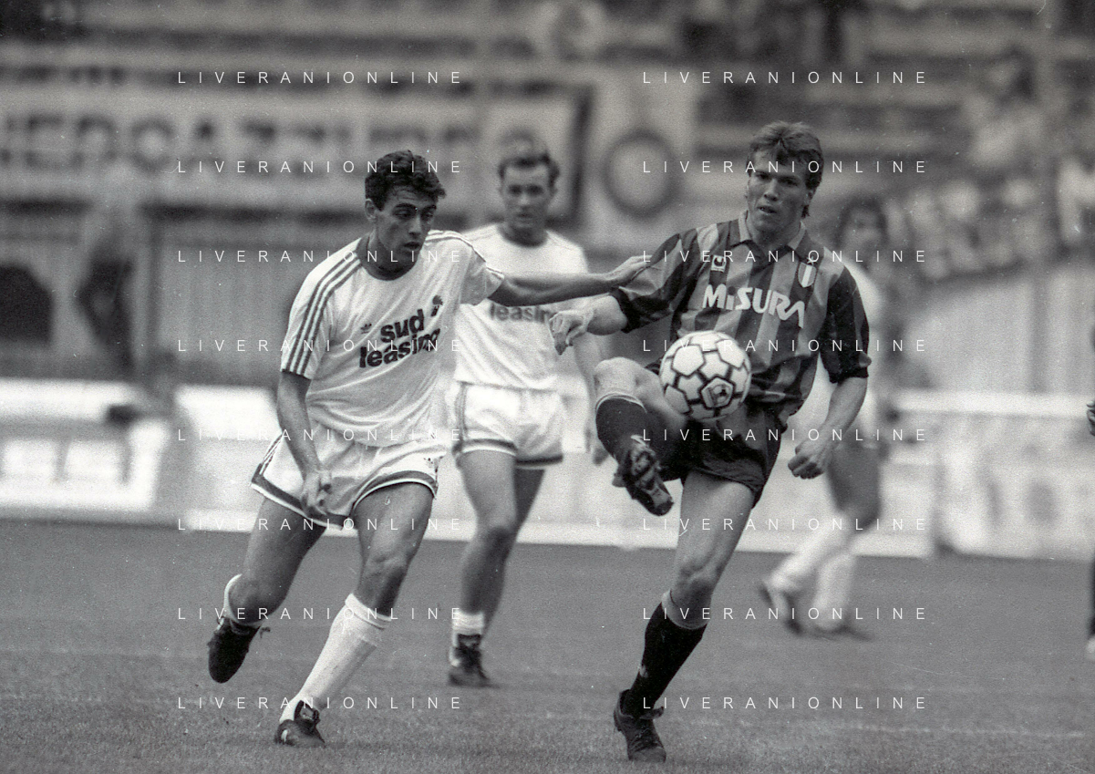 08-10-1989 MILANO CAMPIONATO DI CALCIO SERIE A INTER BARI 1-1 NELLA FOTO ANDREA MANDORLINI -PIETRO MAIELLARO E GIANFRANCO MATTEOLI AG ALDO LIVERANI SAS