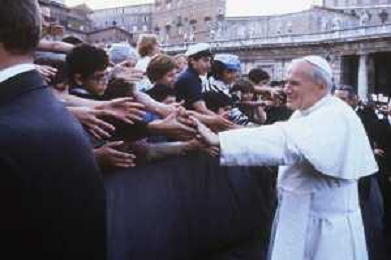 KAROL WOJTYLA, Sua Santita' Papa Giovanni Paolo II, Vescovo di Roma, Citta' del Vaticano. Fu eletto Papa il 16 ottobre 1978 - RETROSPETTIVA Nella foto con i Fedeli in Piazza San Pietro ©Archivio Giovanni Liverani/AGENZIA ALDO LIVERANI SAS