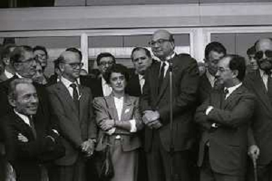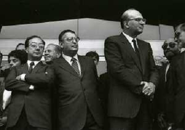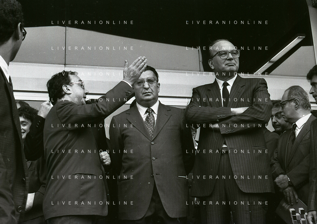 NEG- 1986 SESTO SAN GIOVANNI INAUGURAZIONE DELLA METROPOLITANA MILANESE FERMATA SESTO SAN GIOVANNI NELLA FOTO ENZO VICARI-CARLO TOGNOLI E BETTINO CRAXI AG ALDO LIVERANI SAS