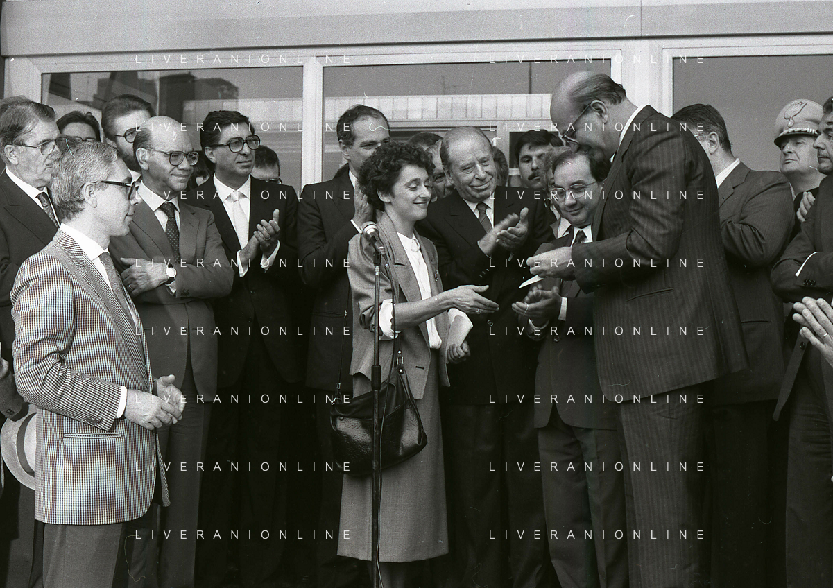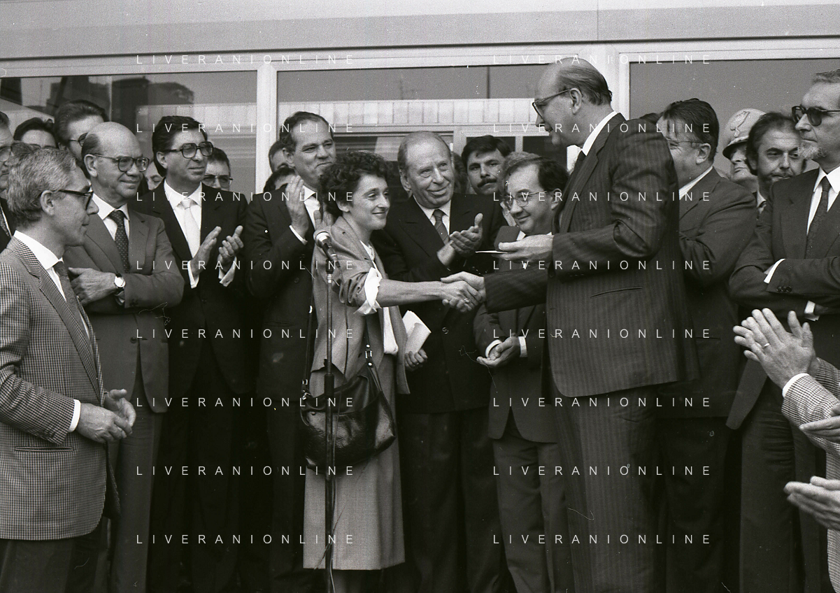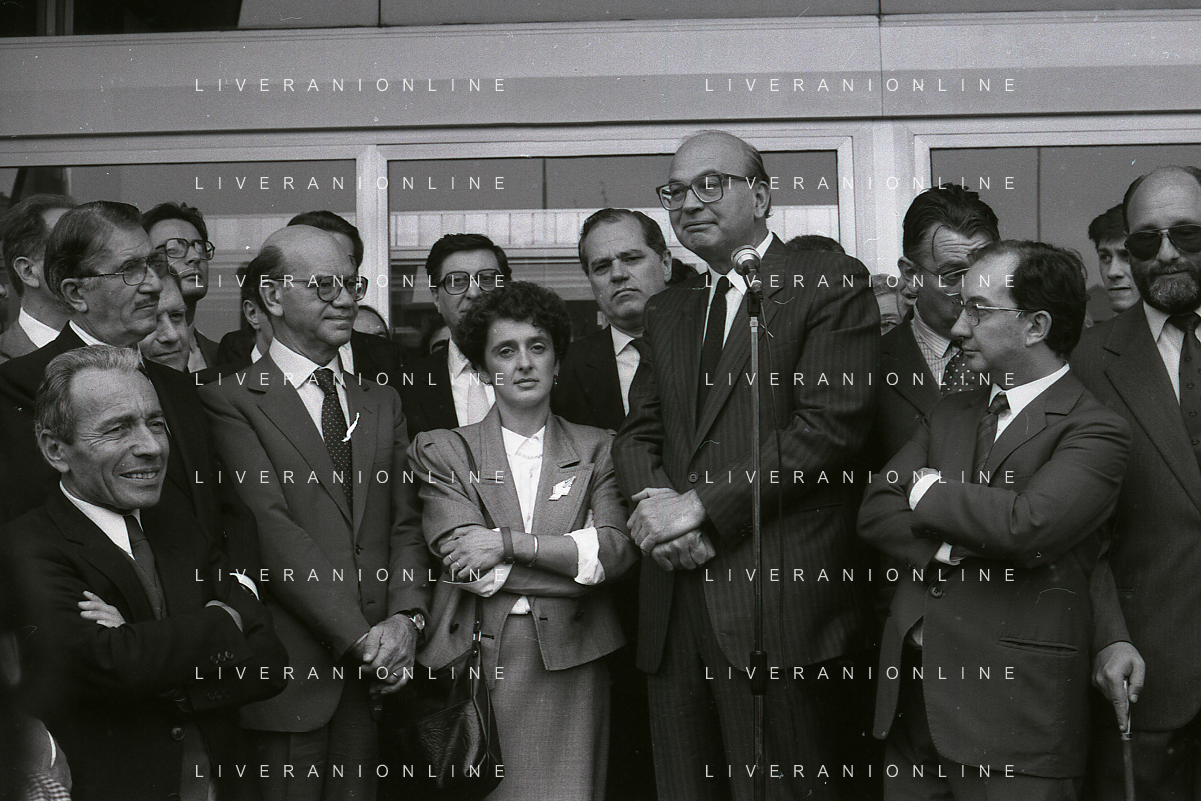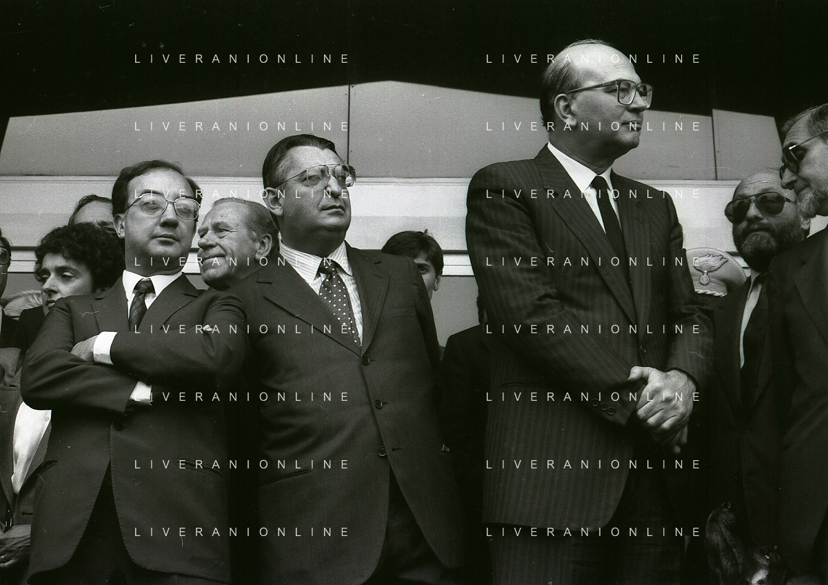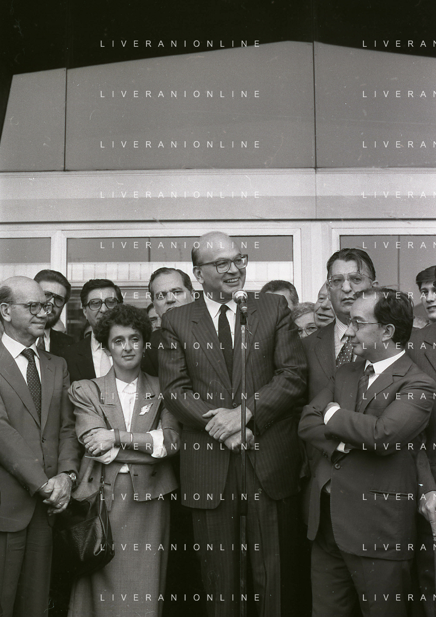 NEG- 1986 SESTO SAN GIOVANNI INAUGURAZIONE DELLA METROPOLITANA MILANESE FERMATA SESTO SAN GIOVANNI NELLA FOTO IL SINDACO DI SESTO SAN GIOVANNI FIORENZA BASSOLI CON BETTINO CRAXI CARLO TOGNOLI SINDACO DI MILANO E IL PREFETTO DI MILANO ENZO VICARI AG ALDO LIVERANI SAS
