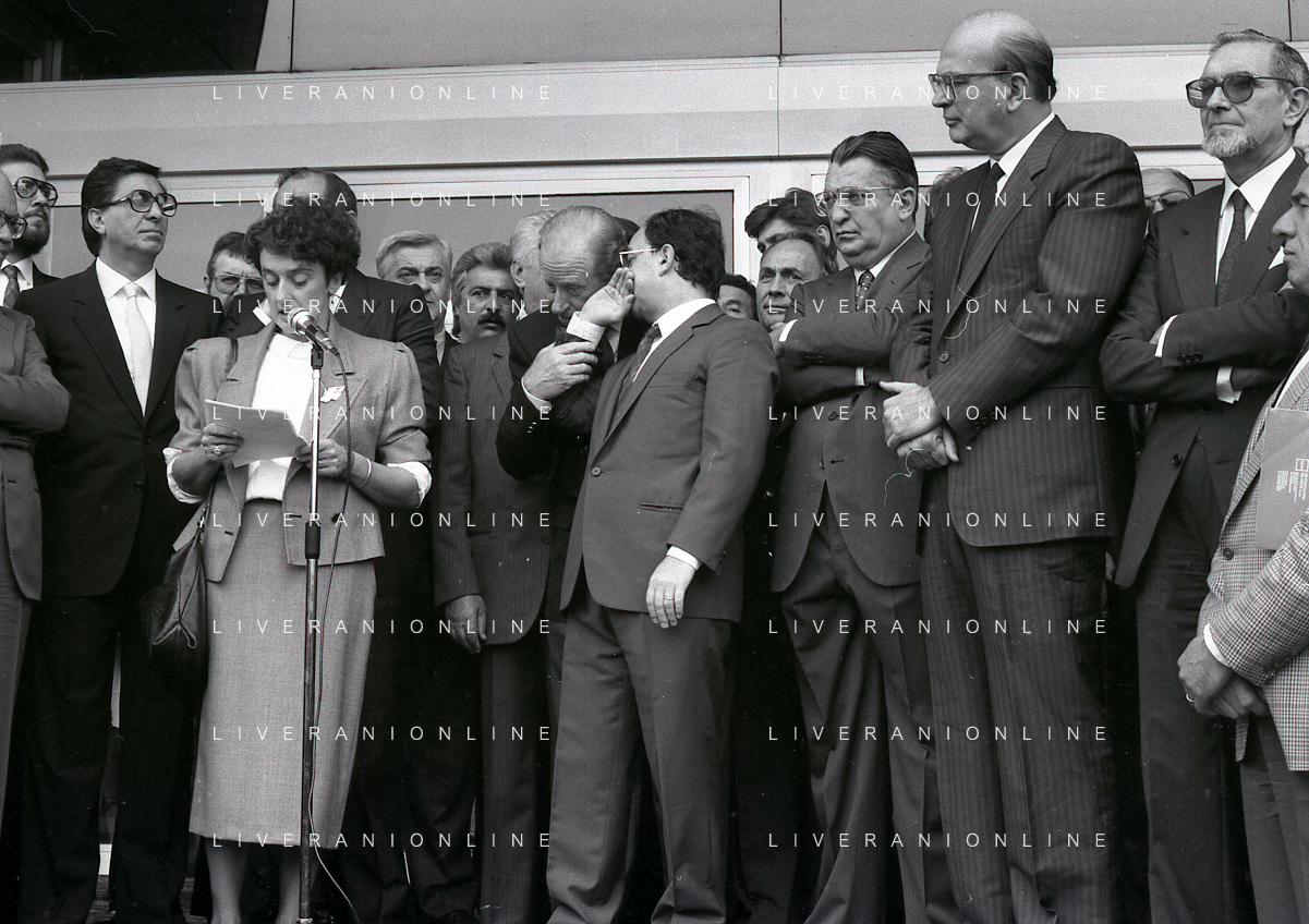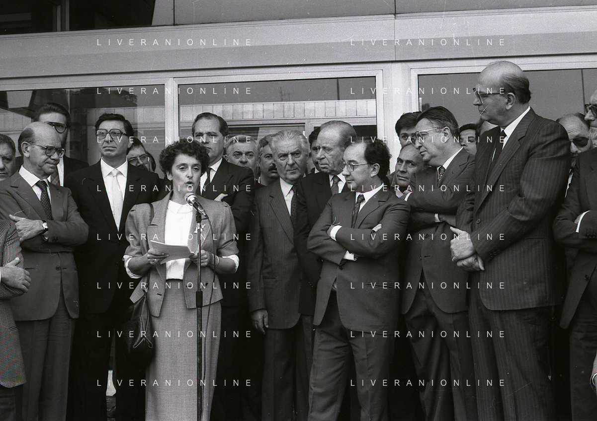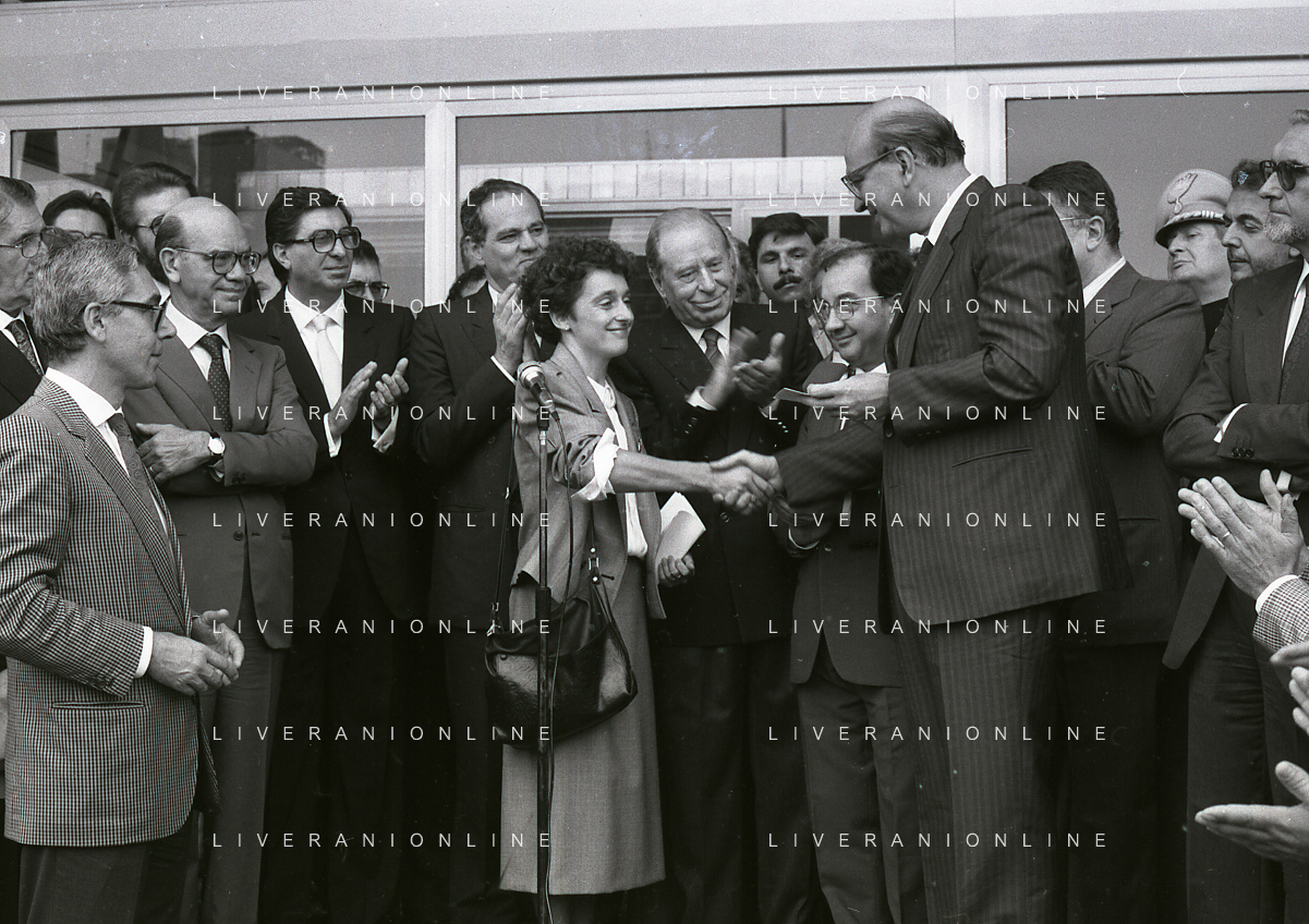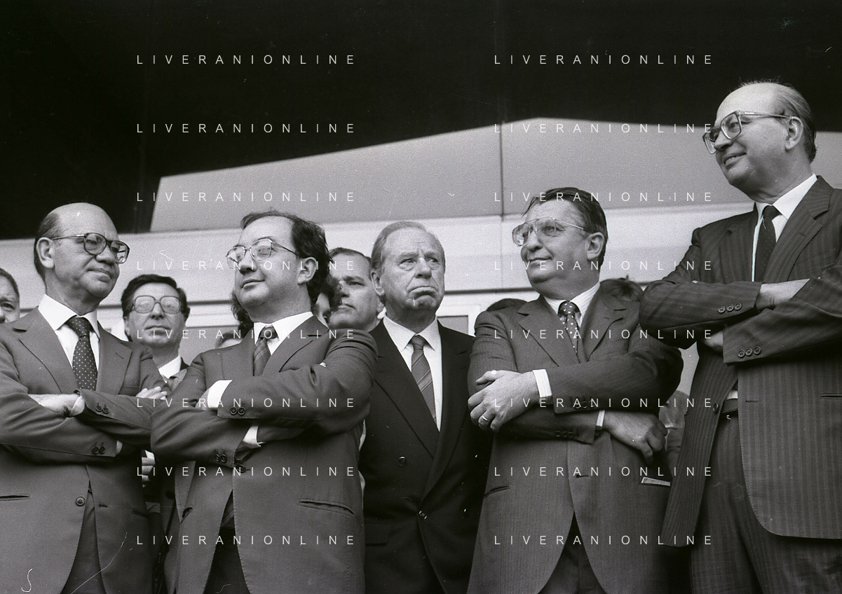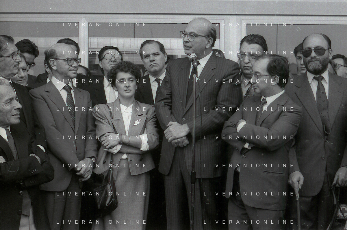 NEG- 1986 SESTO SAN GIOVANNI INAUGURAZIONE DELLA METROPOLITANA MILANESE FERMATA SESTO SAN GIOVANNI NELLA FOTO IL SINDACO DI SESTO SAN GIOVANNI FIORENZA BASSOLI CON BETTINO CRAXI CARLO TOGNOLI SINDACO DI MILANO E IL PREFETTO DI MILANO ENZO VICARI AG ALDO LIVERANI SAS