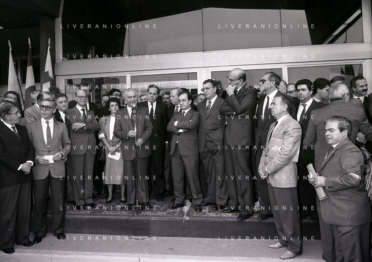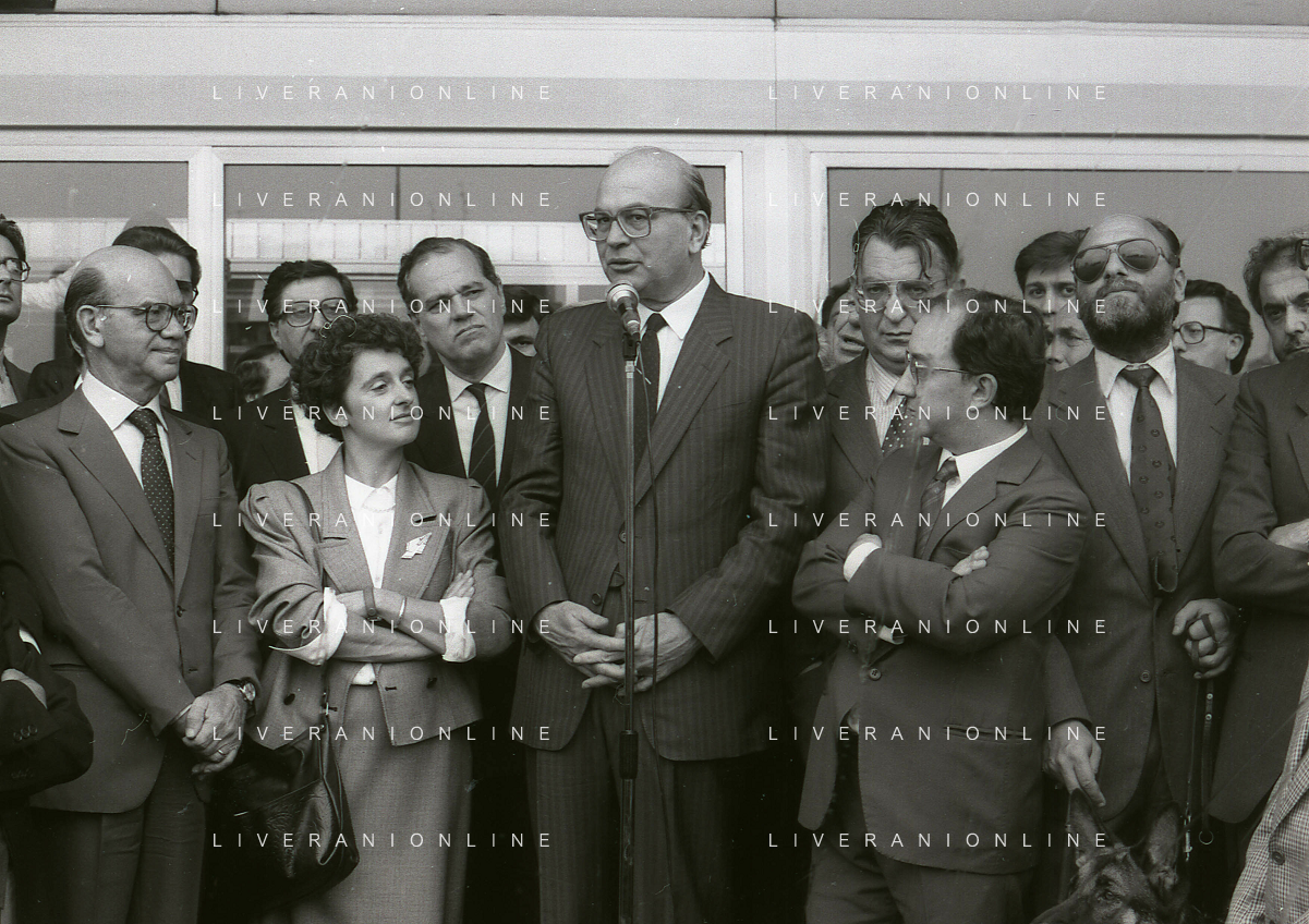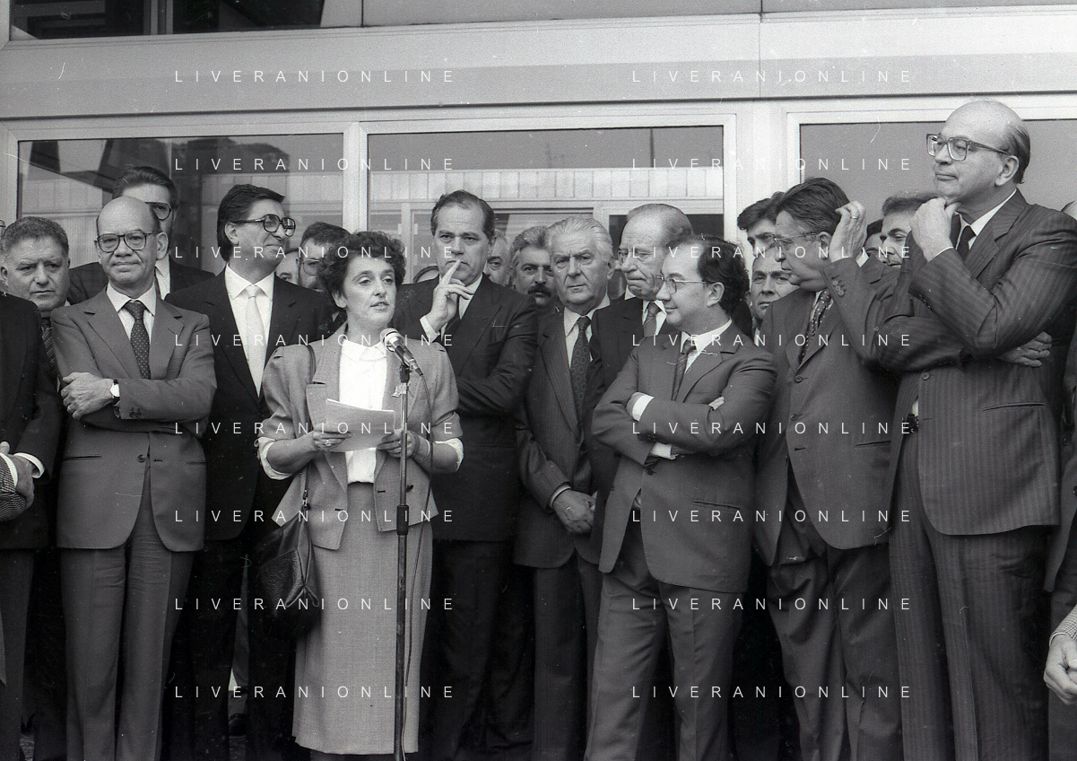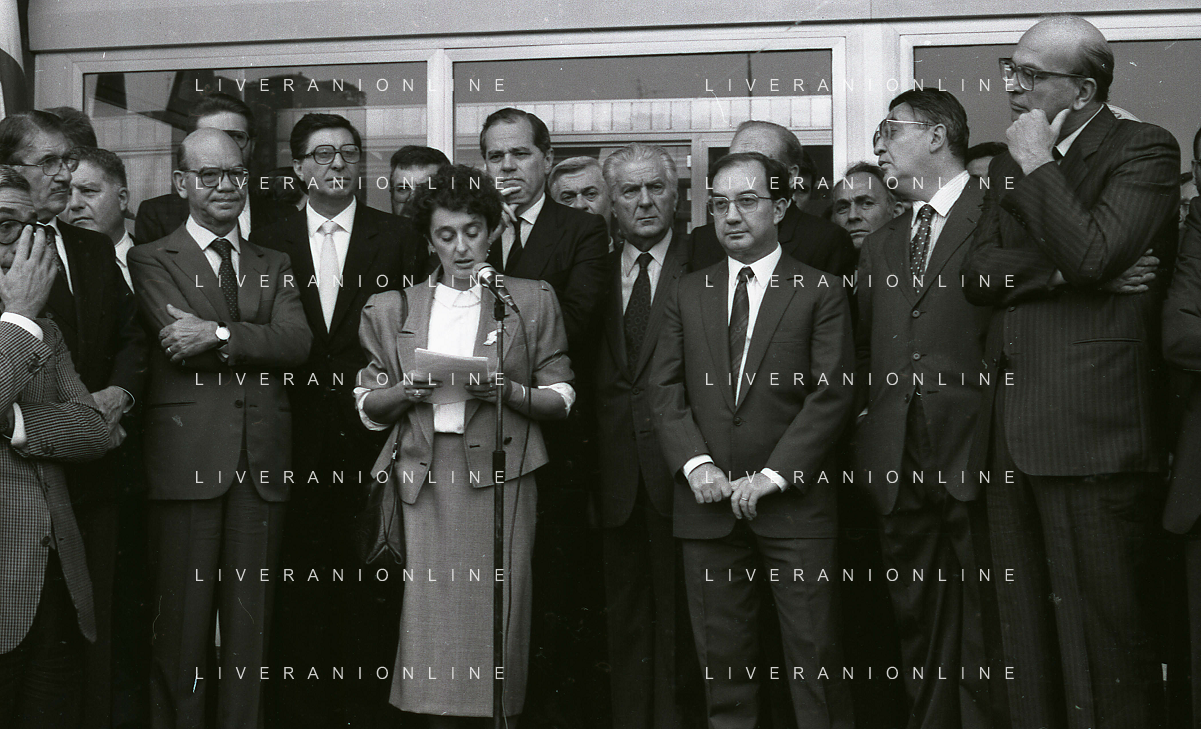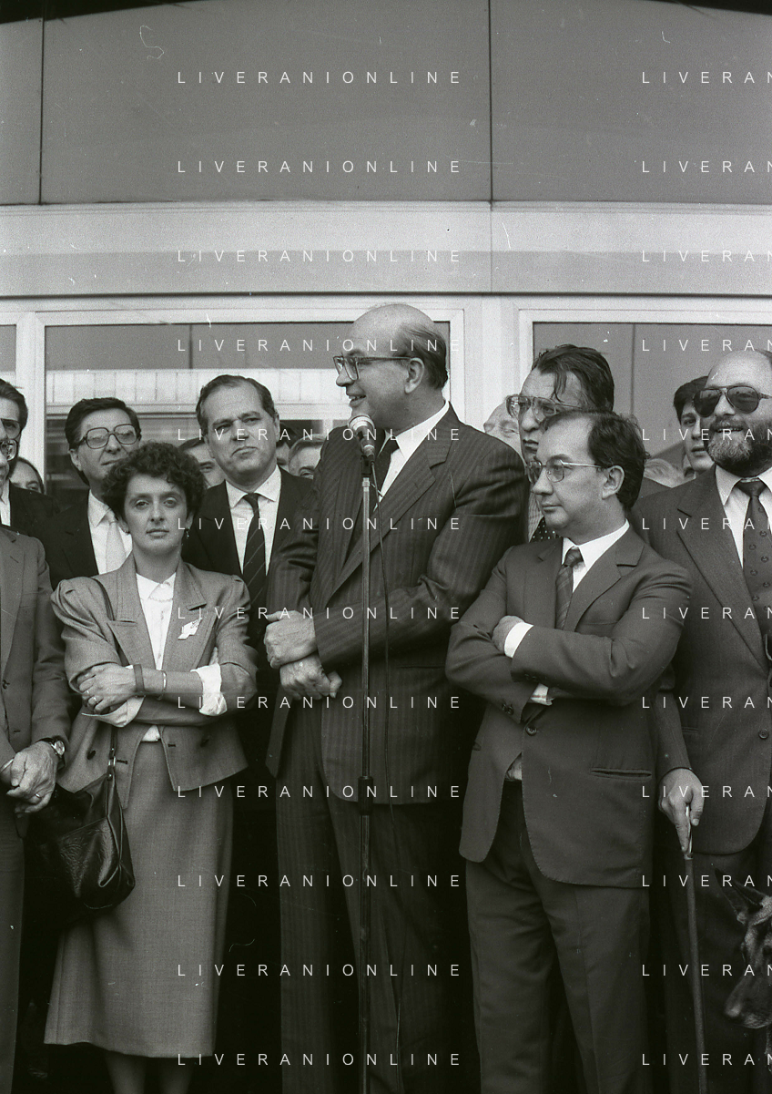 NEG- 1986 SESTO SAN GIOVANNI INAUGURAZIONE DELLA METROPOLITANA MILANESE FERMATA SESTO SAN GIOVANNI NELLA FOTO IL SINDACO DI SESTO SAN GIOVANNI FIORENZA BASSOLI CON BETTINO CRAXI CARLO TOGNOLI SINDACO DI MILANO E IL PREFETTO DI MILANO ENZO VICARI AG ALDO LIVERANI SAS