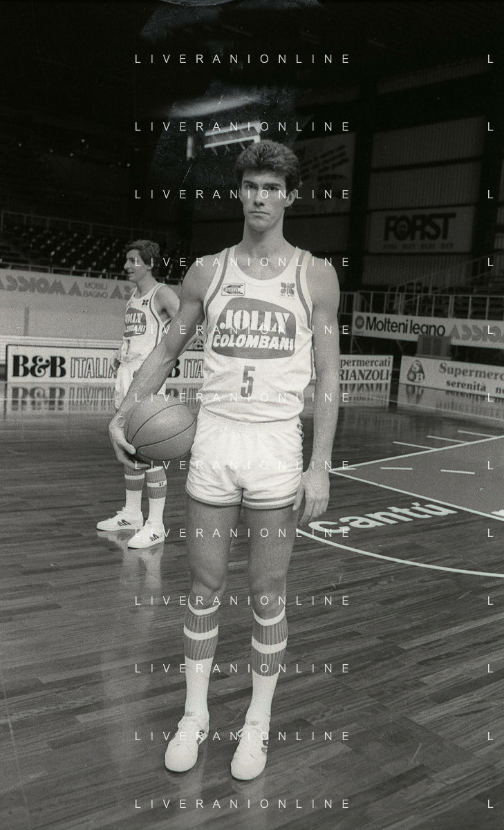 RETROSPETTIVA FAUSTO BARGNA BASKET NELLA FOTO FAUSTO BARGNA CON LA MAGLIA DELLA JOLLICOLOMBANI CANTU' NELL'ANNO 1984-1985 FOTO ENRICO LIVERANI-AG ALDO LIVERANI SAS