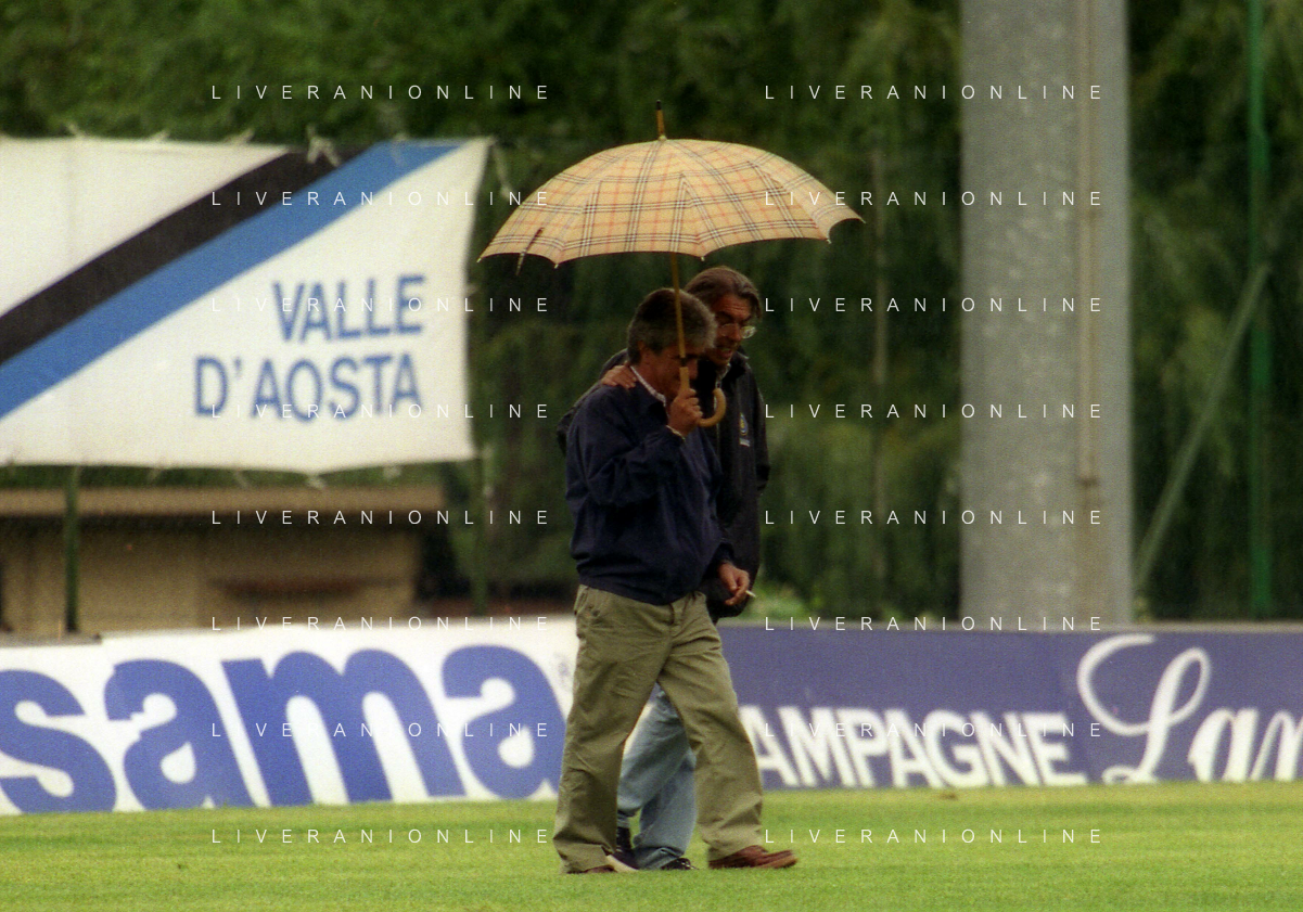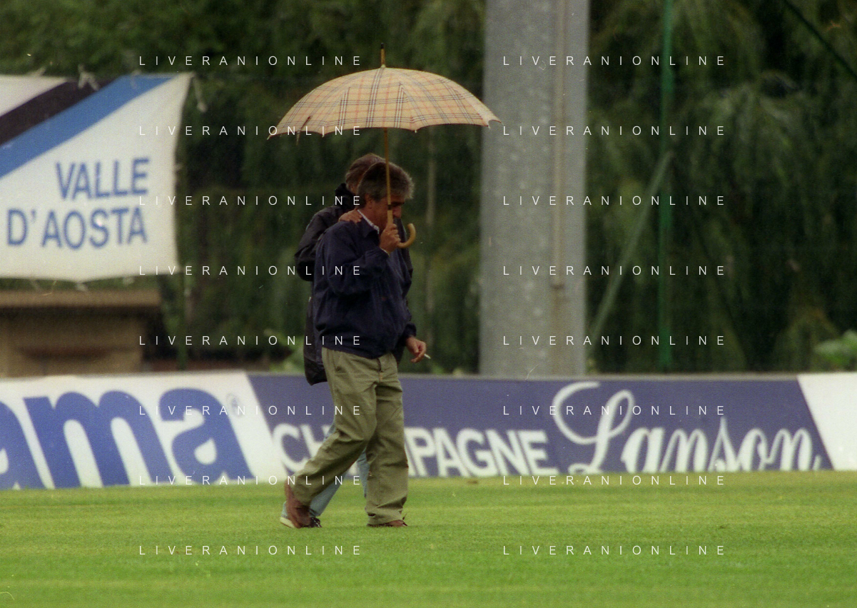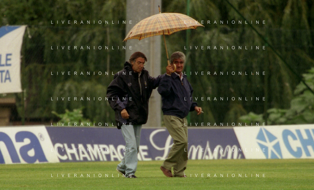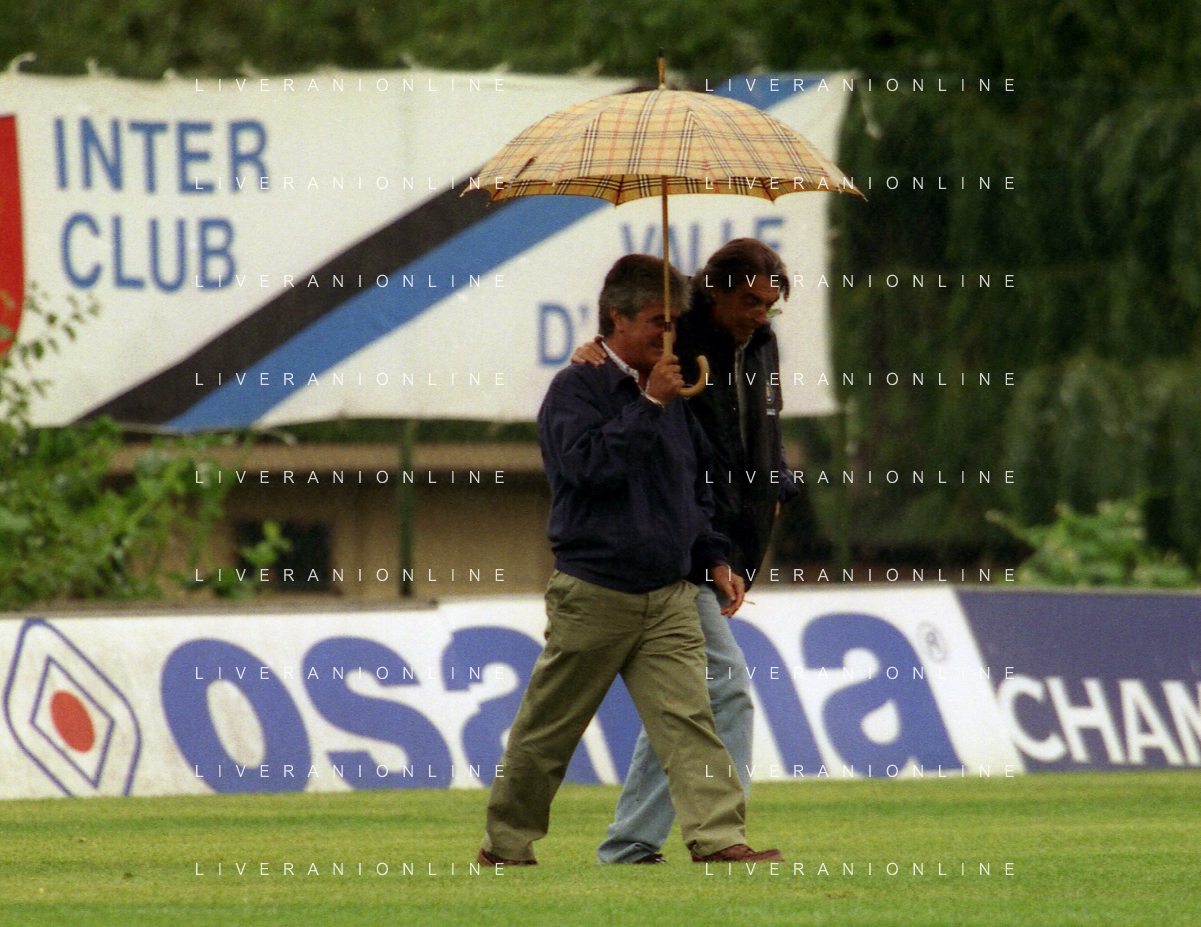 RETROSPETTIVA MASSIMO MORATTI PRESIDENTE INTER CALCIO NELLA FOTO NELLA FOTO MASSIMO MORATTI CON IL FRATELLO NATALINO CURZOLA MORATTI IN CAMPO AL RITIRO IN VALLE D'AOSTA NELL'ANNO 1999 AG ALDO LIVERANI SAS
