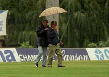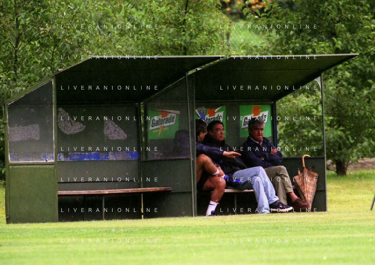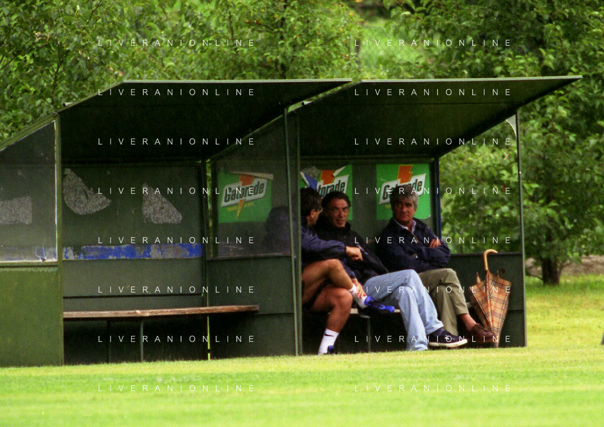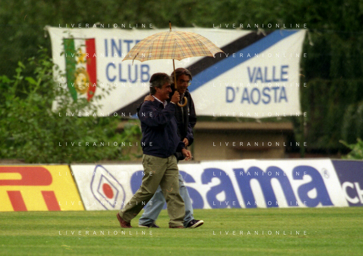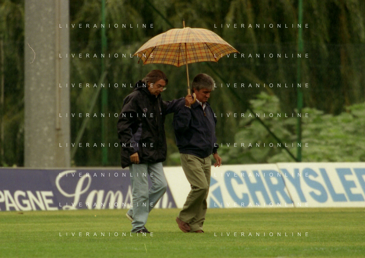 RETROSPETTIVA MASSIMO MORATTI PRESIDENTE INTER CALCIO NELLA FOTO NELLA FOTO MASSIMO MORATTI CON IL FRATELLO NATALINO CURZOLA MORATTI IN CAMPO AL RITIRO IN VALLE D'AOSTA NELL'ANNO 1999 AG ALDO LIVERANI SAS