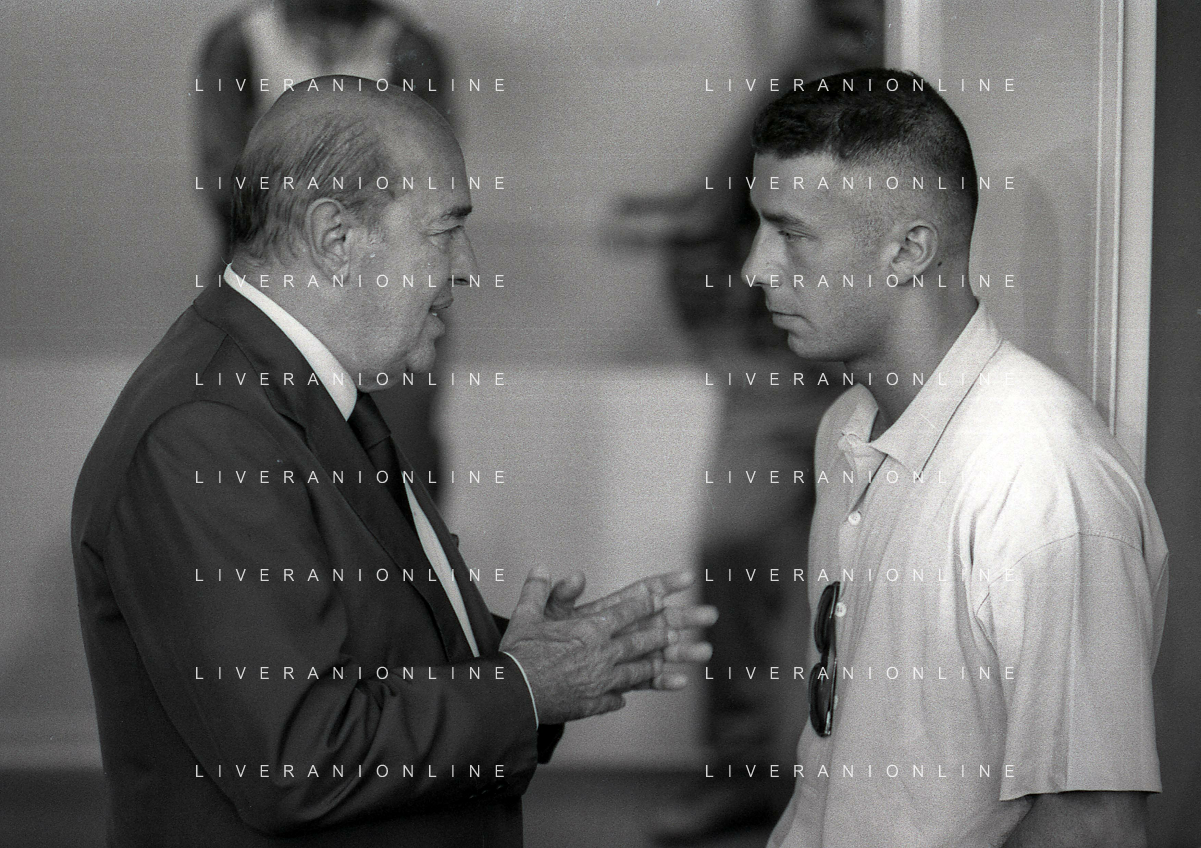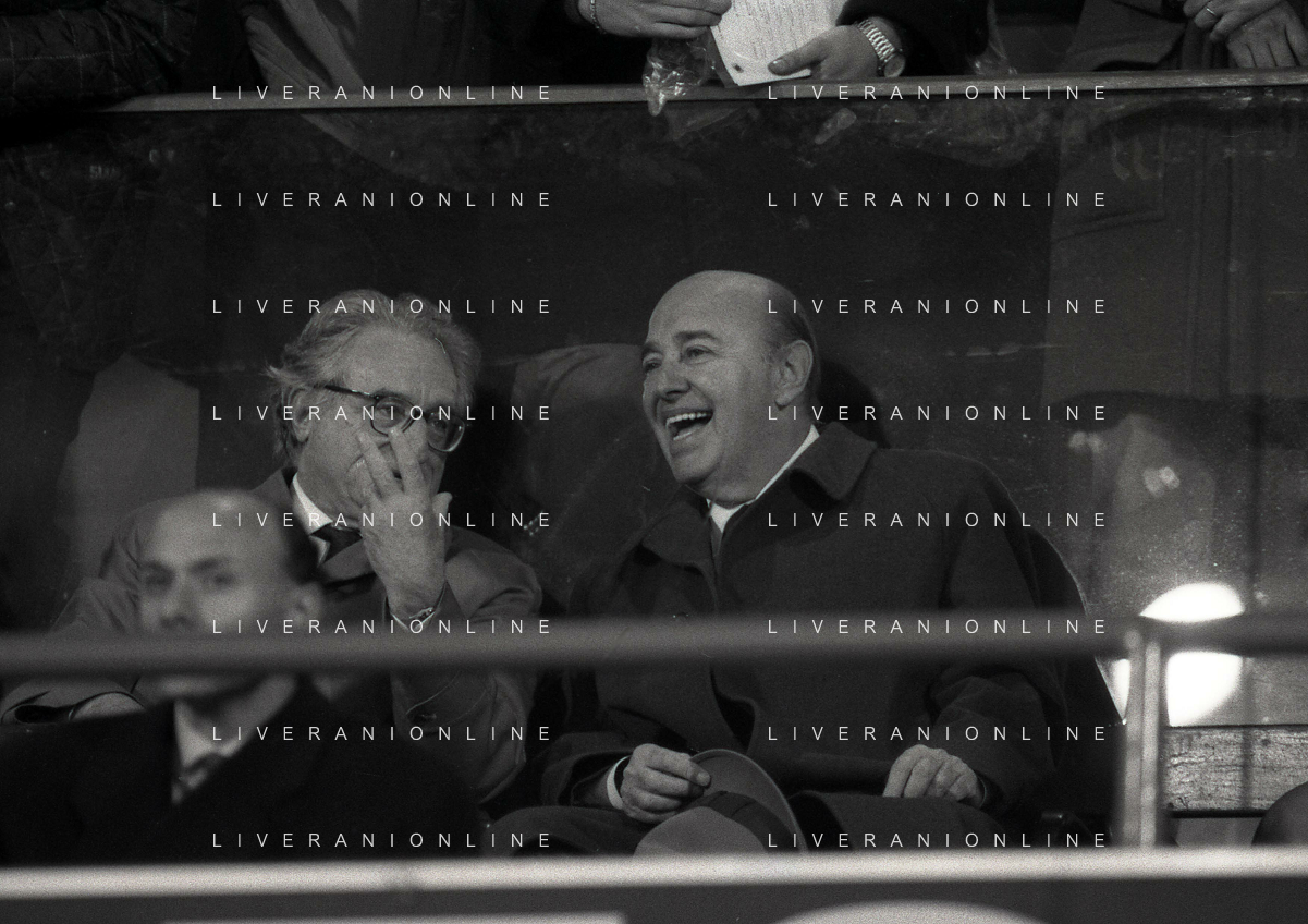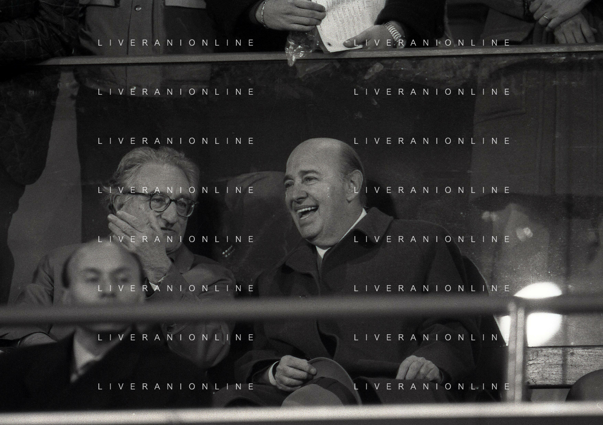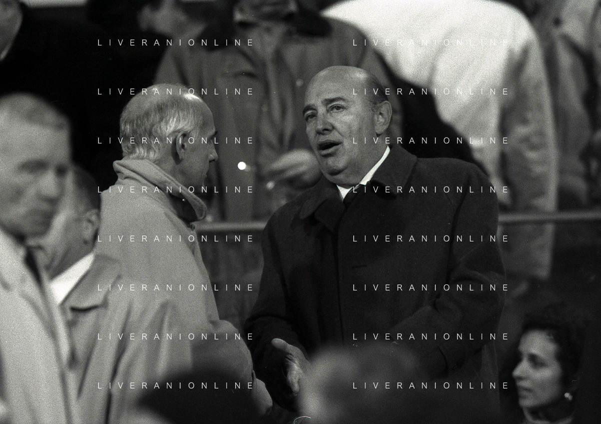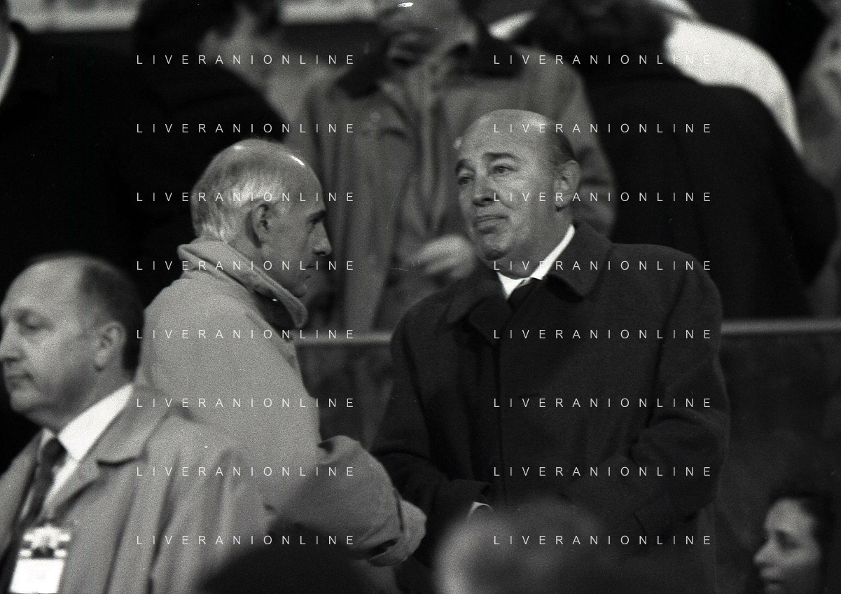 RETROSPETTIVA PAOLO MANTOVANI PRESIDENTE SAMPDORIA CALCIO NELLA FOTO PAOLO MANTOVANI PRESIDENTE DELLA SAMPDORIA CALCIO NELL'ANNO 1992-1993 CON IL GENERALE CIRO DI MARTINO DIRIGENTE ROMA CALCIO AG ALDO LIVERANI SAS