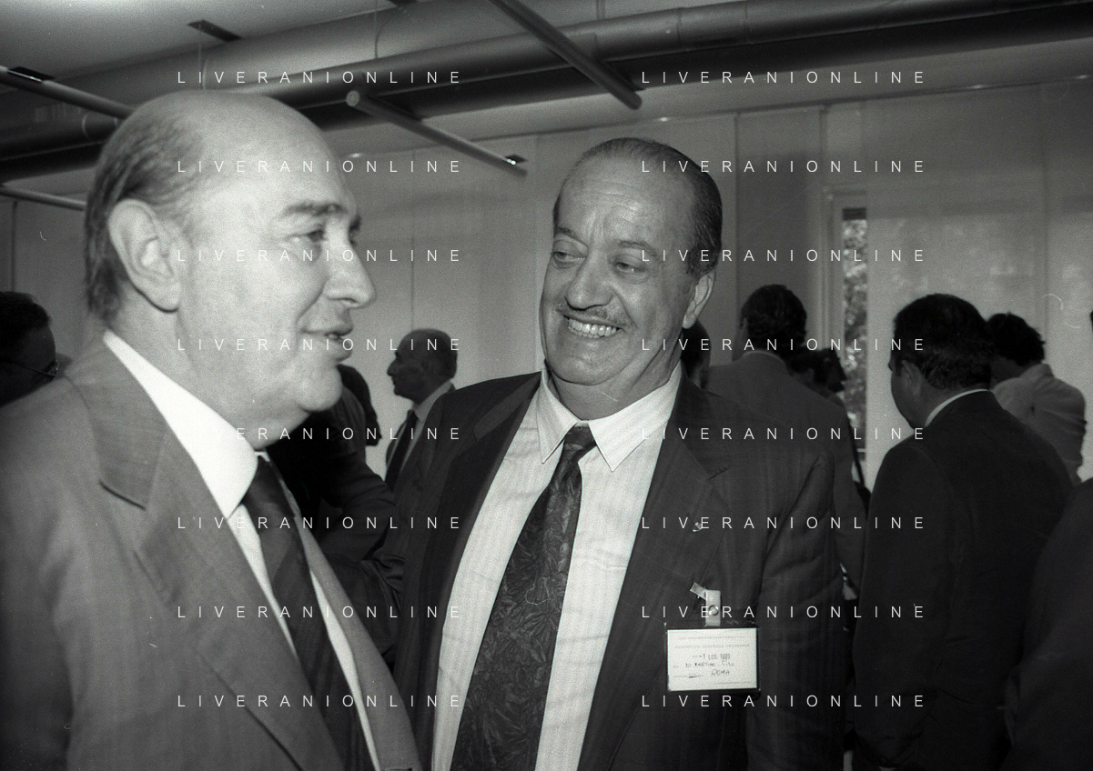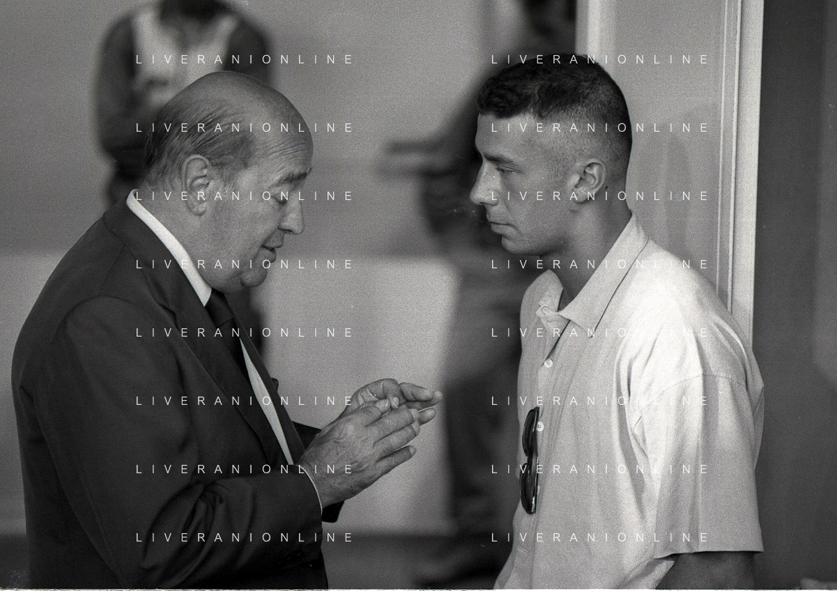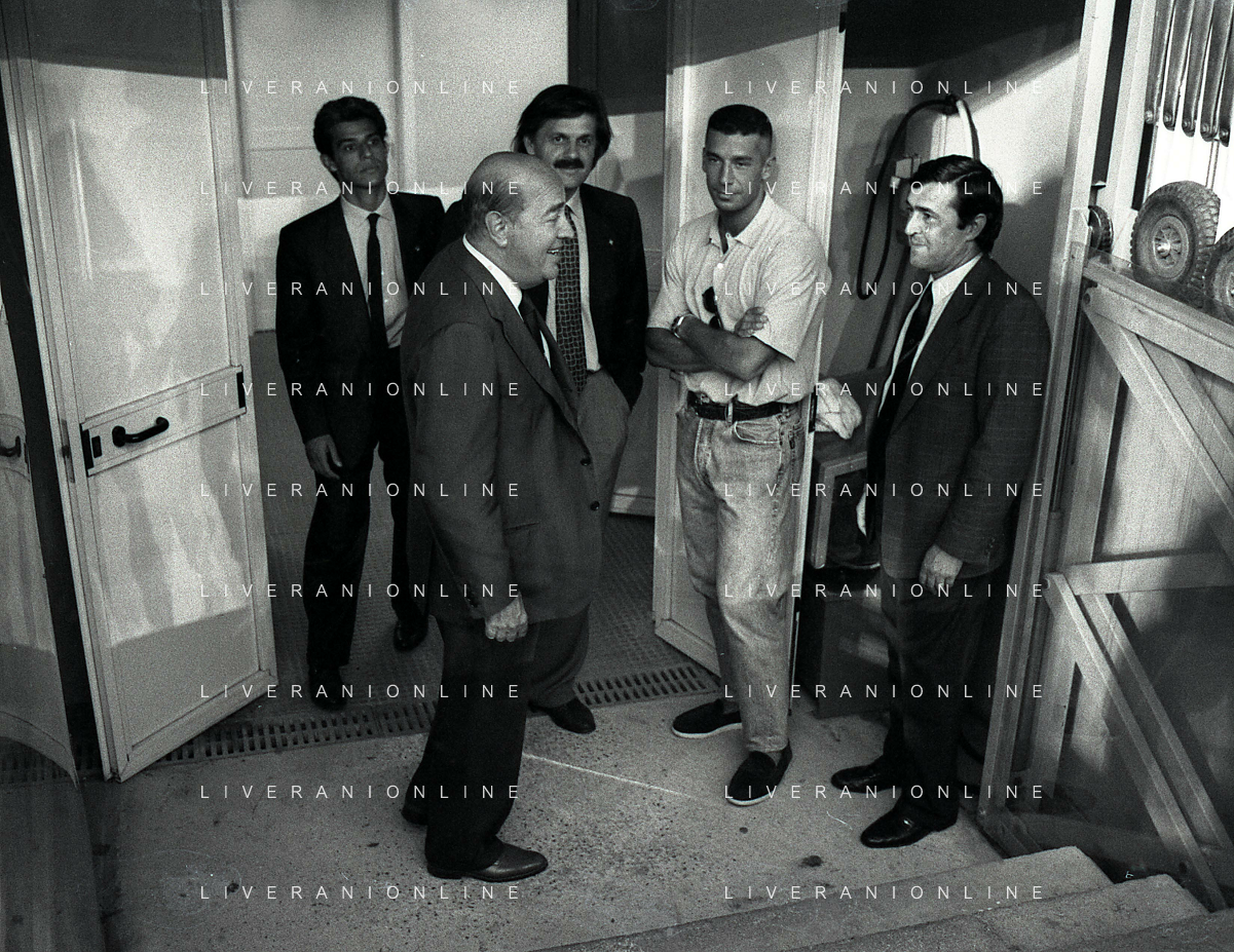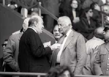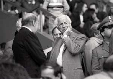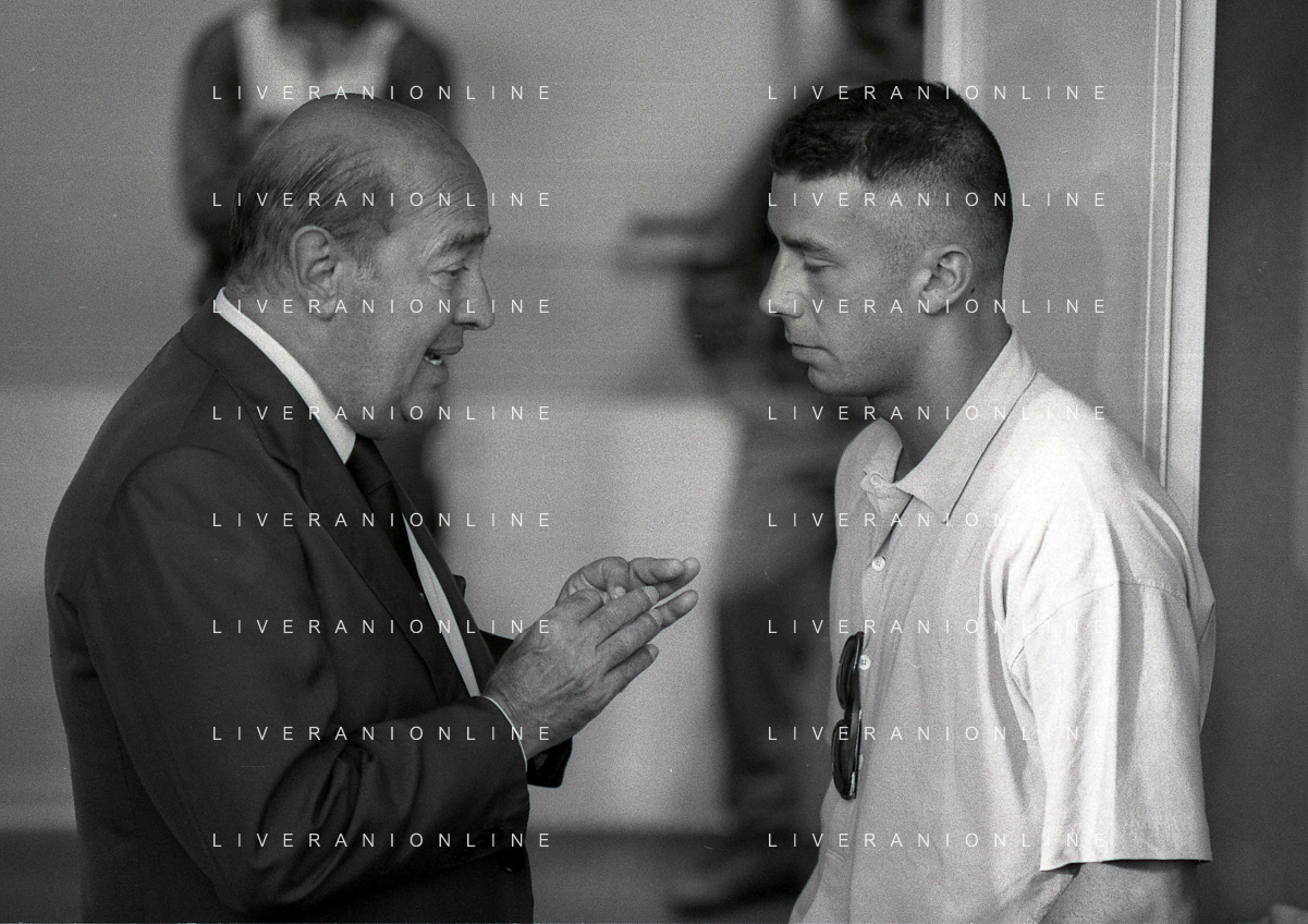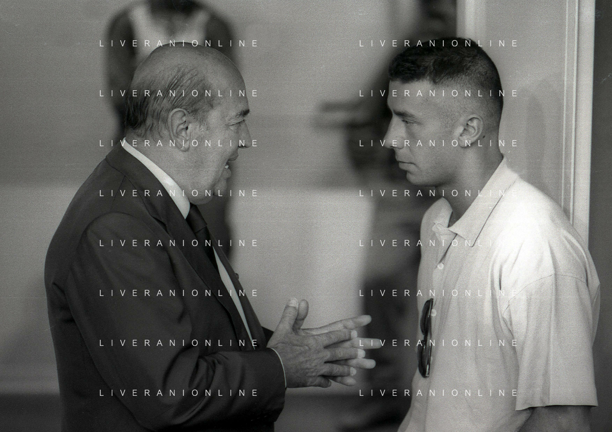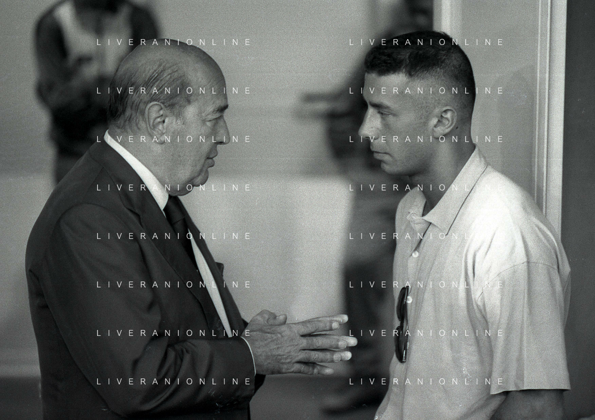 RETROSPETTIVA PAOLO MANTOVANI PRESIDENTE SAMPDORIA CALCIO NELLA FOTO PAOLO MANTOVANI PRESIDENTE DELLA SAMPDORIA CALCIO NELL'ANNO 1992-1993 CON IL GENERALE CIRO DI MARTINO DIRIGENTE ROMA CALCIO AG ALDO LIVERANI SAS