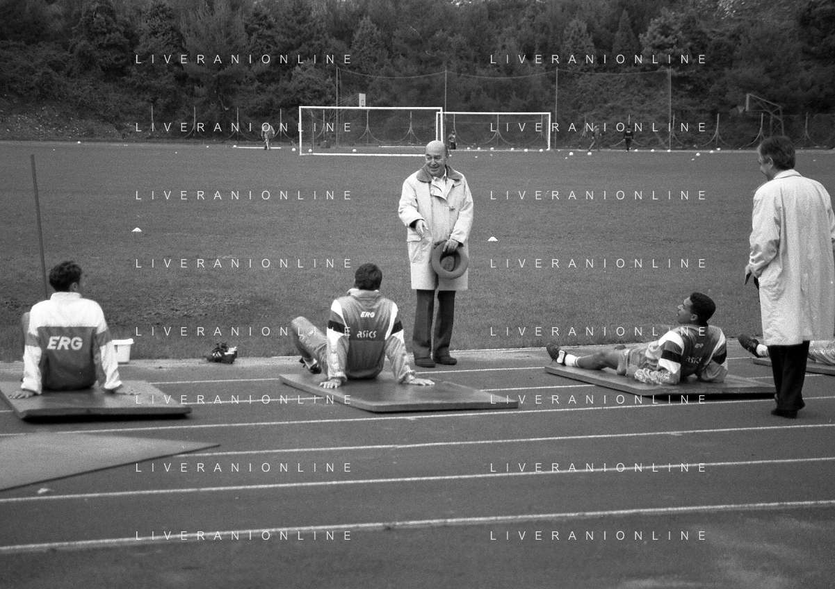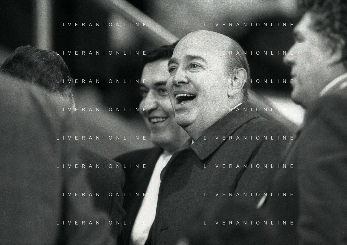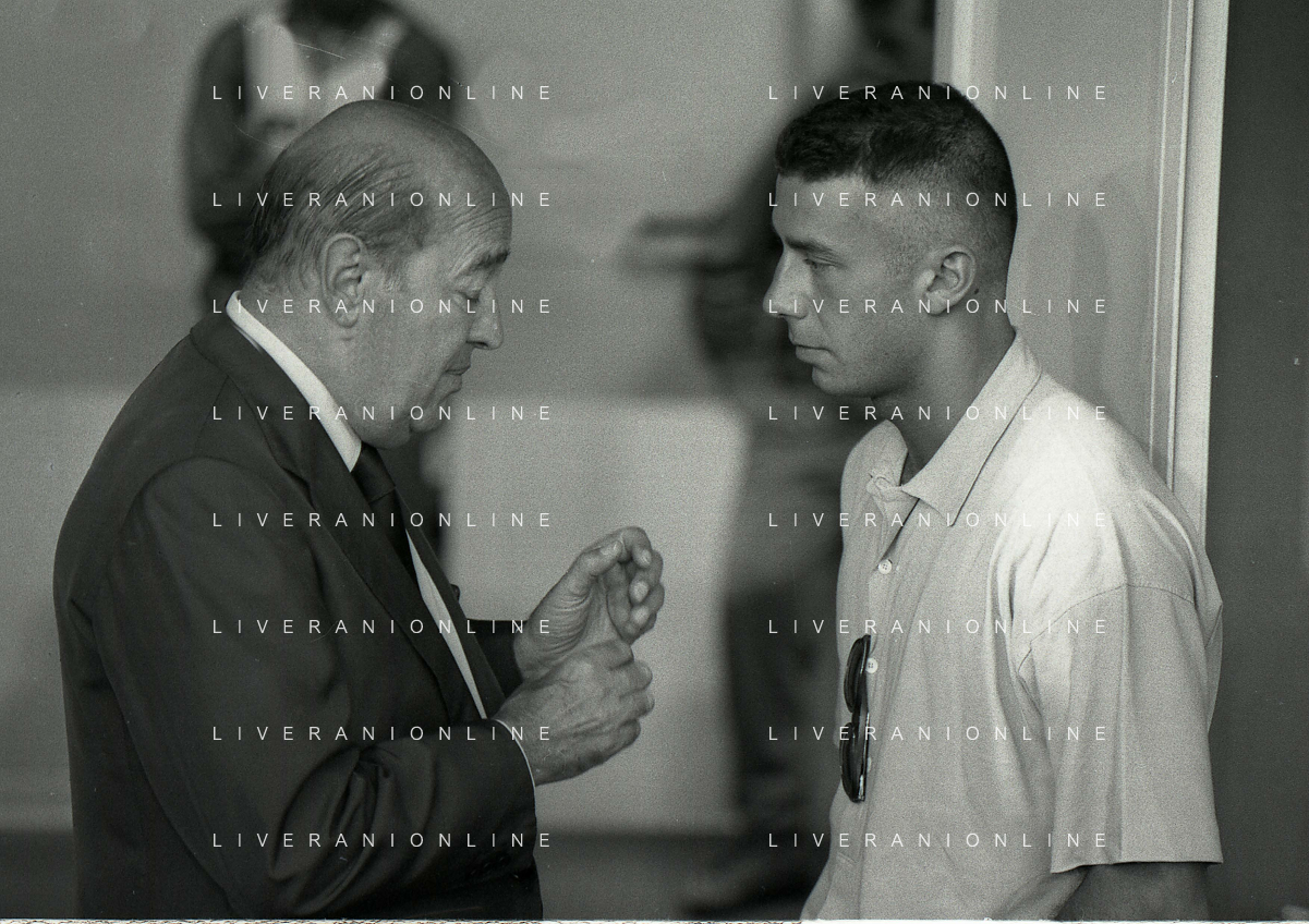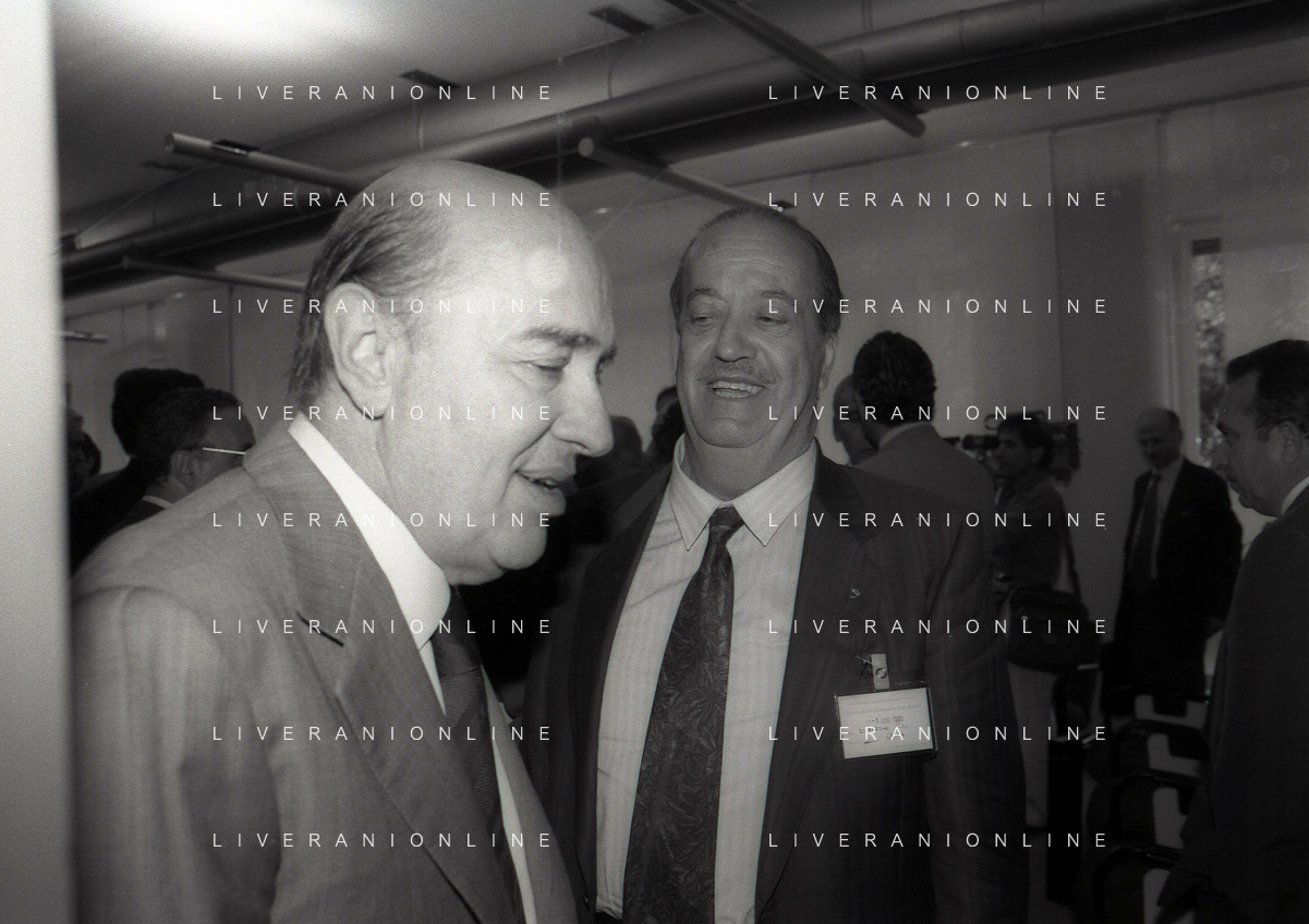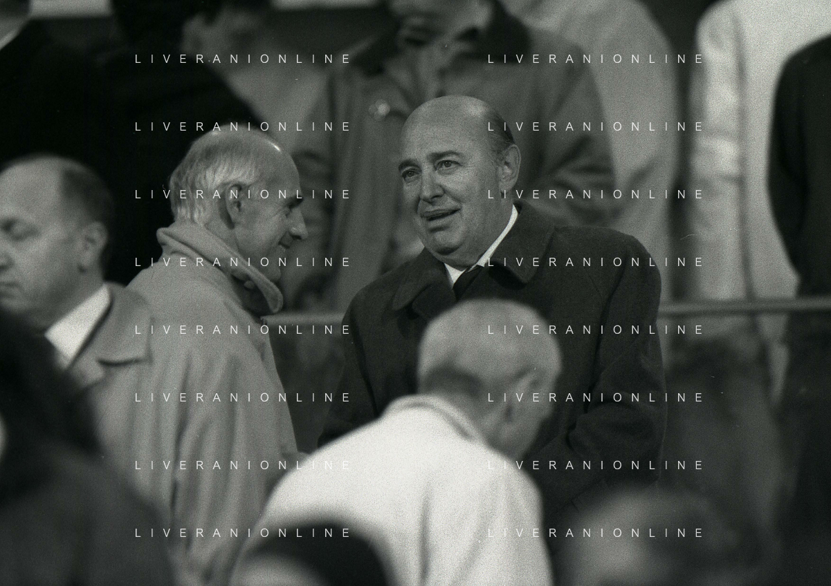 RETROSPETTIVA PAOLO MANTOVANI PRESIDENTE SAMPDORIA CALCIO NELLA FOTO PAOLO MANTOVANI PRESIDENTE DELLA SAMPDORIA CALCIO NELL'ANNO 1992-1993 CON IL GENERALE CIRO DI MARTINO DIRIGENTE ROMA CALCIO AG ALDO LIVERANI SAS
