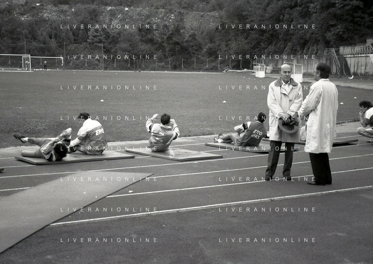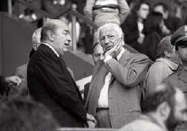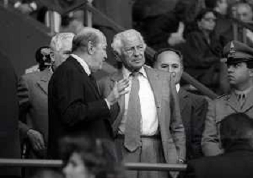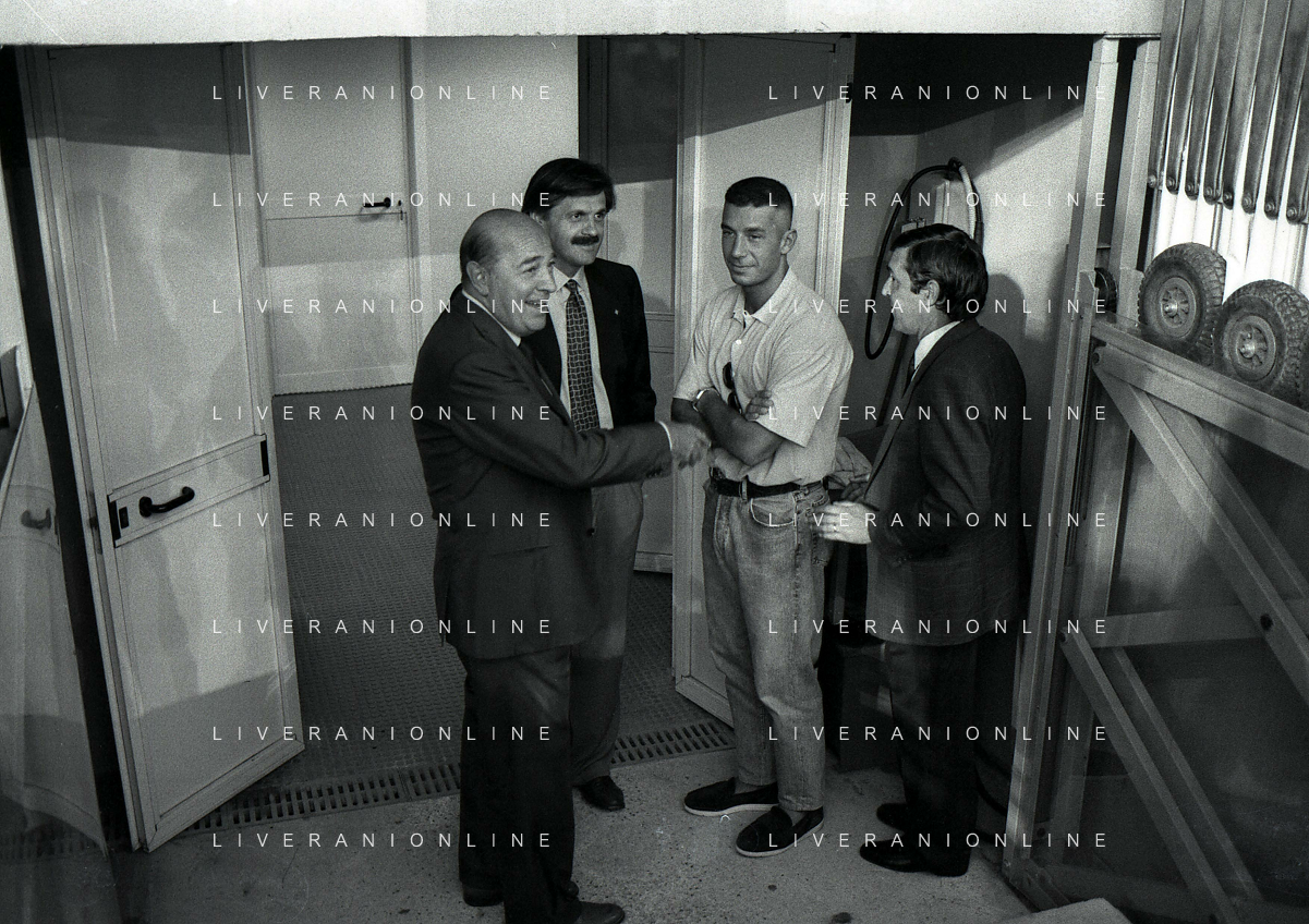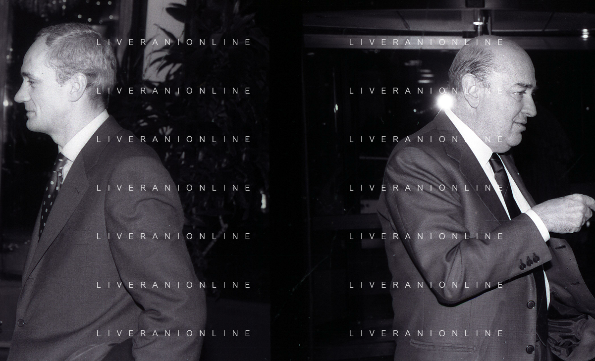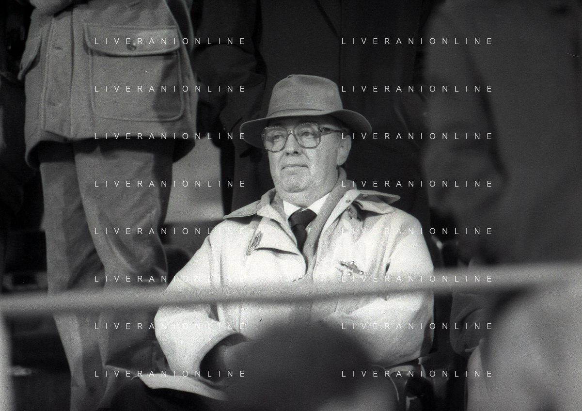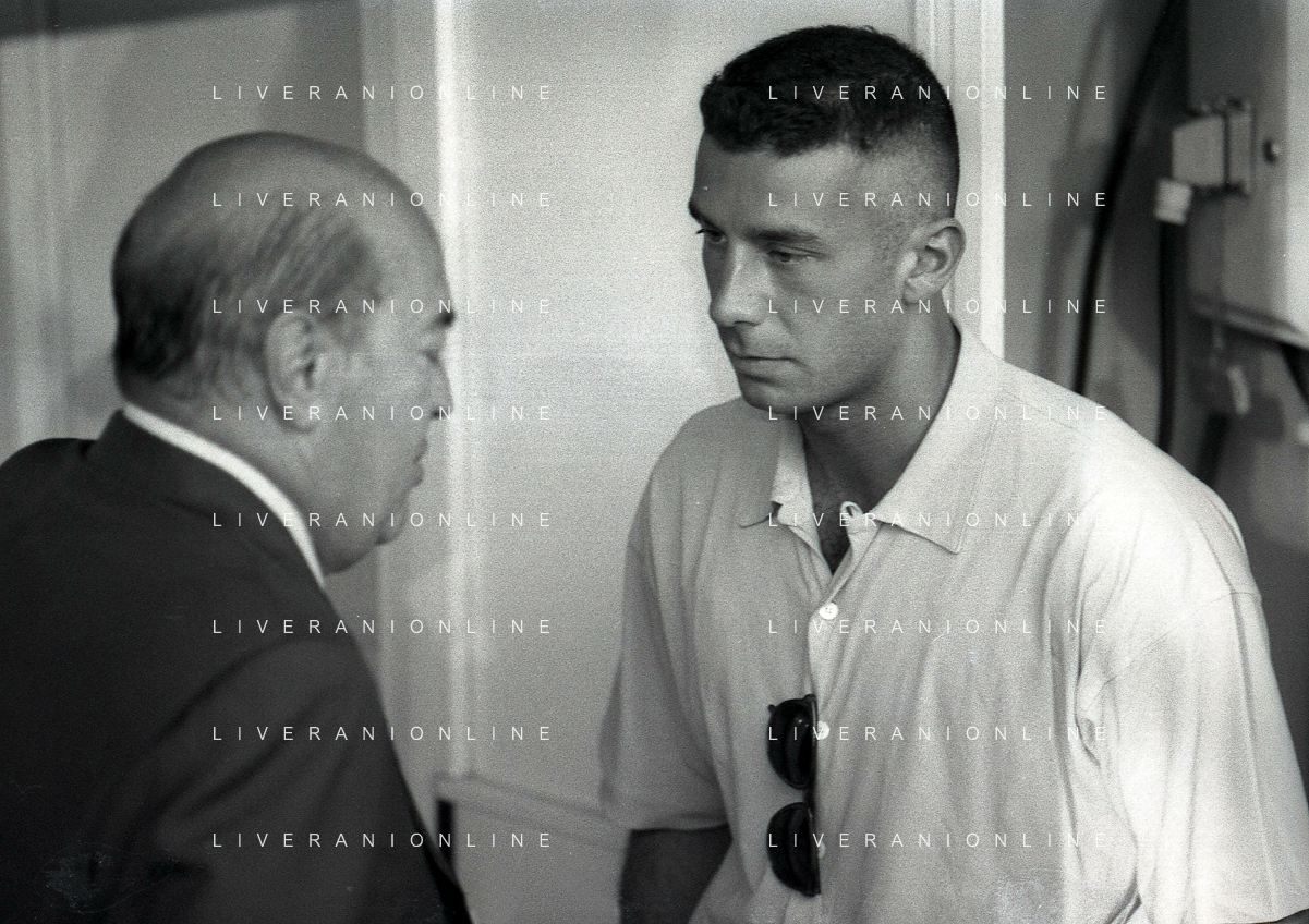 RETROSPETTIVA PAOLO MANTOVANI PRESIDENTE SAMPDORIA CALCIO NELLA FOTO PAOLO MANTOVANI PRESIDENTE DELLA SAMPDORIA CALCIO NELL'ANNO 1992-1993 CON IL GENERALE CIRO DI MARTINO DIRIGENTE ROMA CALCIO AG ALDO LIVERANI SAS