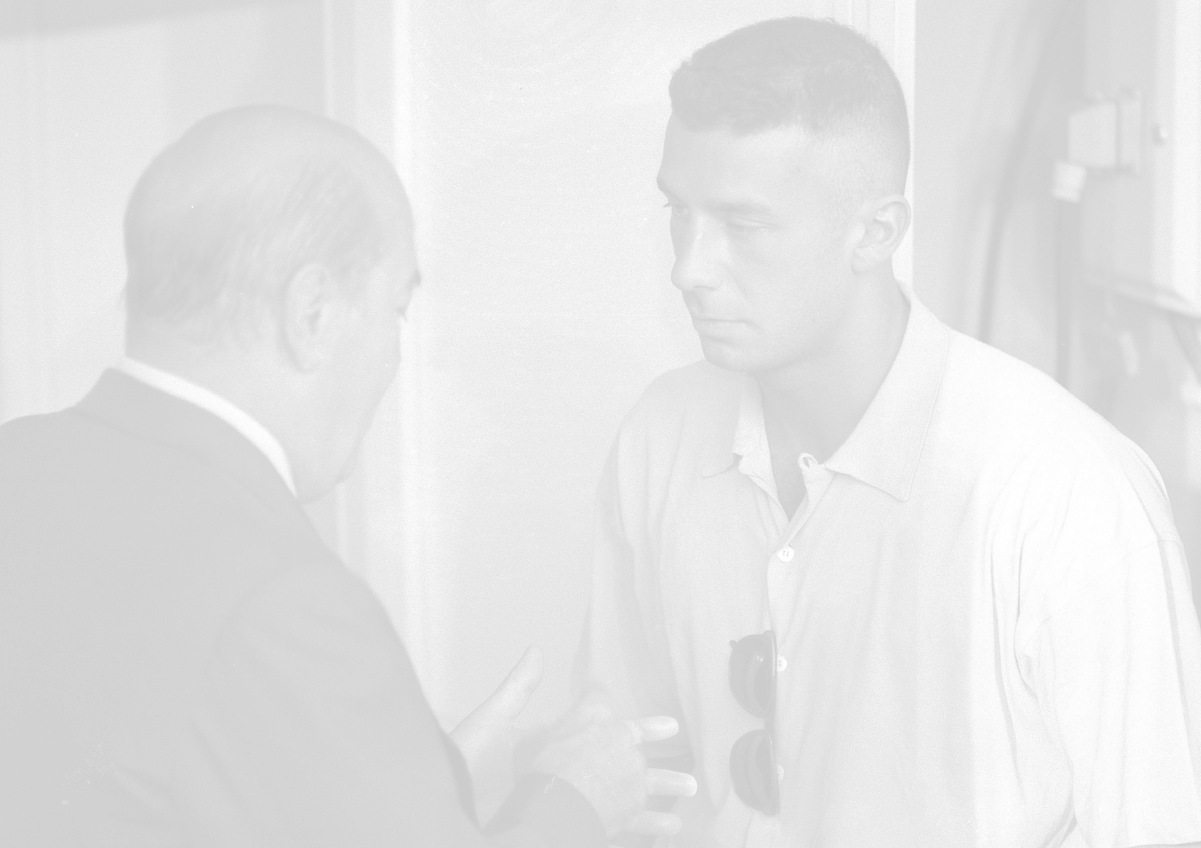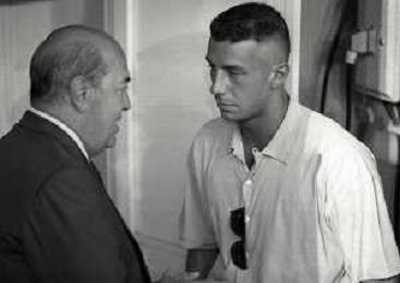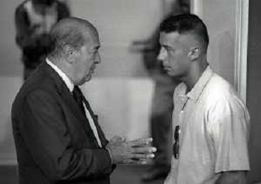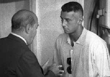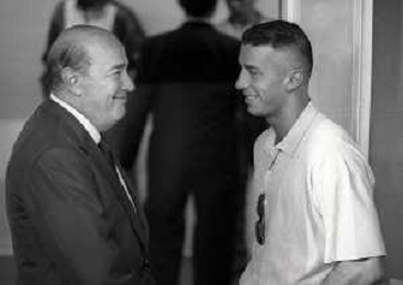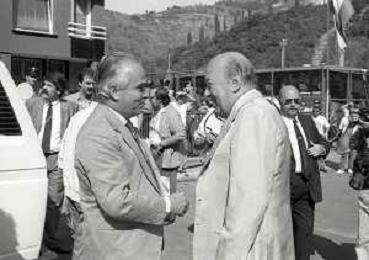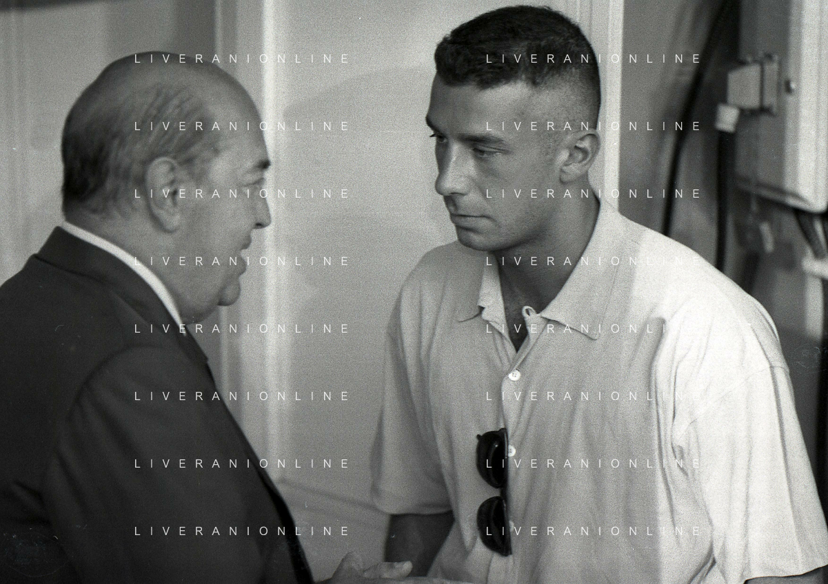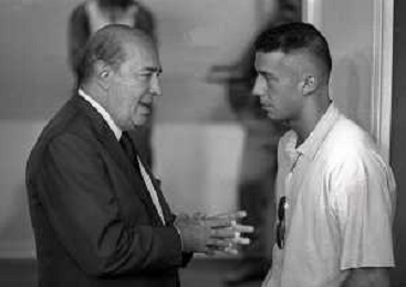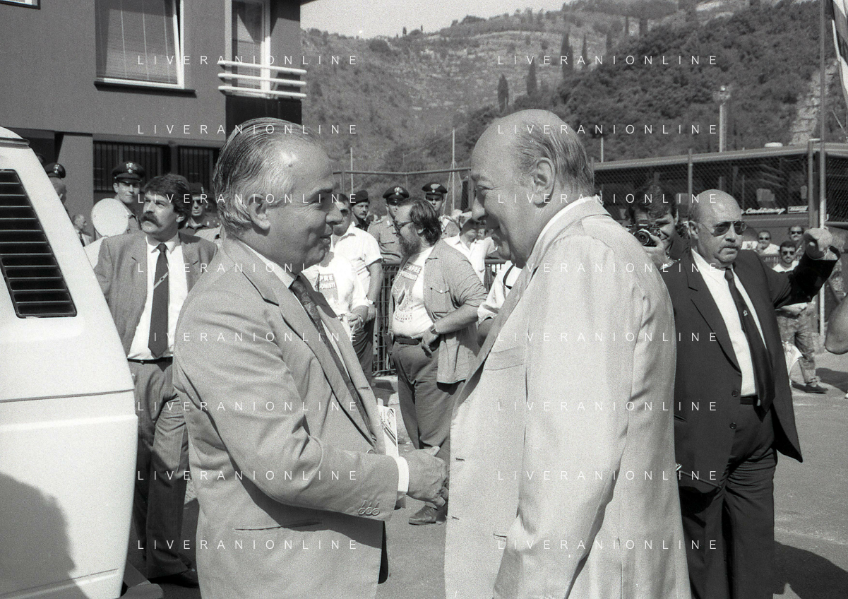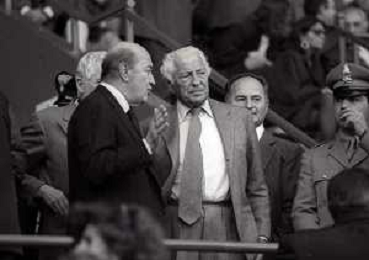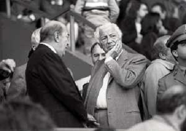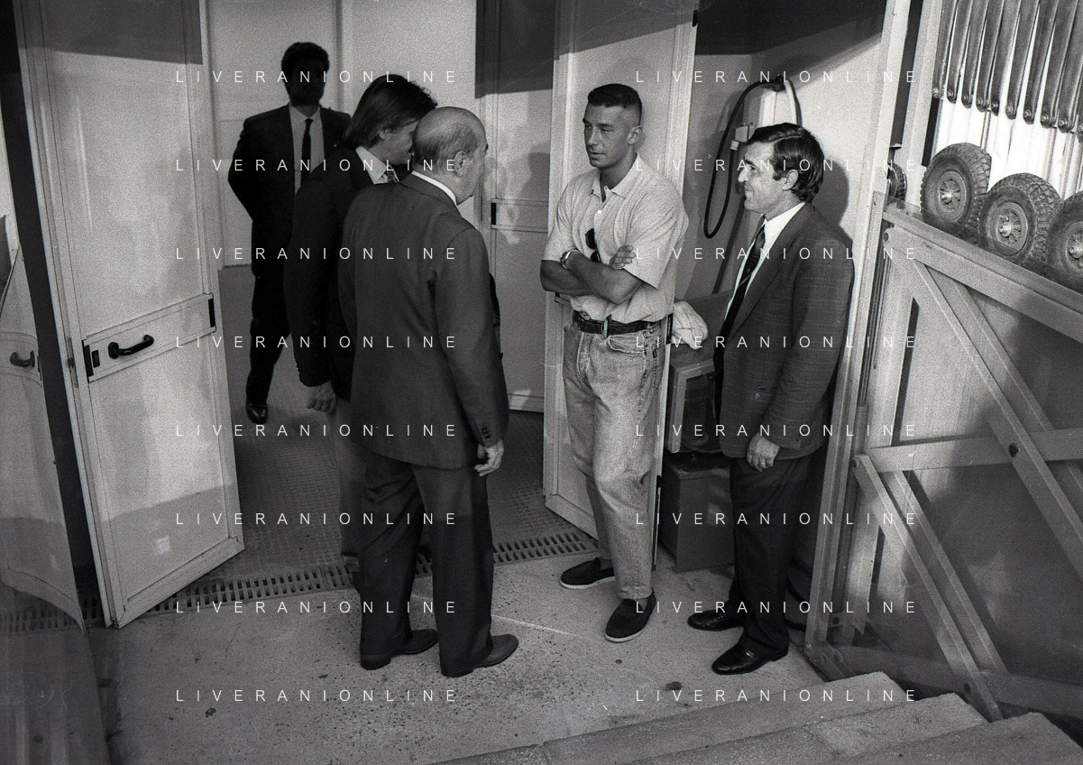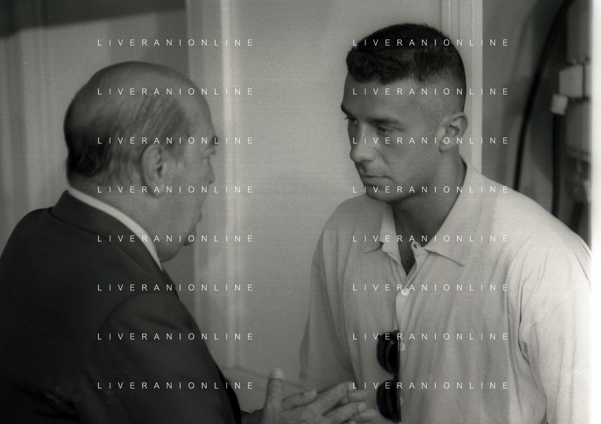 RETROSPETTIVA PAOLO MANTOVANI PRESIDENTE SAMPDORIA CALCIO NELLA FOTO PAOLO MANTOVANI PRESIDENTE DELLA SAMPDORIA CALCIO NELL'ANNO 1992-1993 CON IL GENERALE CIRO DI MARTINO DIRIGENTE ROMA CALCIO AG ALDO LIVERANI SAS