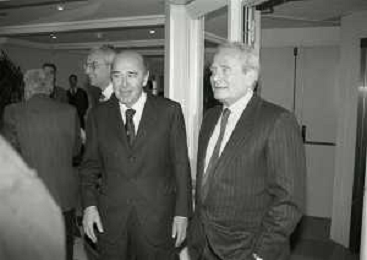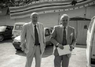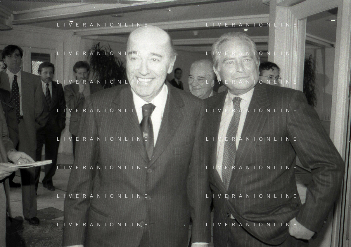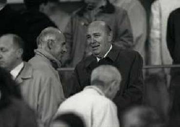 RETROSPETTIVA PAOLO MANTOVANI PRESIDENTE SAMPDORIA CALCIO NELLA FOTO PAOLO MANTOVANI PRESIDENTE DELLA SAMPDORIA CALCIO NELL'ANNO 1992-1993 CON GIAMPIERO BONIPERTI AG ALDO LIVERANI SAS
