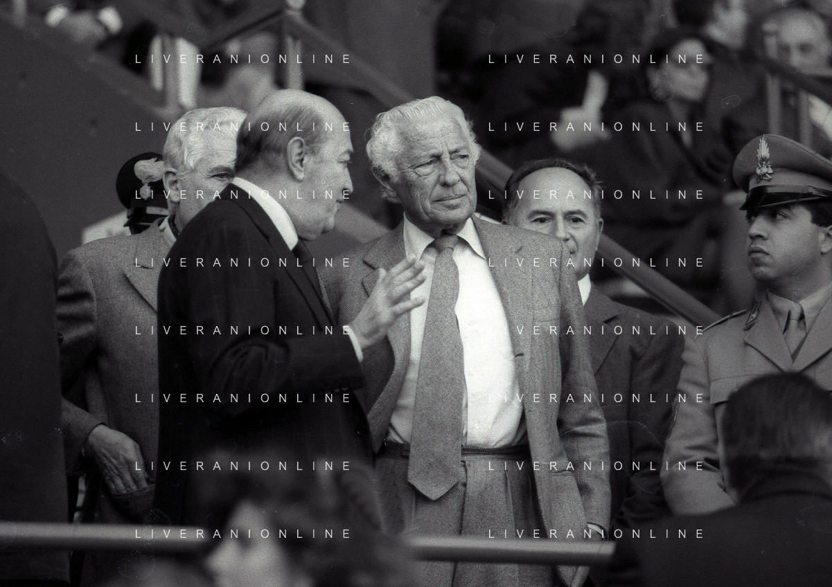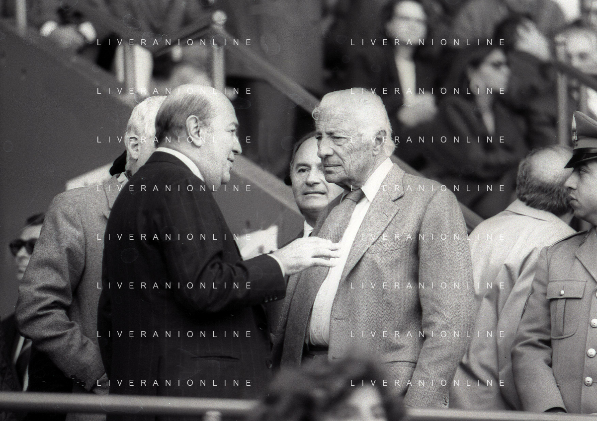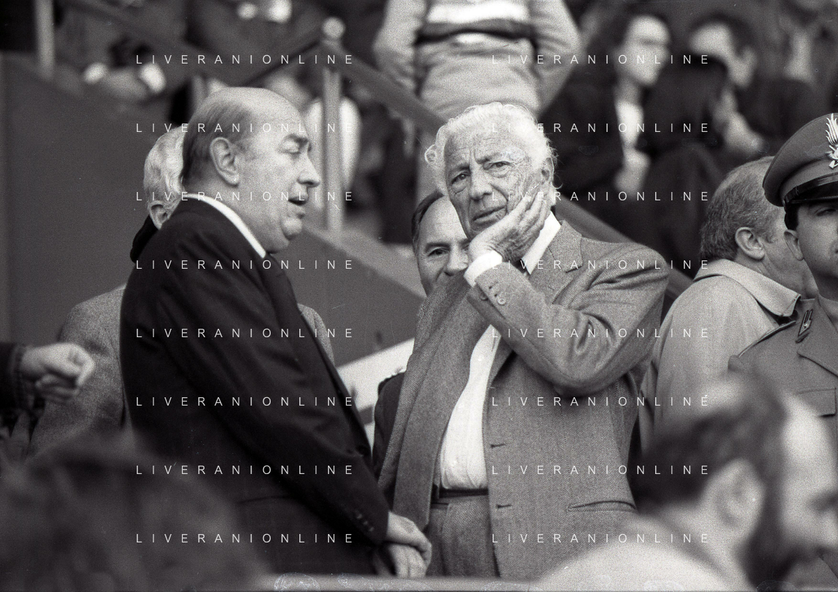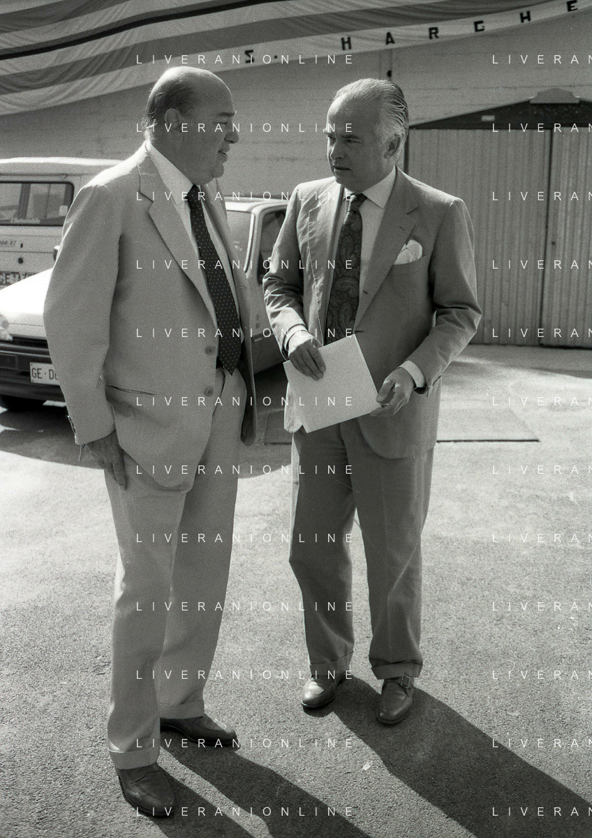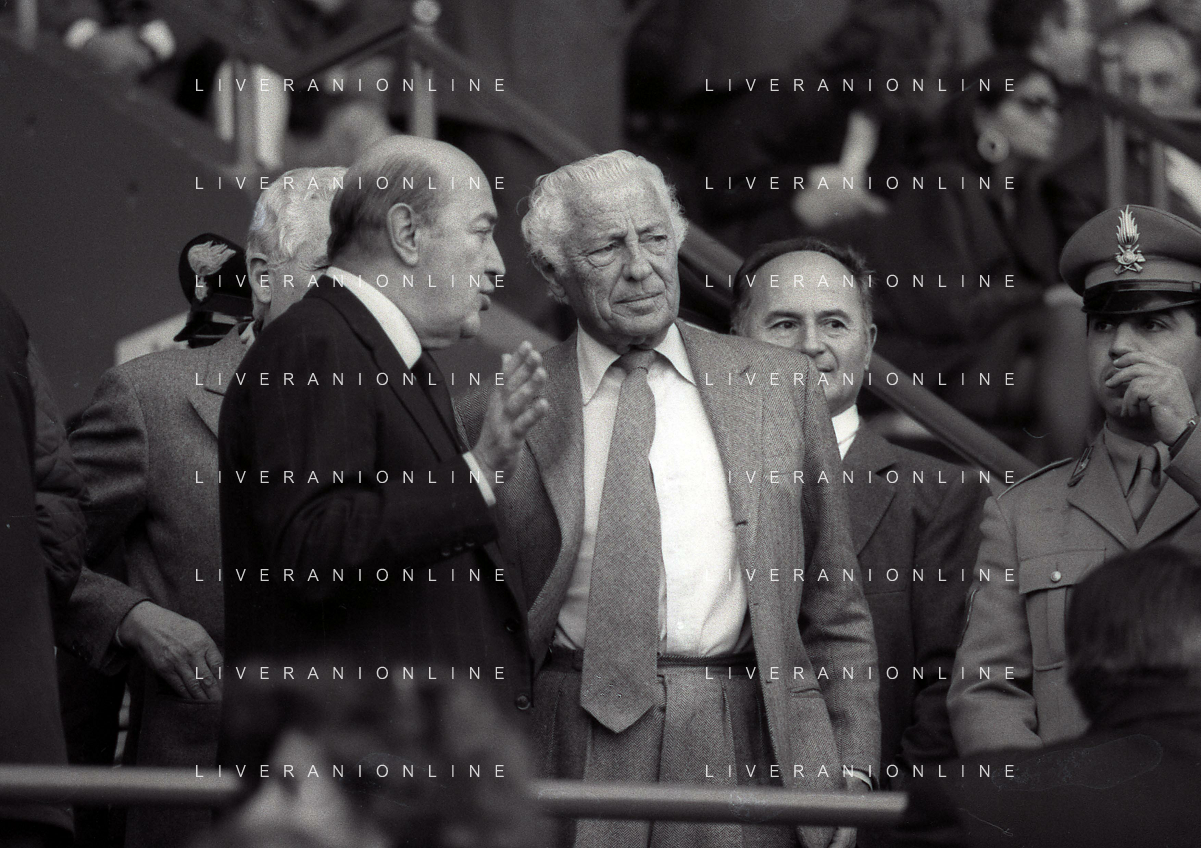 RETROSPETTIVA PAOLO MANTOVANI PRESIDENTE SAMPDORIA CALCIO NELLA FOTO PAOLO MANTOVANI PRESIDENTE DELLA SAMPDORIA CALCIO NELL'ANNO 1990 CON GIANNI AGNELLI AG ALDO LIVERANI SAS