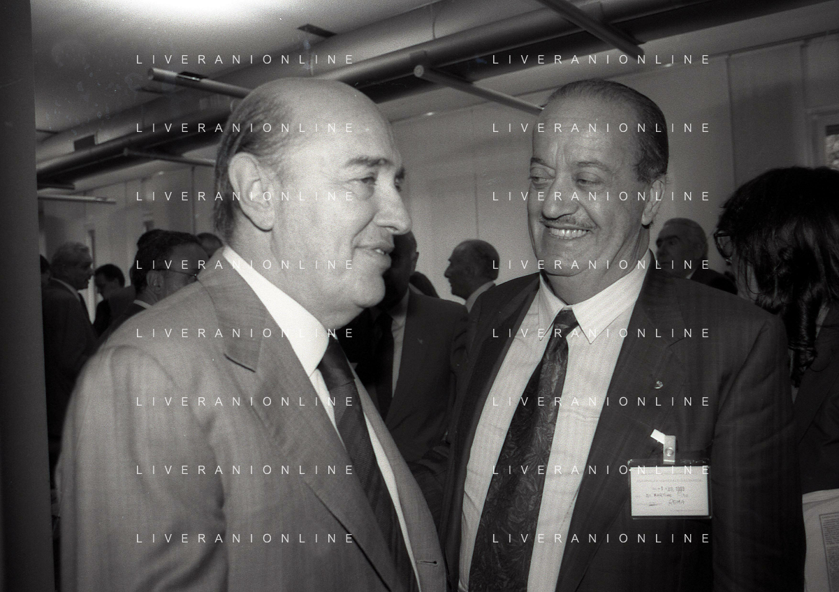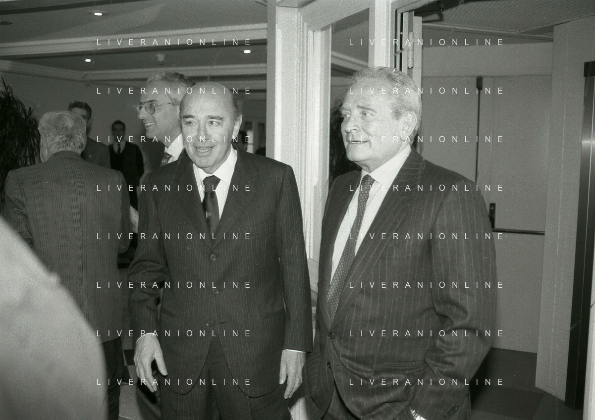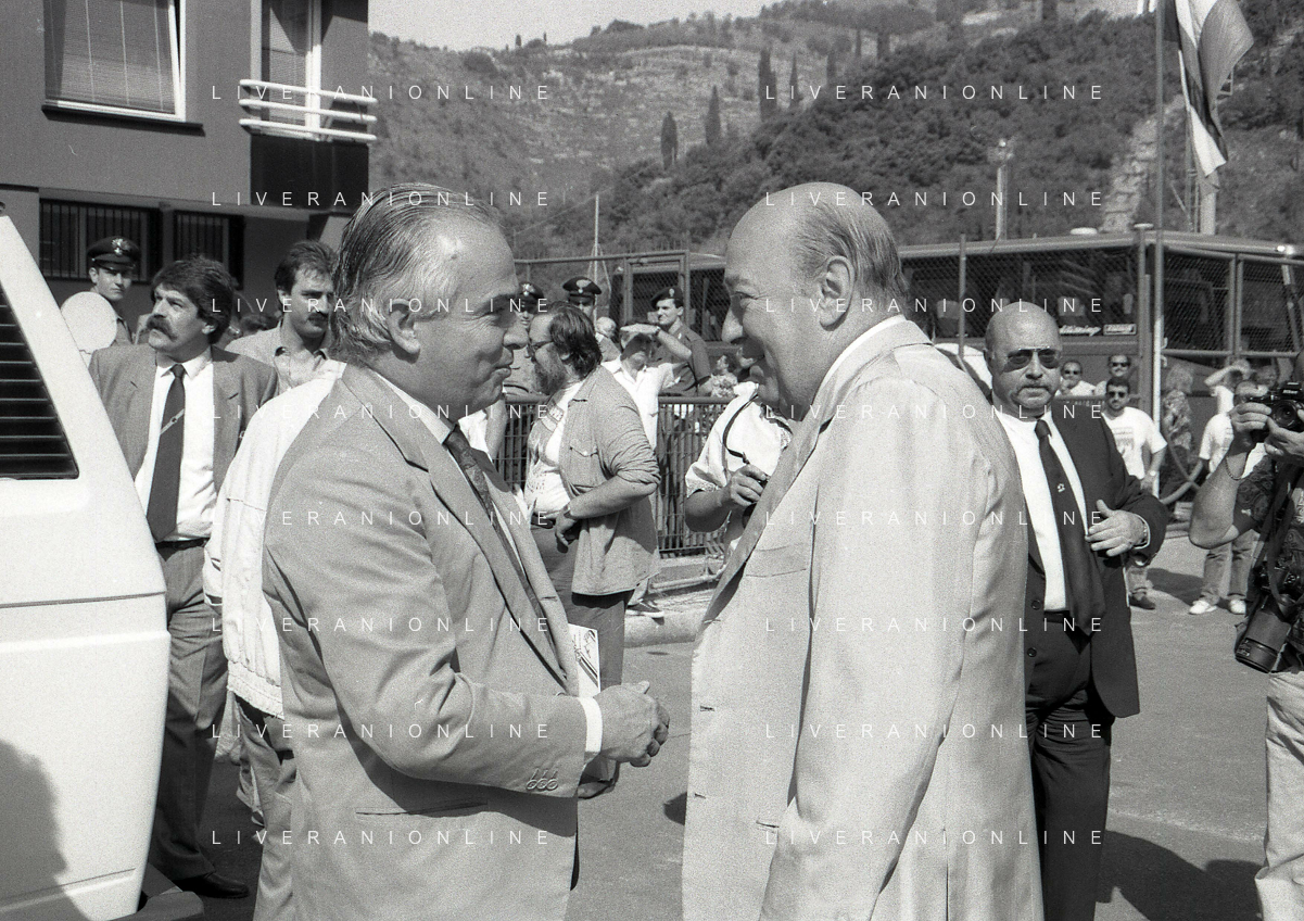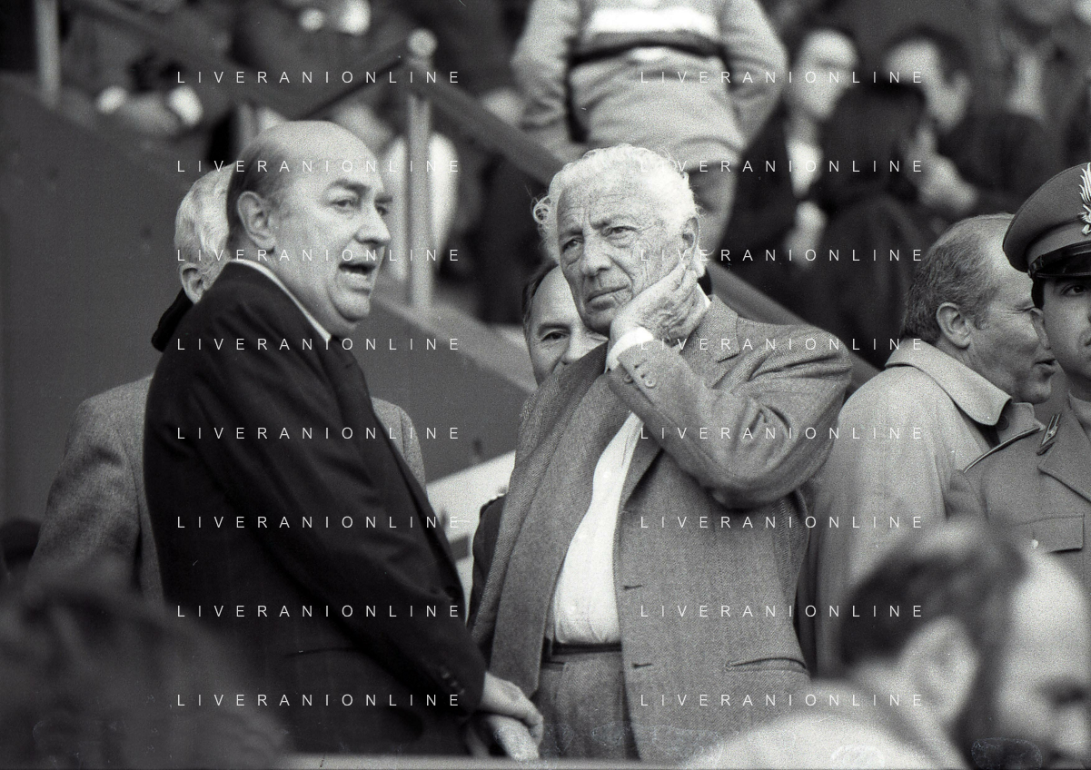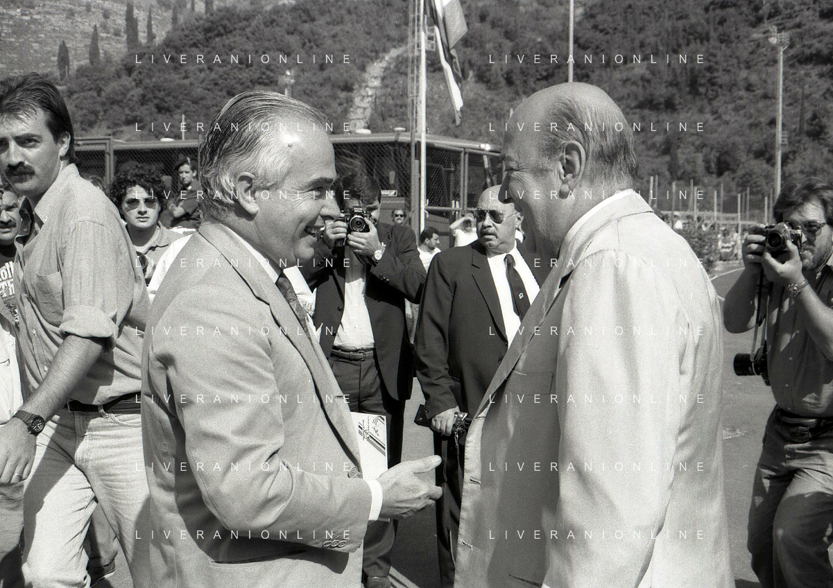 RETROSPETTIVA PAOLO MANTOVANI PRESIDENTE SAMPDORIA CALCIO NELLA FOTO PAOLO MANTOVANI PRESIDENTE DELLA SAMPDORIA CALCIO NELL'ANNO 1990 CON GIANNI AGNELLI AG ALDO LIVERANI SAS