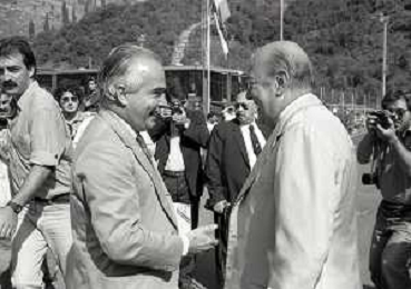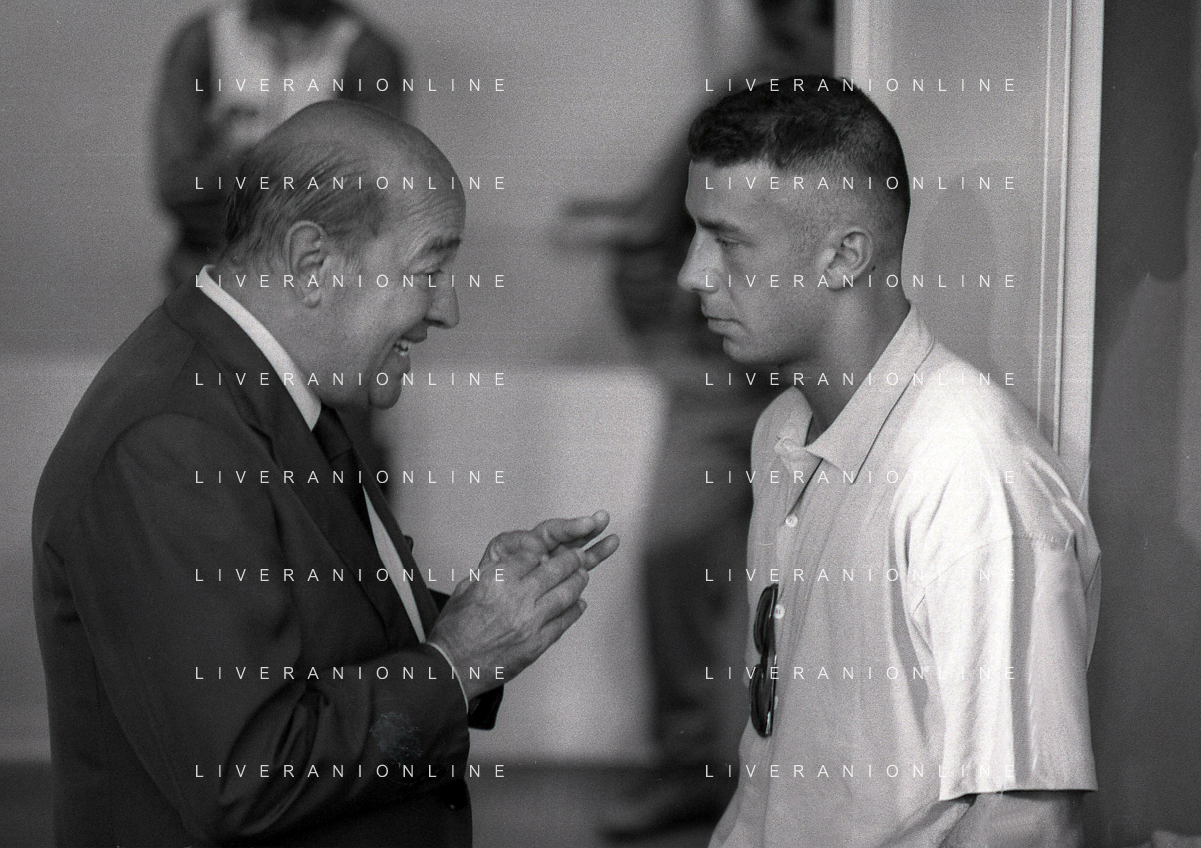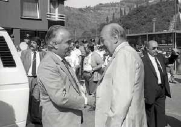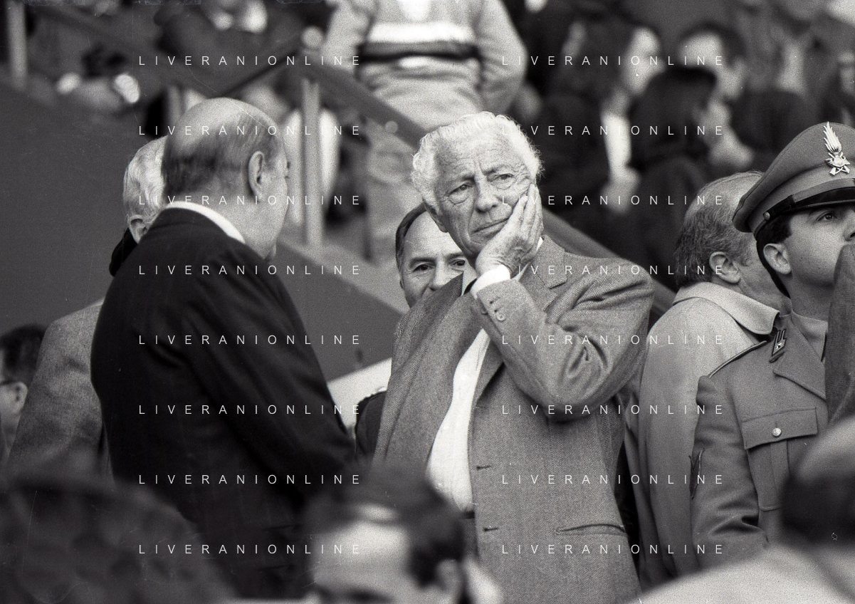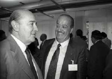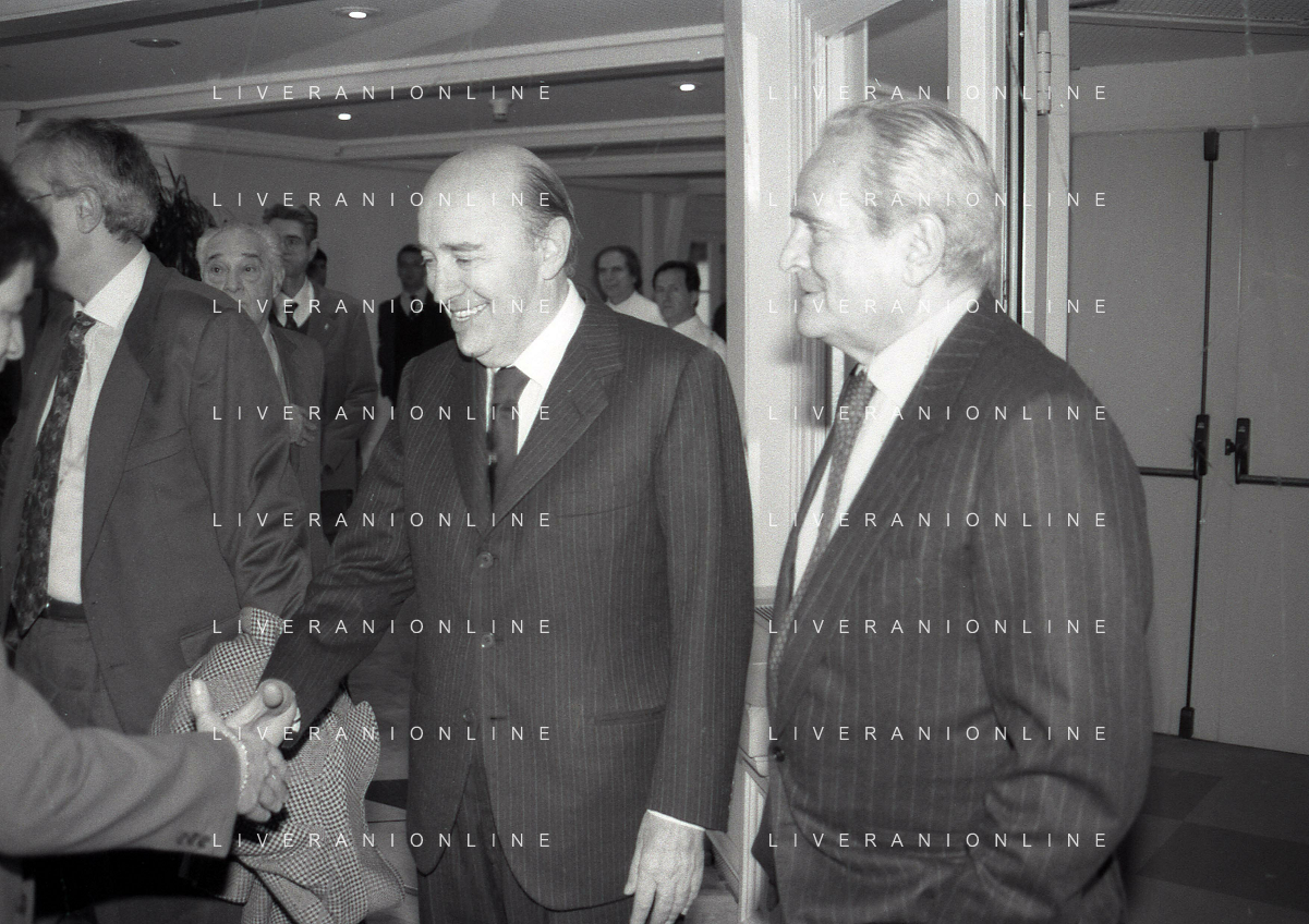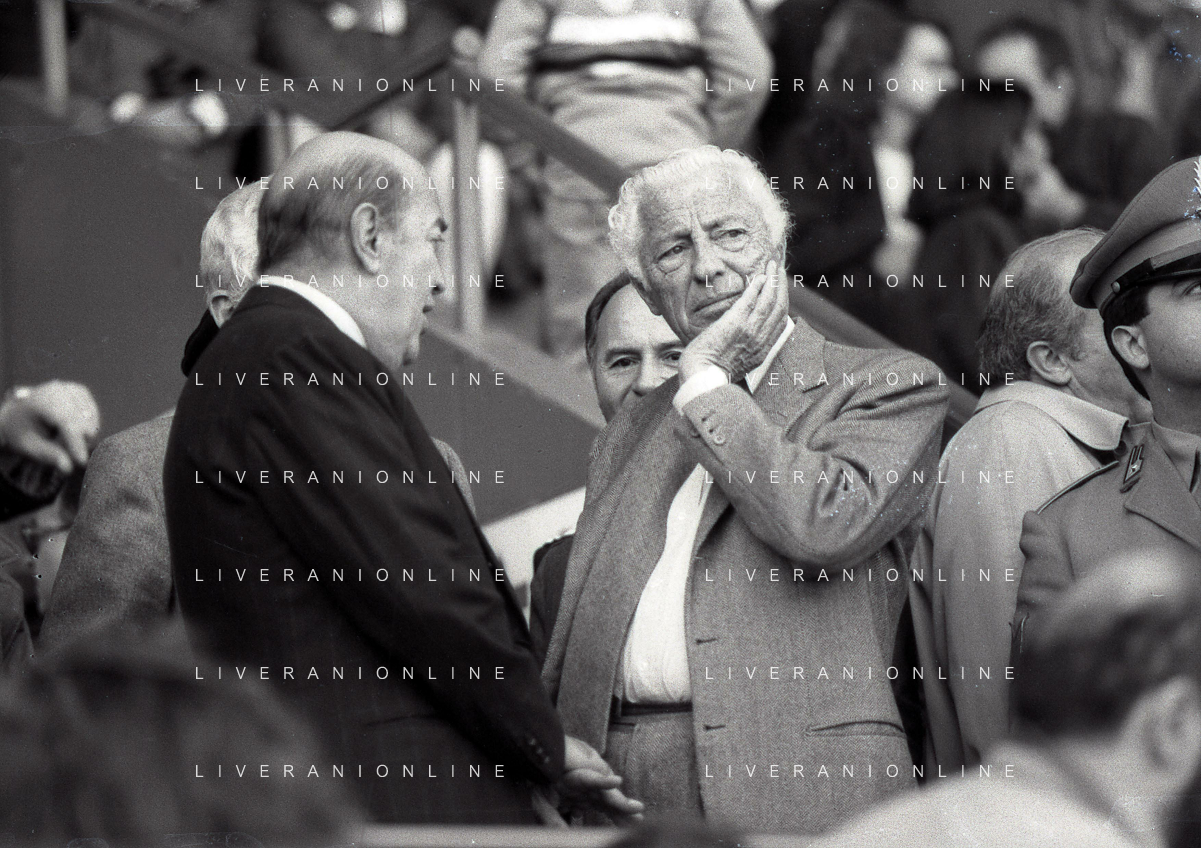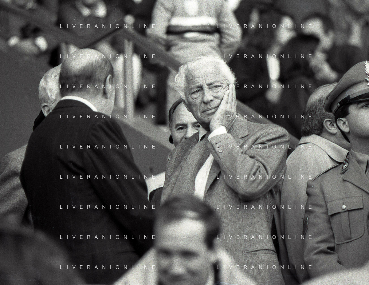 RETROSPETTIVA PAOLO MANTOVANI PRESIDENTE SAMPDORIA CALCIO NELLA FOTO PAOLO MANTOVANI PRESIDENTE DELLA SAMPDORIA CALCIO NELL'ANNO 1990 CON GIANNI AGNELLI AG ALDO LIVERANI SAS
