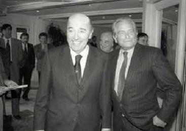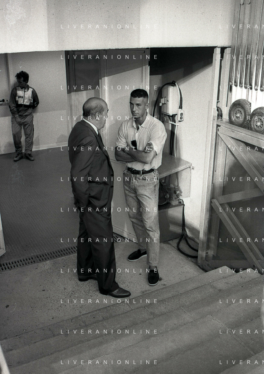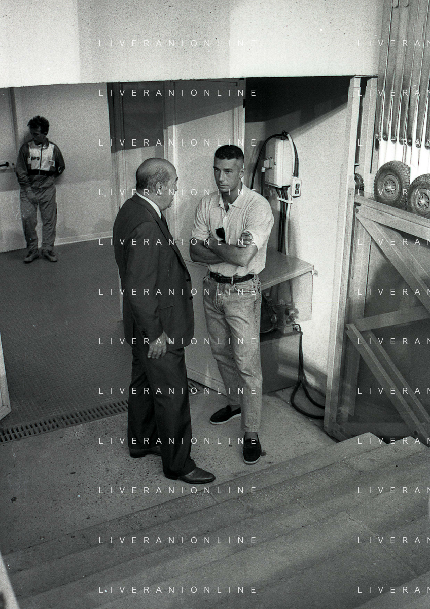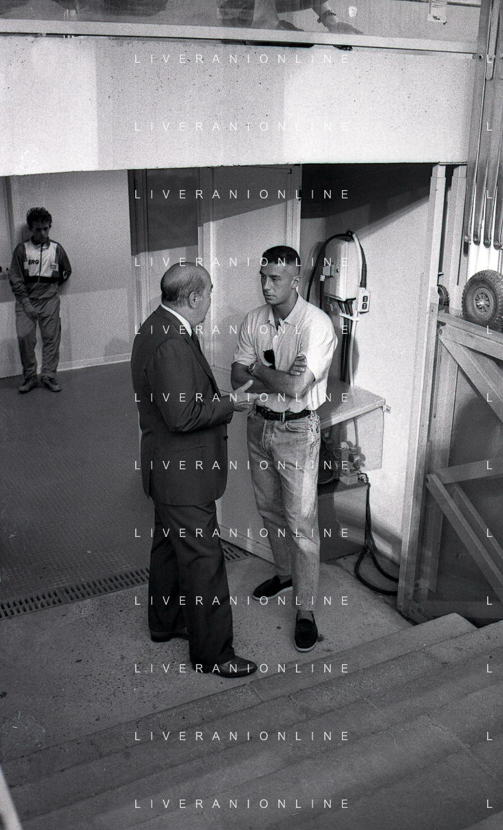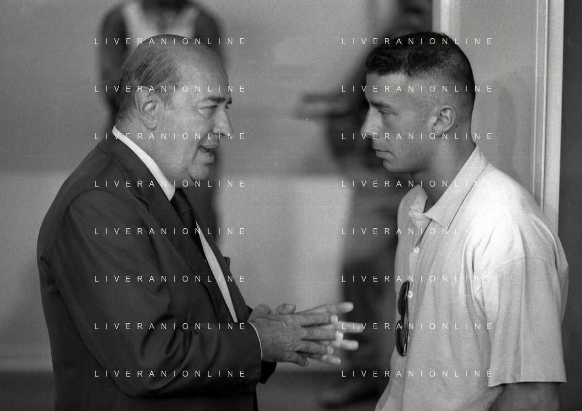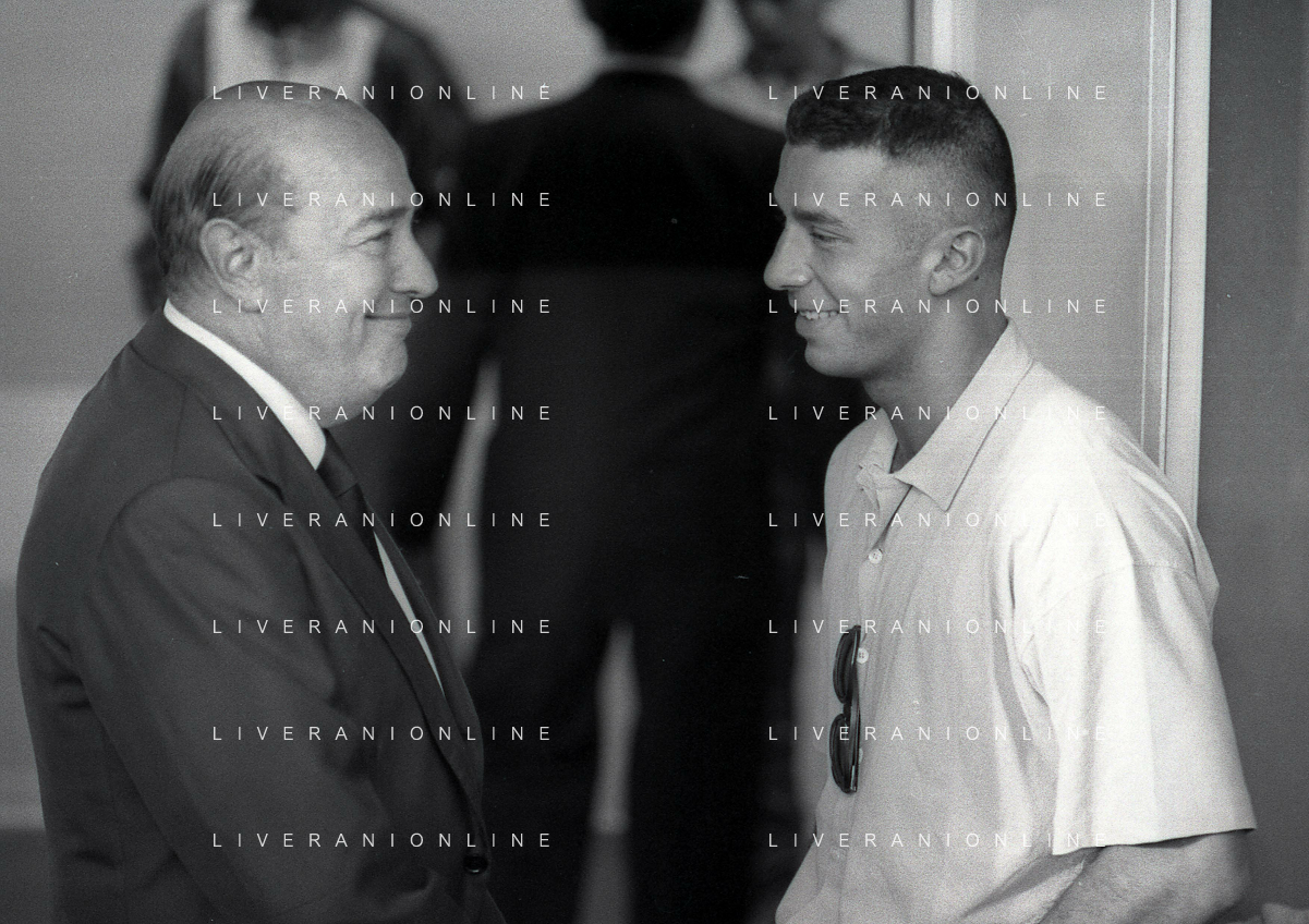 RETROSPETTIVA PAOLO MANTOVANI PRESIDENTE SAMPDORIA CALCIO NELLA FOTO PAOLO MANTOVANI PRESIDENTE DELLA SAMPDORIA CALCIO NELL'ANNO 1992-1993 CON PAOLO BOREA AG ALDO LIVERANI SAS