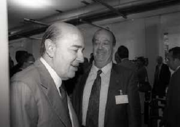 RETROSPETTIVA PAOLO MANTOVANI PRESIDENTE SAMPDORIA CALCIO NELLA FOTO PAOLO MANTOVANI PRESIDENTE DELLA SAMPDORIA CALCIO NELL'ANNO 1992-1993 CON RICCARDO GARRONE AG ALDO LIVERANI SAS