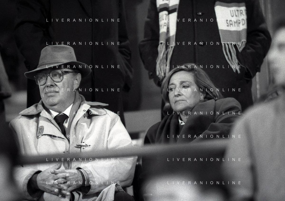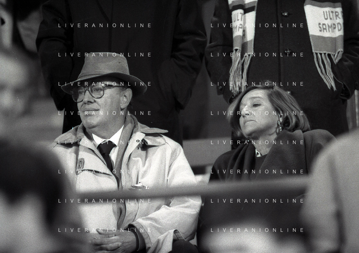 RETROSPETTIVA PAOLO MANTOVANI PRESIDENTE SAMPDORIA CALCIO NELLA FOTO PAOLO MANTOVANI PRESIDENTE DELLA SAMPDORIA CALCIO NELL'ANNO 1992-1993 CON LA FIGLIA AG ALDO LIVERANI SAS