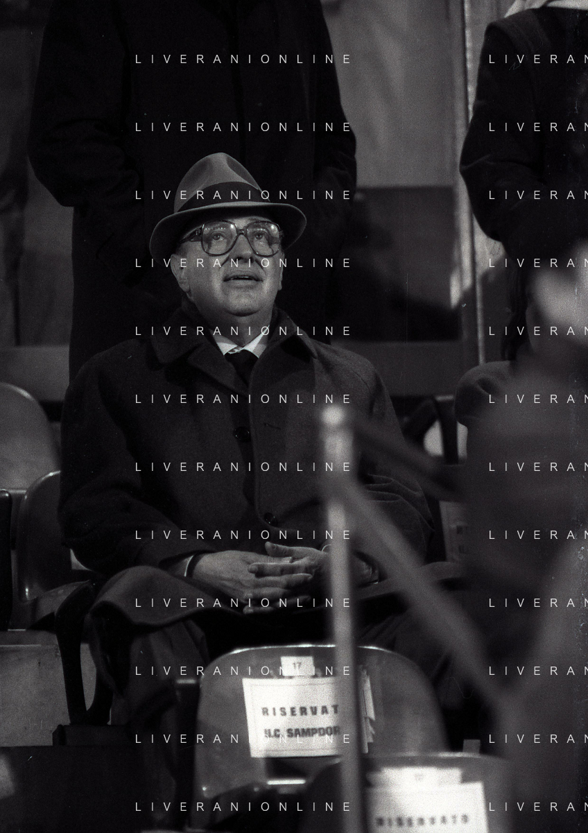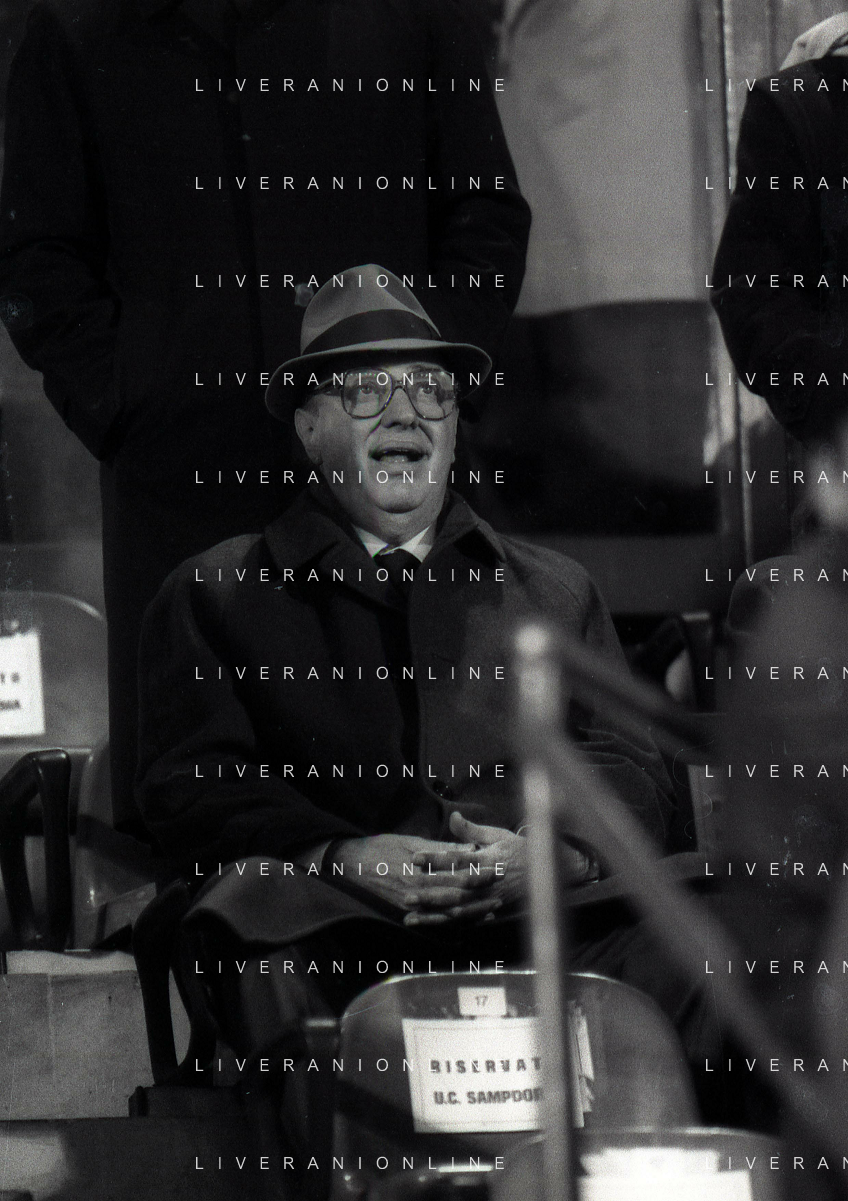 RETROSPETTIVA PAOLO MANTOVANI PRESIDENTE SAMPDORIA CALCIO NELLA FOTO PAOLO MANTOVANI PRESIDENTE DELLA SAMPDORIA CALCIO NELL'ANNO 1991-1992 AG ALDO LIVERANI SAS