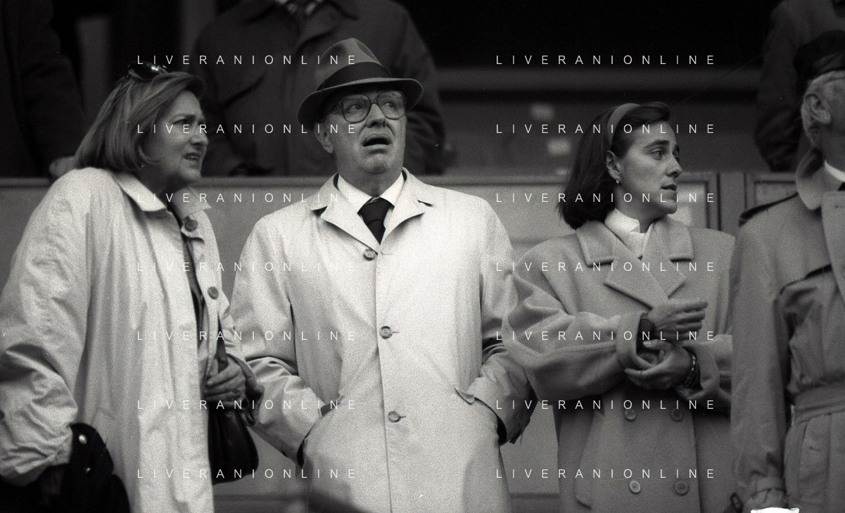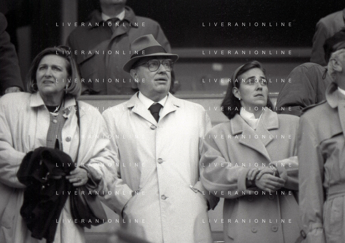 RETROSPETTIVA PAOLO MANTOVANI PRESIDENTE SAMPDORIA CALCIO NELLA FOTO PAOLO MANTOVANI PRESIDENTE DELLA SAMPDORIA CALCIO NELL'ANNO 1992-1993 CON ERNESTO PELLEGRINI-GIAMPIERO BONIPERTI E FRANCESCA MANTOVANI AG ALDO LIVERANI SAS