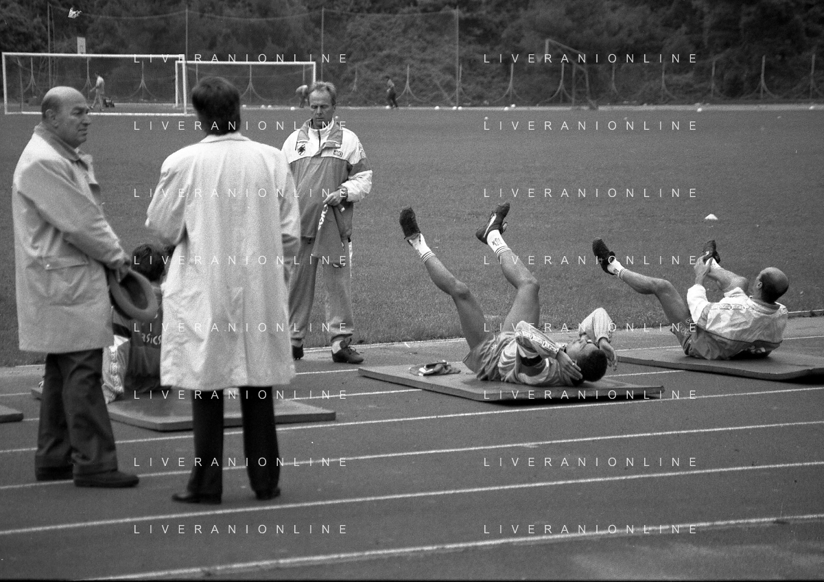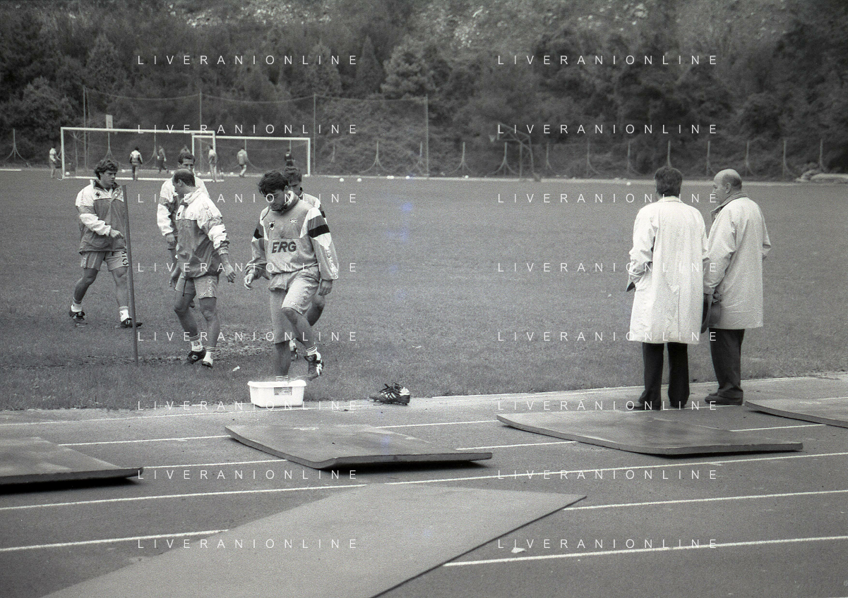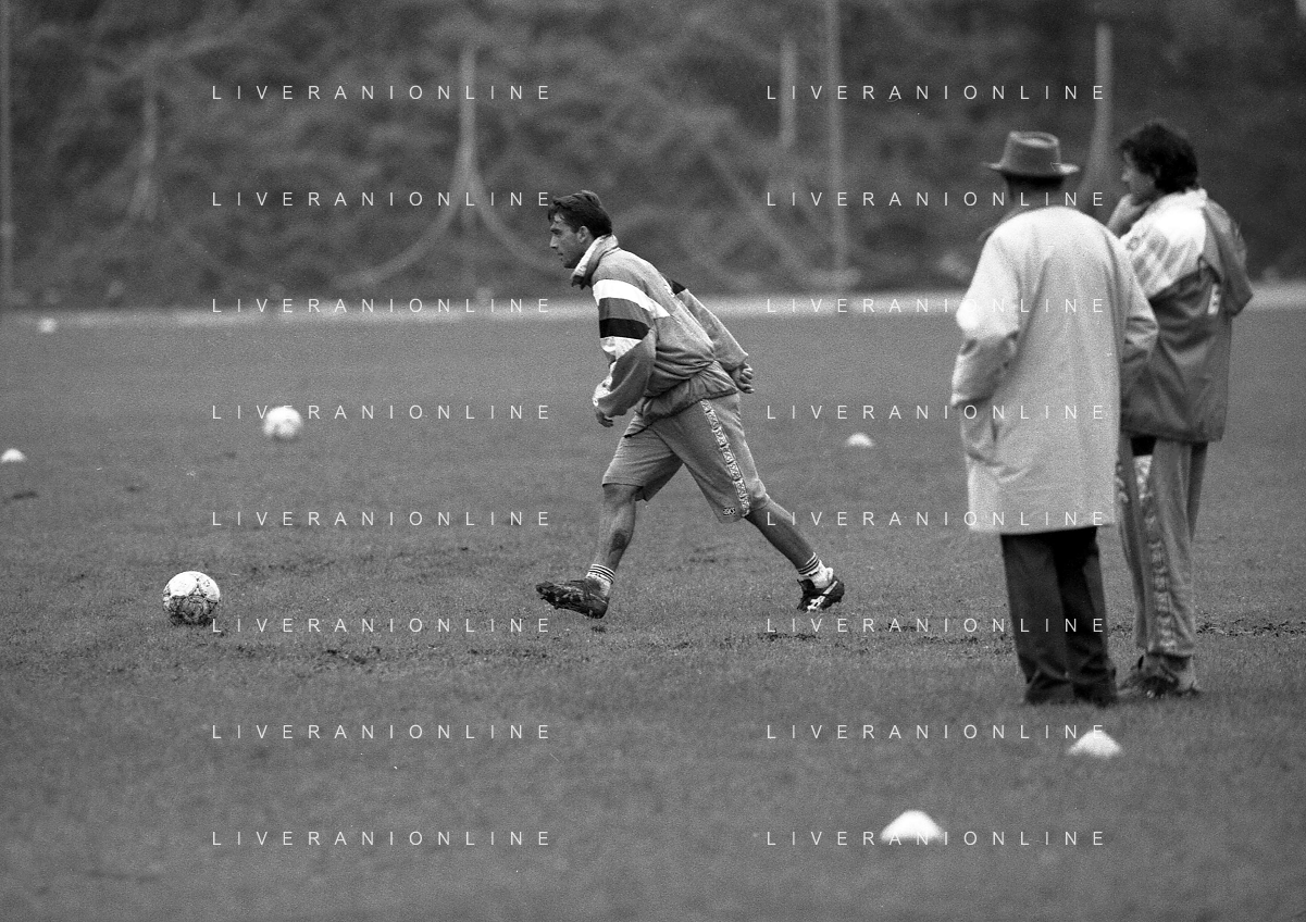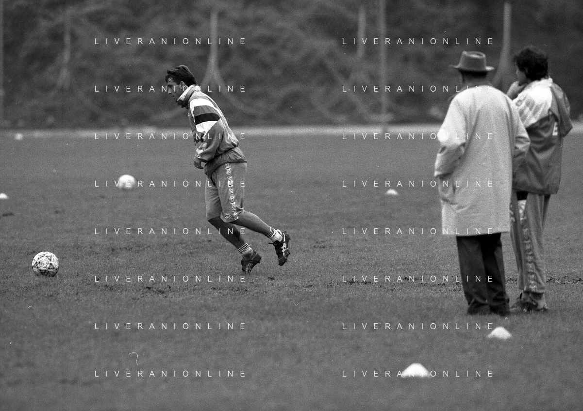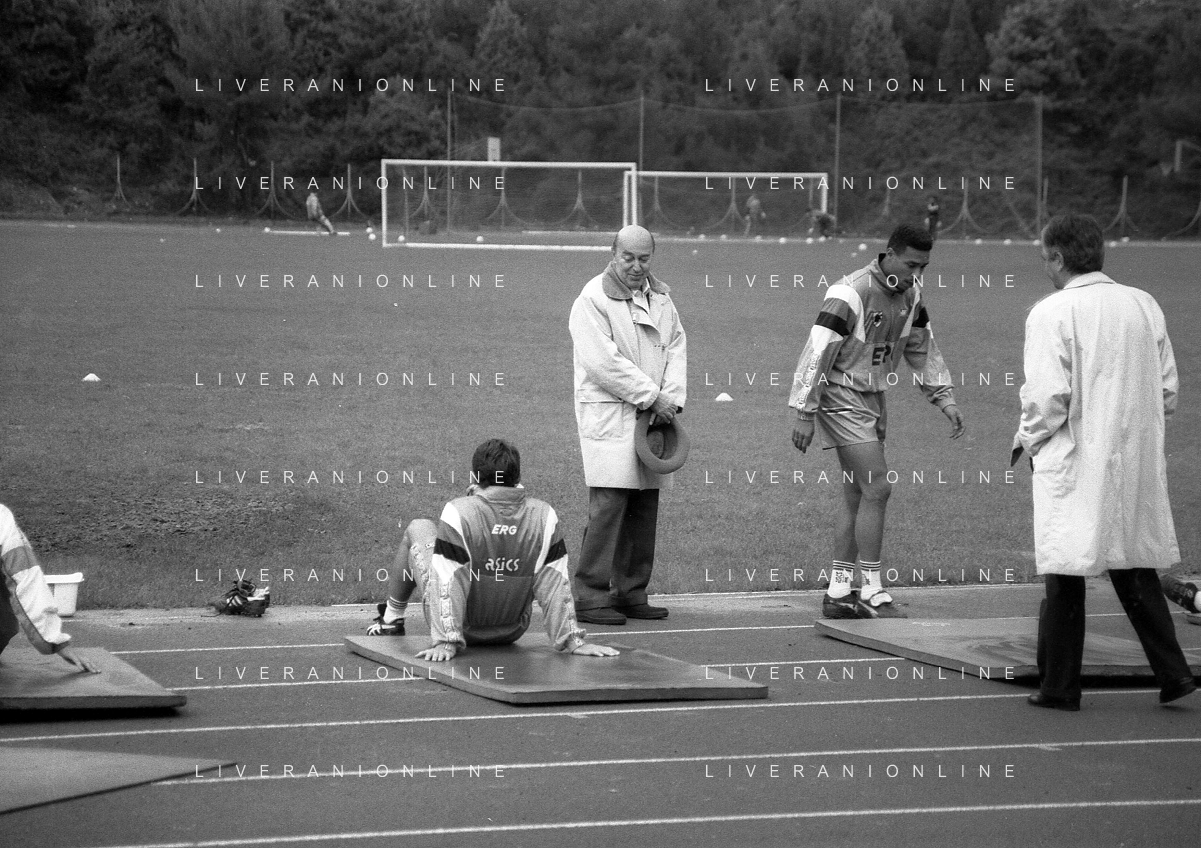 RETROSPETTIVA PAOLO MANTOVANI PRESIDENTE SAMPDORIA CALCIO NELLA FOTO PAOLO MANTOVANI PRESIDENTE DELLA SAMPDORIA CALCIO NELL'ANNO 1990 CON GIANLUCA VIALLI AG ALDO LIVERANI SAS
