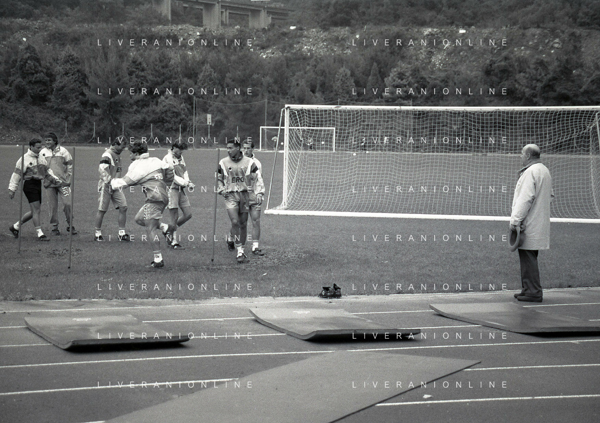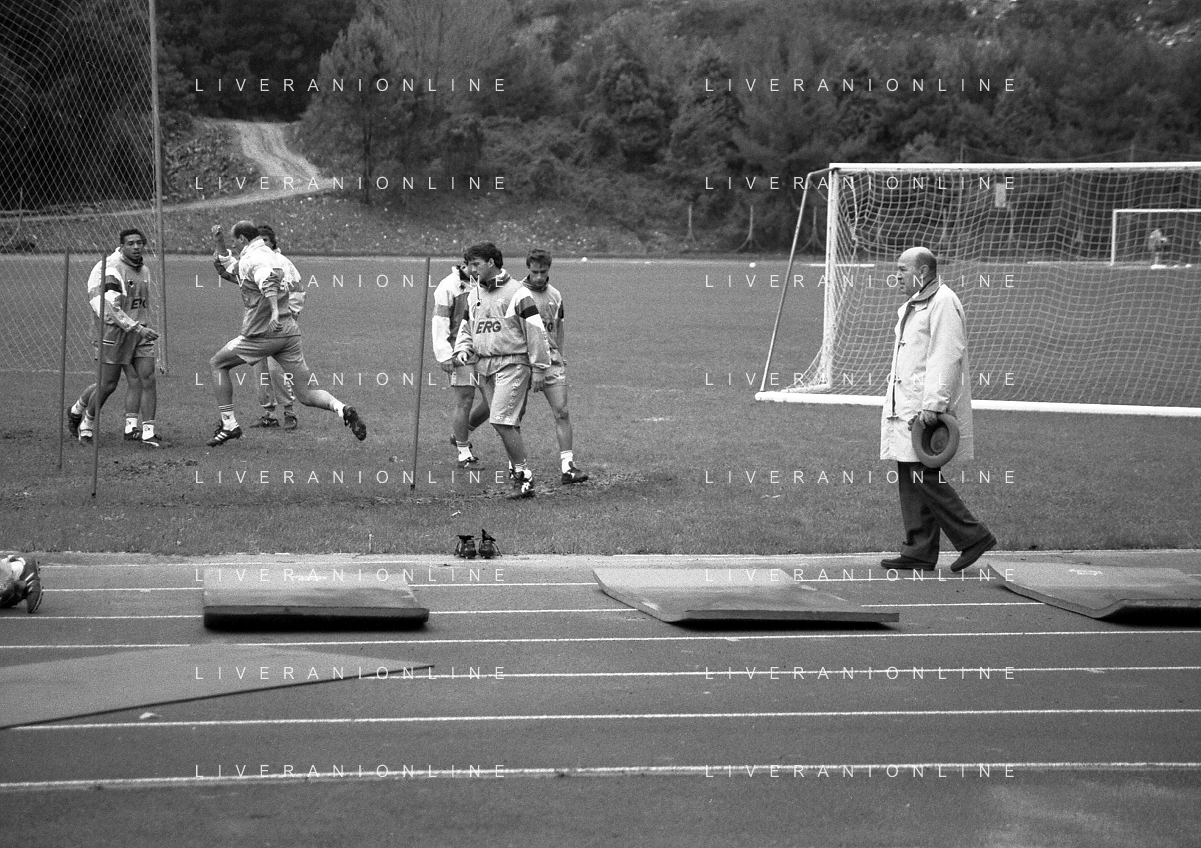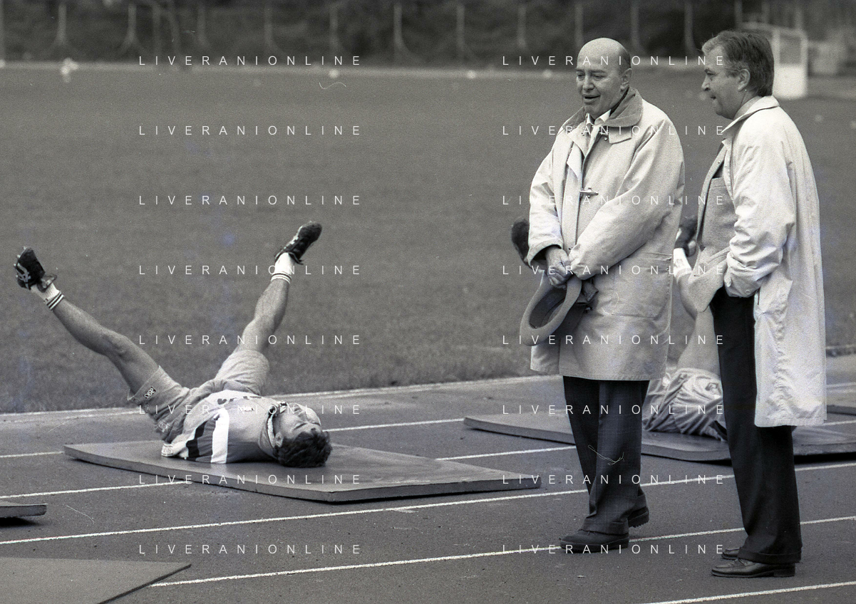RETROSPETTIVA PAOLO MANTOVANI PRESIDENTE SAMPDORIA CALCIO NELLA FOTO PAOLO MANTOVANI PRESIDENTE DELLA SAMPDORIA CALCIO NELL'ANNO 1991-1992 CON ARRIGO SACCHI AG ALDO LIVERANI SAS