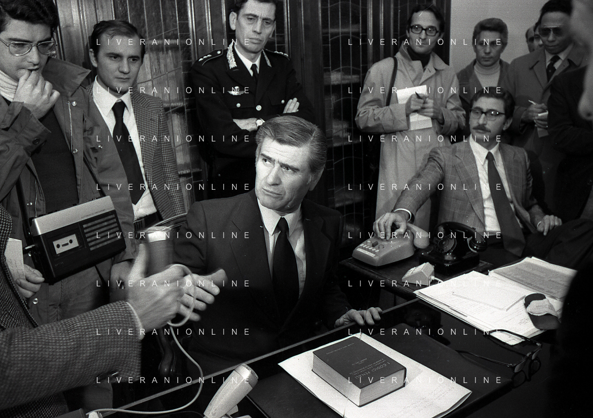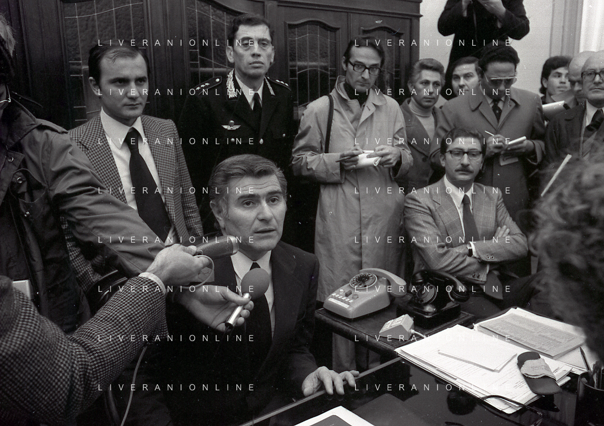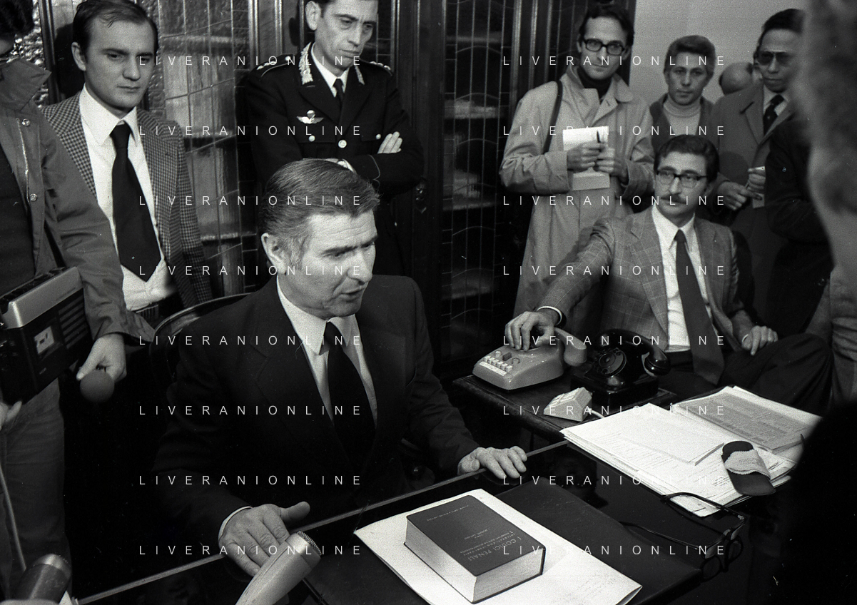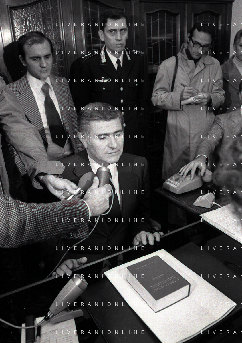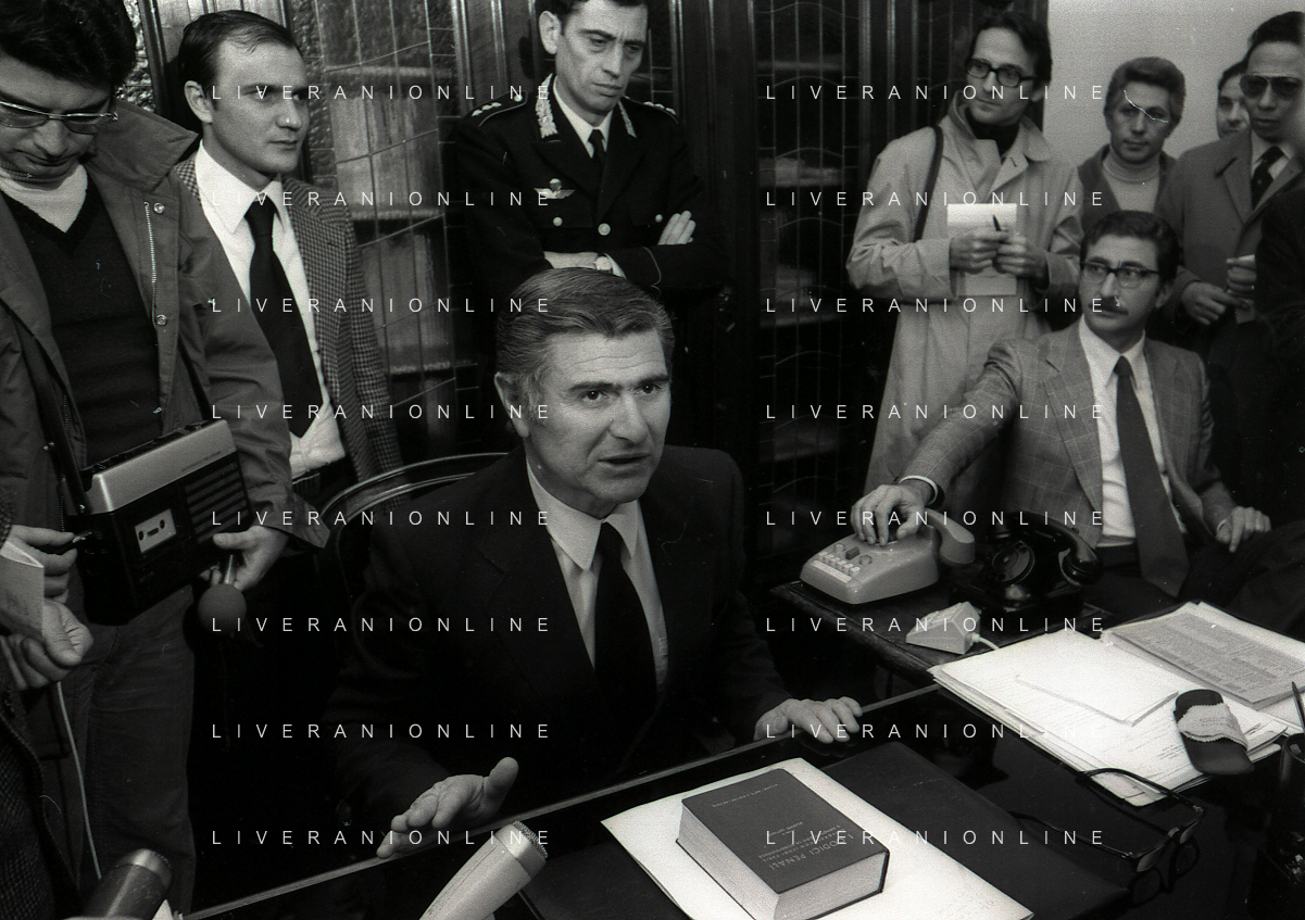 NEG-13-11-1975 VERCELLI DELITTO GRANERIS NELLA FOTO LA CONFERENZA STAMPA DELLE FORZE DELL'ORDINE DOPO IL DELITTO GRANERIS AG ALDO LIVERANI SAS