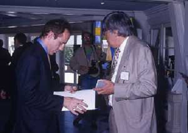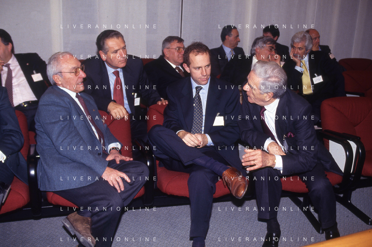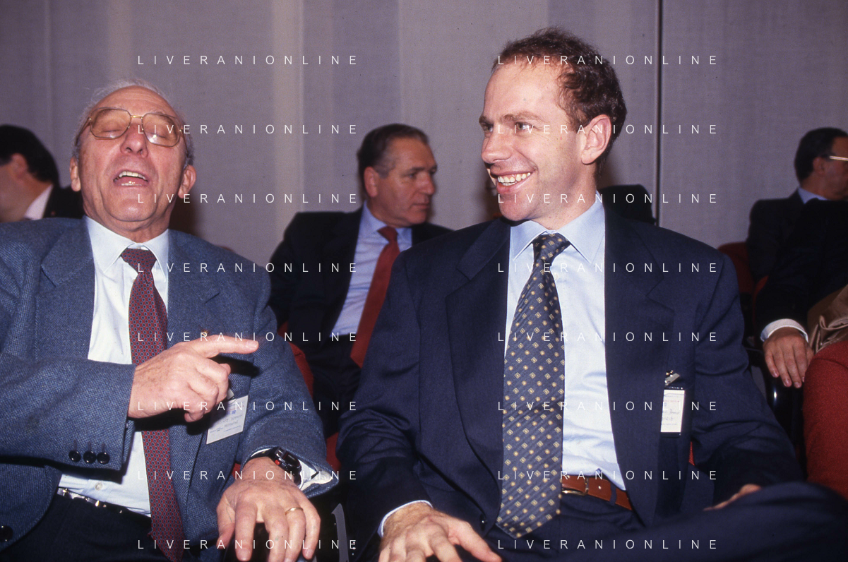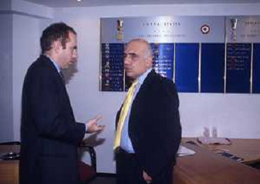 RETROSPETTIVA ENRICO MANTOVANI PRESIDENTE SAMPDORIA CALCIO NELLA FOTO MANTOVANI ENRICO PRESIDENTE SAMPDORIA CALCIO CON STEFANO TANZI PRESIDENTE PARMA CALCIO AG ALDO LIVERANI SAS
