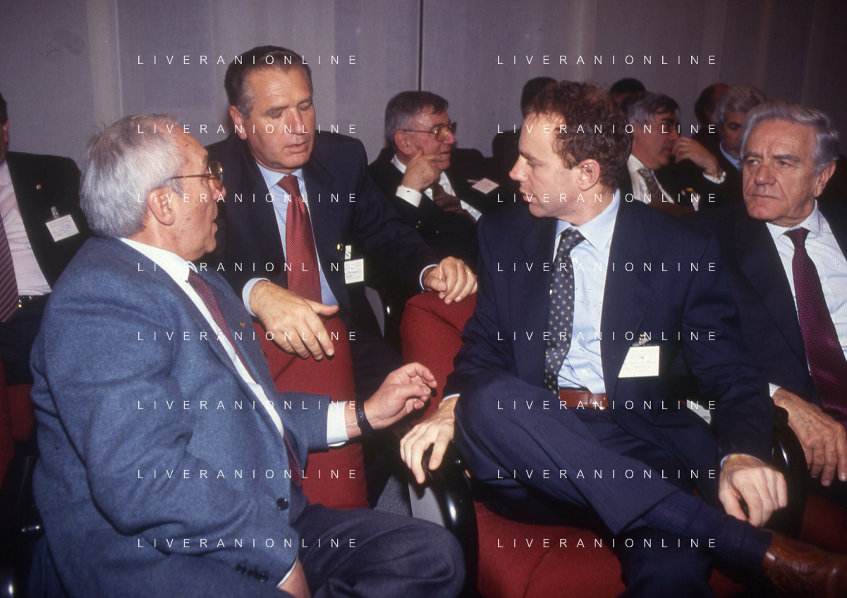 RETROSPETTIVA ENRICO MANTOVANI PRESIDENTE SAMPDORIA CALCIO NELLA FOTO MANTOVANI ENRICO PRESIDENTE SAMPDORIA CALCIO CON DOMENICO LUZZARA PRESIDENTE CREMONESE CALCIO-VINCENZO MATARRESE E LEONARDO GARILLI AG ALDO LIVERANI SAS