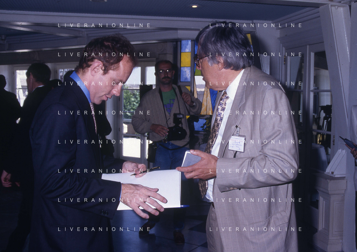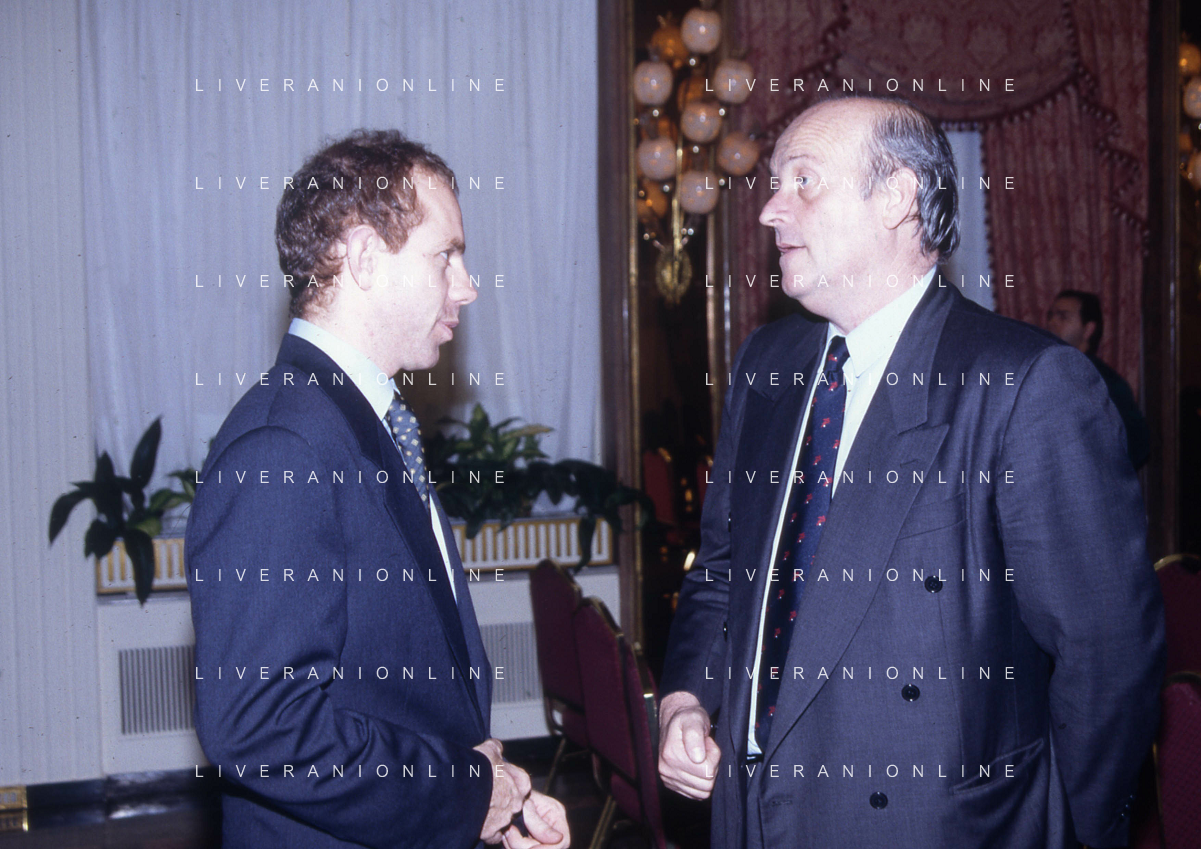 RETROSPETTIVA ENRICO MANTOVANI PRESIDENTE SAMPDORIA CALCIO NELLA FOTO MANTOVANI ENRICO PRESIDENTE SAMPDORIA CALCIO CON ANTONIO MATARRESE AG ALDO LIVERANI SAS
