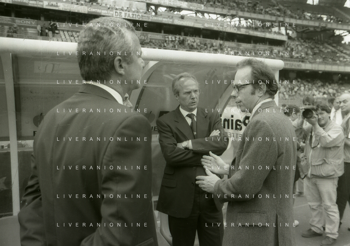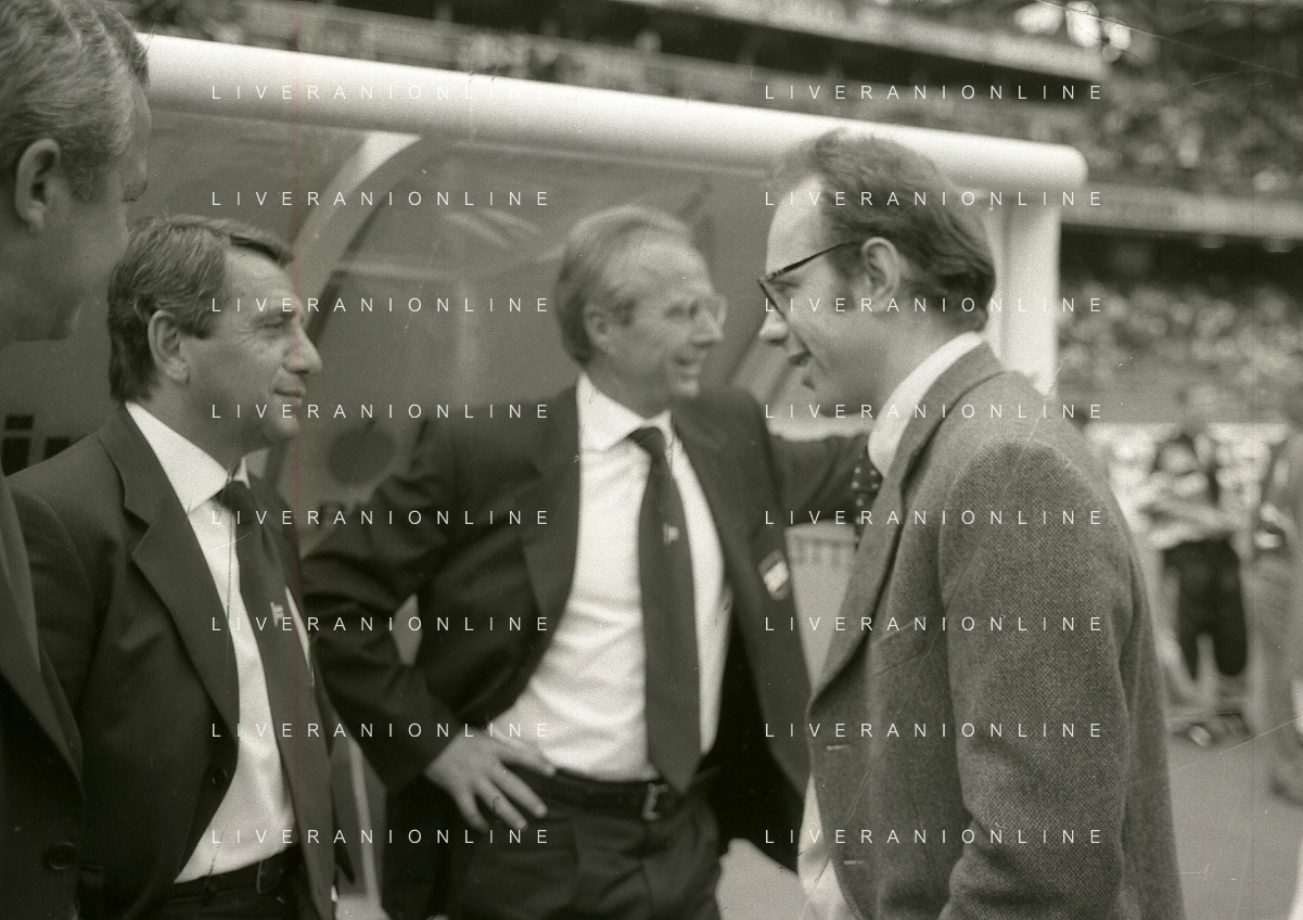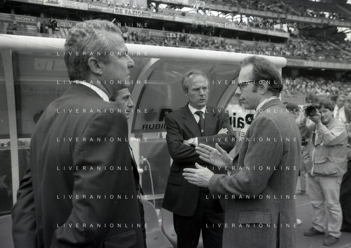 RETROSPETTIVA ENRICO MANTOVANI PRESIDENTE SAMPDORIA CALCIO NELLA FOTO MANTOVANI ENRICO PRESIDENTE SAMPDORIA CALCIO CON VINCENZO MATARRESE E DOMENICO LUZZARA AG ALDO LIVERANI SAS
