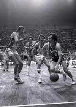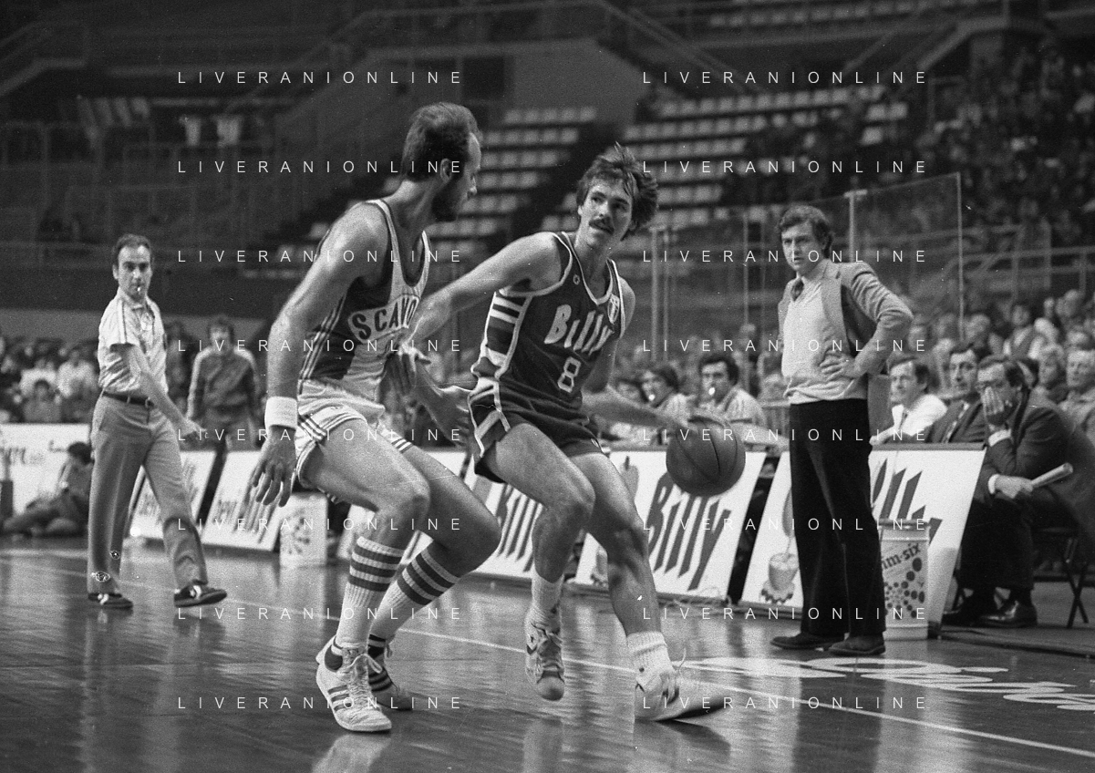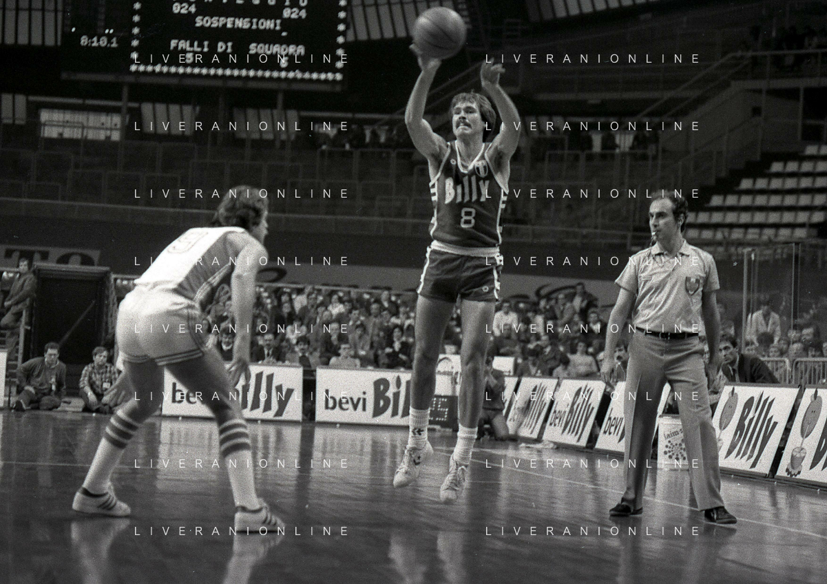 1982-1983 MILANO CAMPIONATO DI BASKET SEMIFINALI DI PLAY OFF BILLY MILANO SCAVOLINI PESARO NELLA FOTO MIKE D'ANTONI -WALTER MAGNIFICO Dragan KICANOVIC AG ALDO LIVERANI SAS
