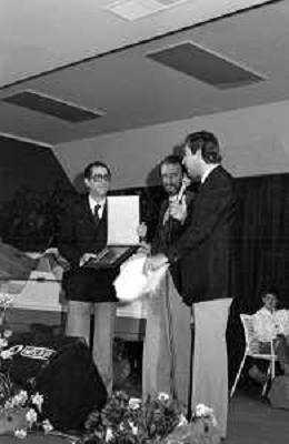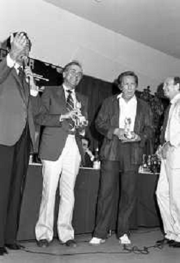 PREMIO REGIA TELEVISIVA 1982 - OSCAR TV GIARDINI NAXOS - RETROSPETTIVA NELLA FOTO daniele piombi con il sindaco antonio veroux ©Archivio Giovanni Liverani / AGENZIA ALDO LIVERANI SAS