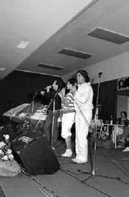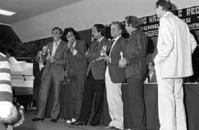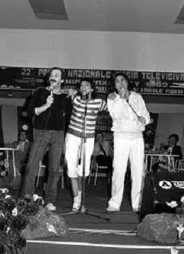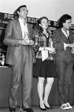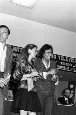 PREMIO REGIA TELEVISIVA 1982 - OSCAR TV GIARDINI NAXOS - RETROSPETTIVA Nella foto ANGELA BRAMBATI CON ANGELO SOTGIU E FRANCO GATTI DEI RICCHI E POVERI ©Archivio Giovanni Liverani / AGENZIA ALDO LIVERANI SAS
