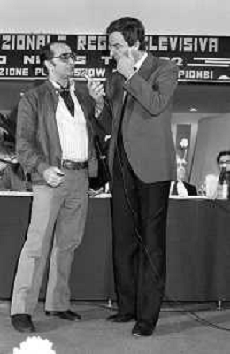 22° PREMIO REGIA TELEVISIVA - OSCAR TV 1982 GIARDINI NAXOS - RETROSPETTIVA NELLA FOTO ENZO TORTORA CON GIGI SABANI ©Archivio Giovanni Liverani / AGENZIA ALDO LIVERANI SAS