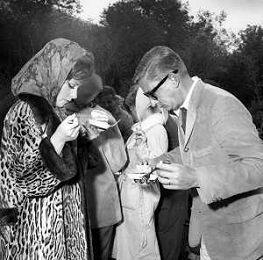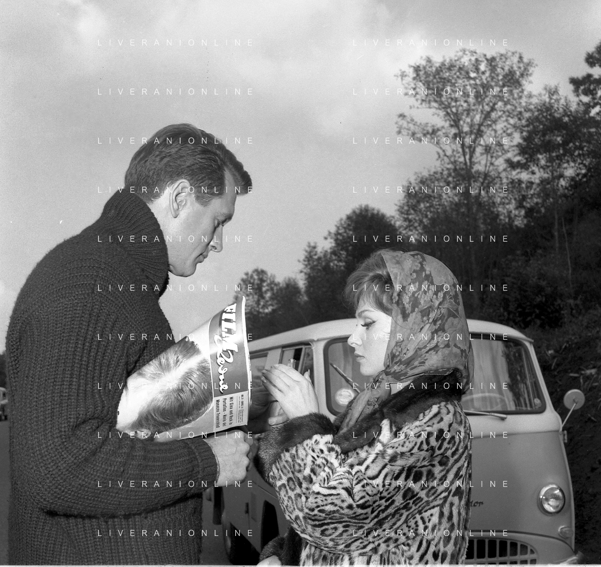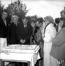 GINA LOLLOBRIGIDA, attrice italiana - RETROSPETTIVA Nella foto a Roma sul set del film 'Torna a settembre' con Sandra Dee e Bobby Darin nel 1961 durante una pausa delle riprese AGENZIA ALDO LIVERANI SAS